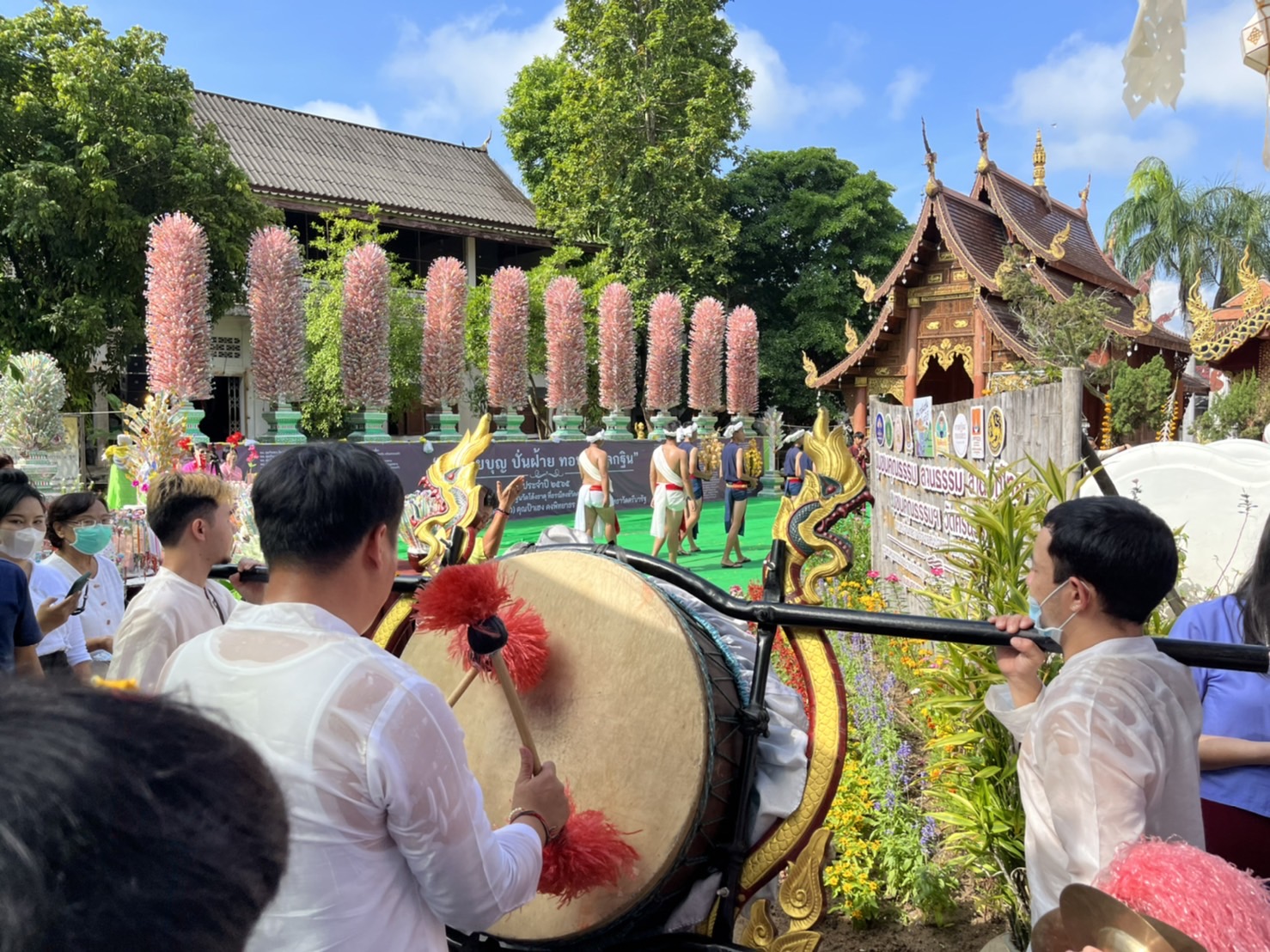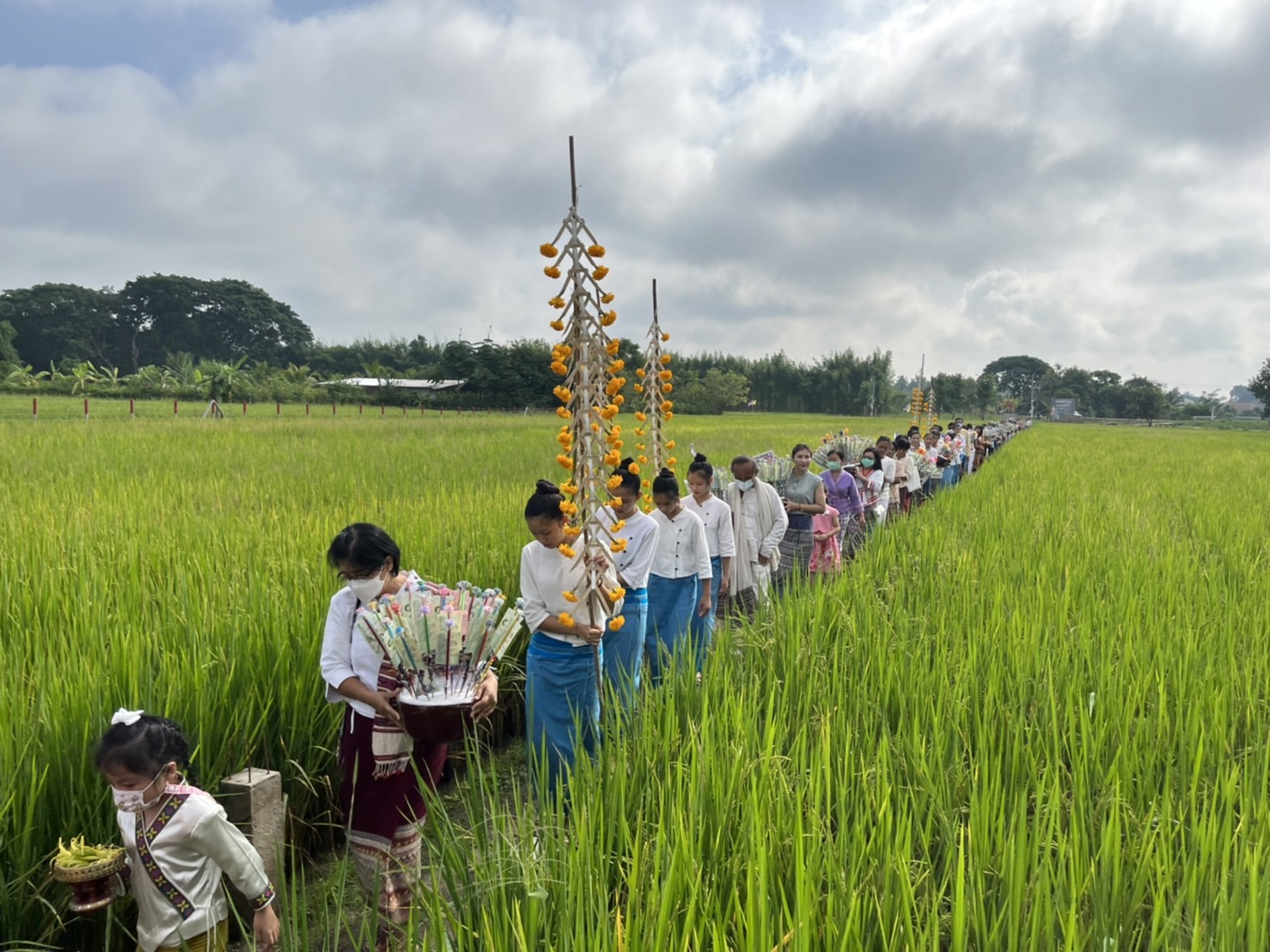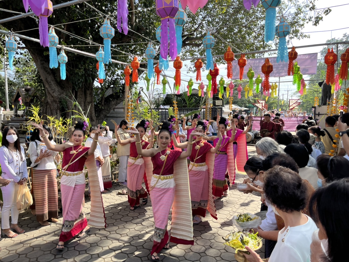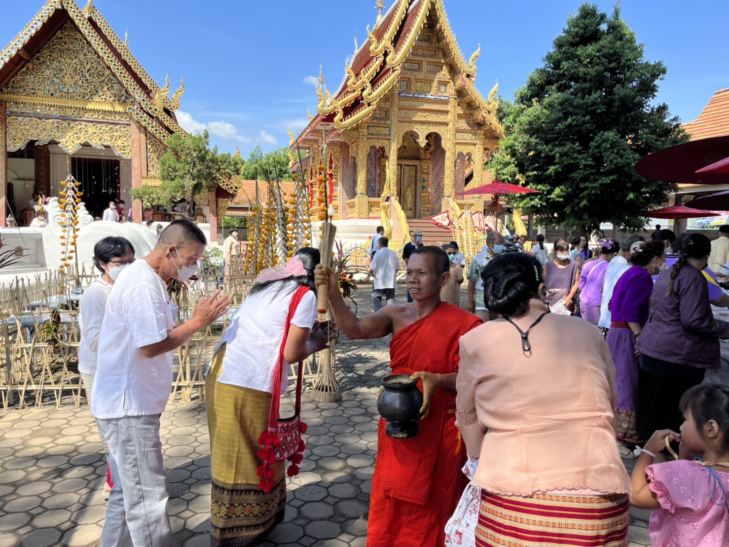 ศรัทธาญาติโยมวัดศรีนวรัฐ อ.สันป่าตอง จ.เชียงใหม่ ตั้งขบวนแห่องค์ผ้ากฐินยิ่งใหญ่แบบเบ้าล้านนาโบราณ แต่งชุดไทยล้านนาโบราณ ไทเขิน นำเครื่องอัฐบริขารจากวัดโต้งธาตุ วัดเก่าแก่สร้างในสมัยพระเจ้ากือนา จัดขบวนเตียวลัดโต้ง ได้บุญได้ชมวิวสวยทุ่งนาข้าว วัดปลูกไว้เพื่องานบุญกุศล ปลูกฝ้ายนำมาทำผ้ากฐินวันนี้ และร่วมสืบชะตาหลวงแบบล้านนา ที่ตกแต่งสวยงามมาก ชาวบ้านร่วมงานบุญกันทุกครอบครัว นำปัจจัยบูรณะวัดโต้งธาตุ