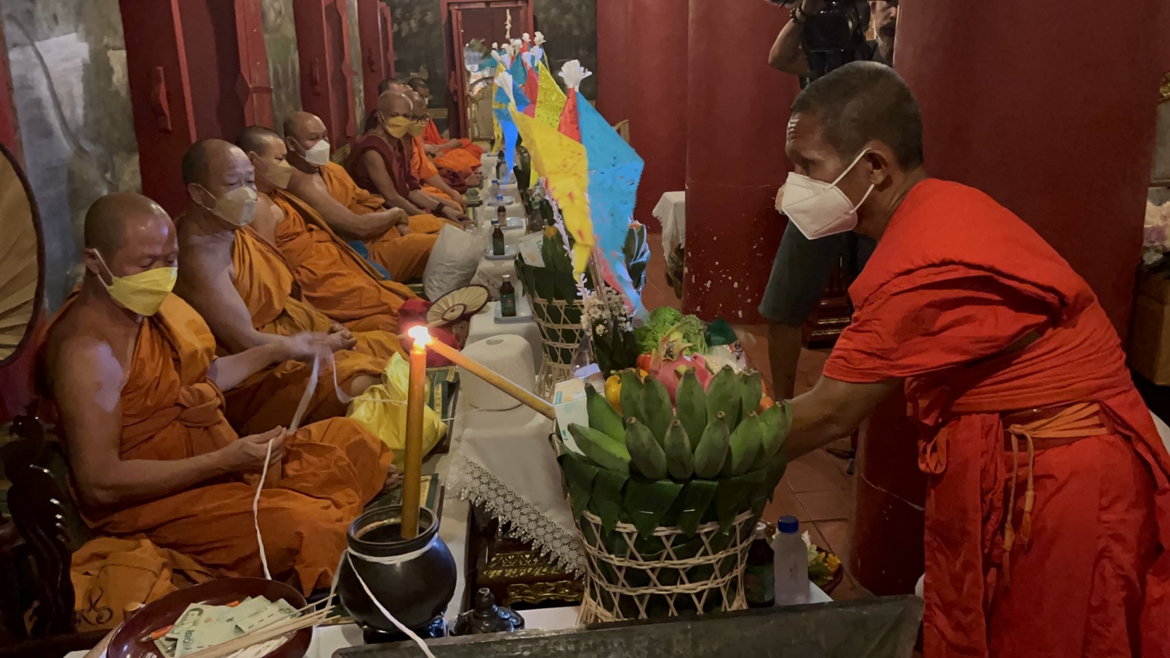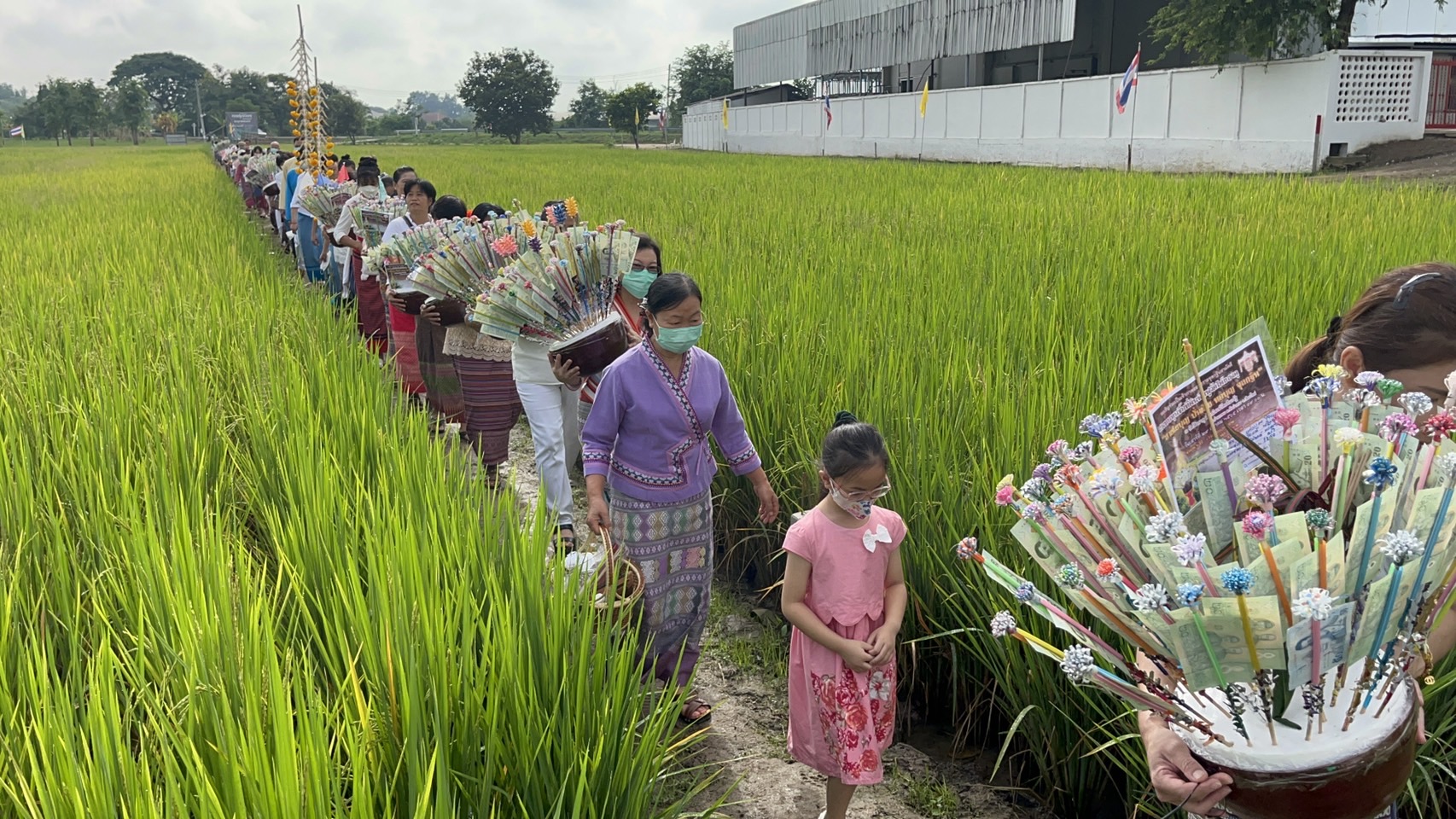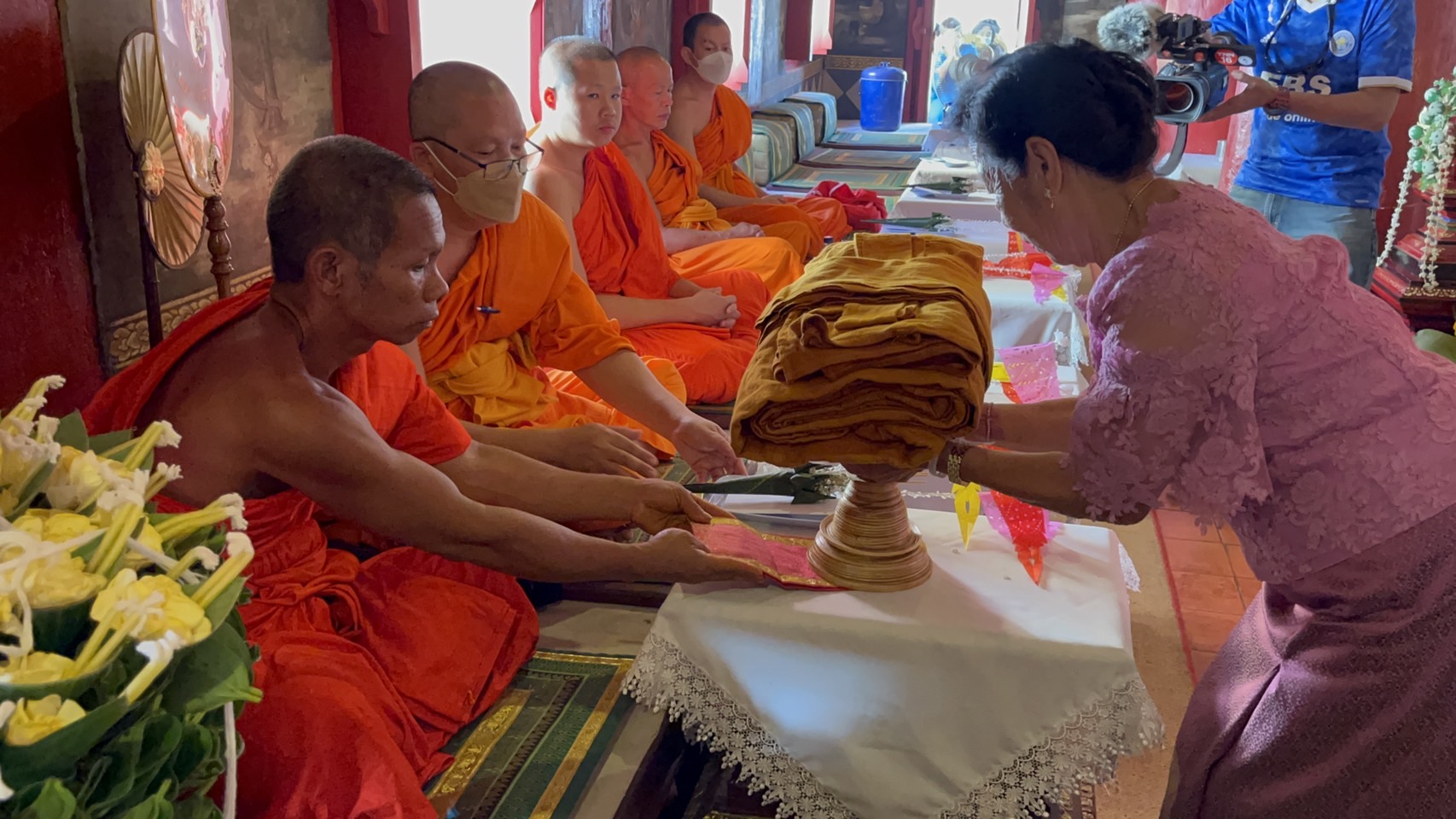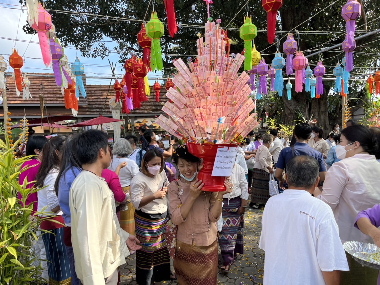 ศรัทธาญาติโยมวัดศรีนวรัฐ อ.สันป่าตอง จ.เชียงใหม่ ตั้งขบวนแห่องค์ผ้ากฐินยิ่งใหญ่แบบเบ้าล้านนาโบราณ แต่งชุดไทยล้านนาโบราณ ไทเขิน นำเครื่องอัฐบริขารจากวัดโต้งธาตุ วัดเก่าแก่สร้างในสมัยพระเจ้ากือนา จัดขบวนเตียวลัดโต้ง ได้บุญได้ชมวิวสวยทุ่งนาข้าว วัดปลูกไว้เพื่องานบุญกุศล ปลูกฝ้ายนำมาทำผ้ากฐินวันนี้ และร่วมสืบชะตาหลวงแบบล้านนา ที่ตกแต่งสวยงามมาก ชาวบ้านร่วมงานบุญกันทุกครอบครัว นำปัจจัยบูรณะวัดโต้งธาตุ