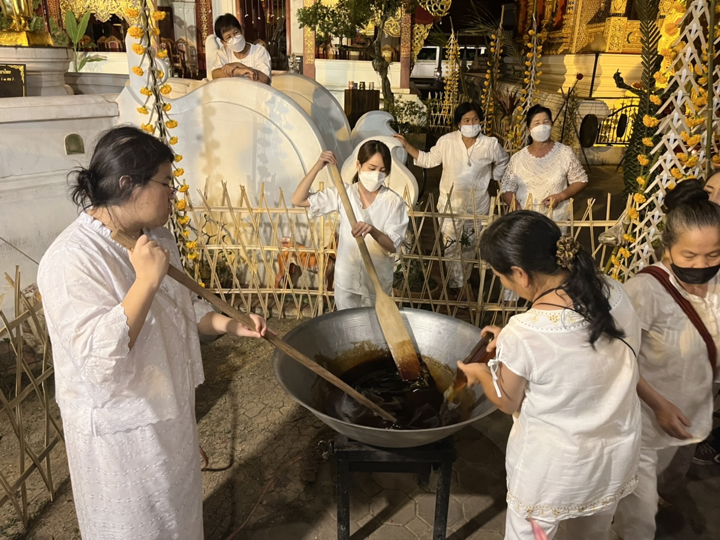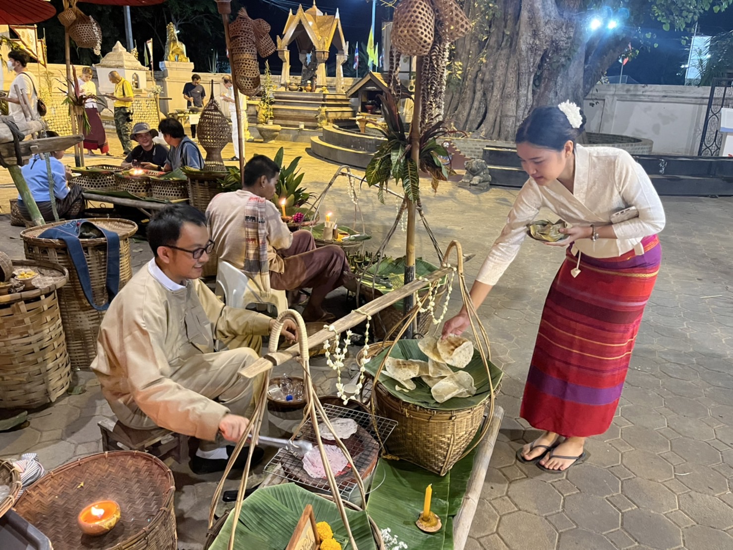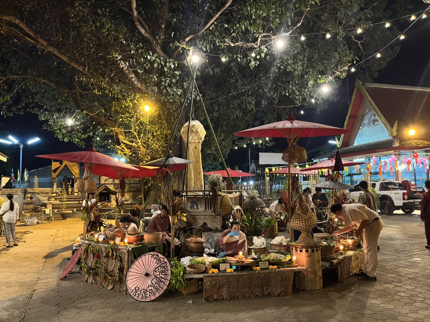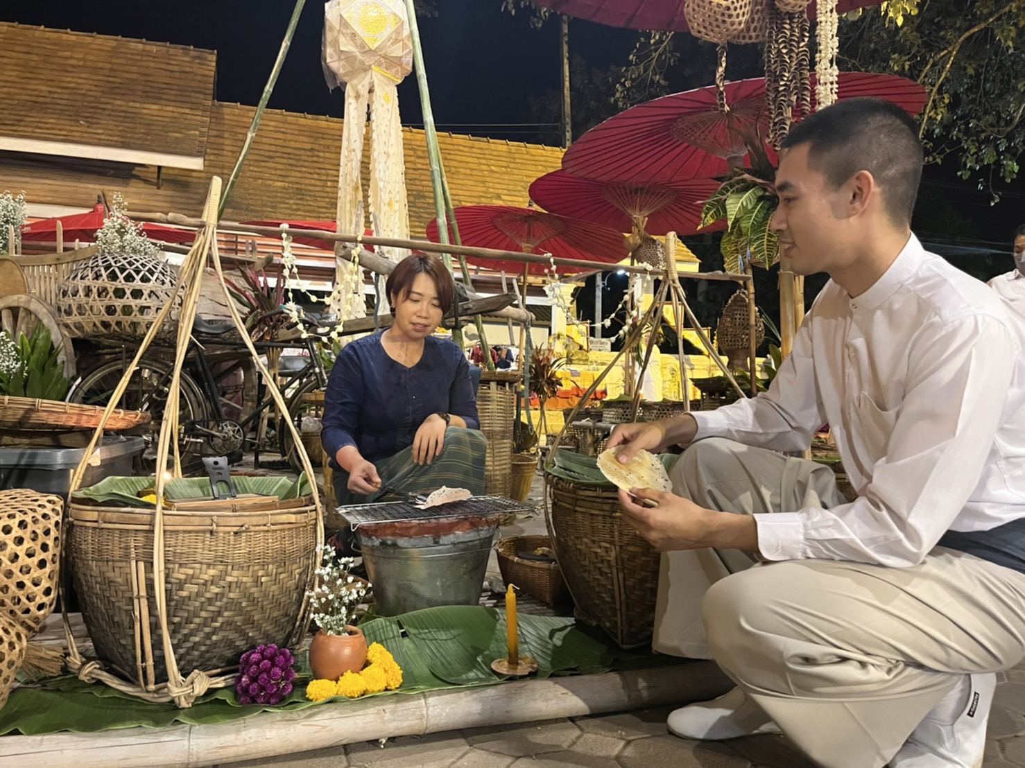 จากเมื่อวานนี้ วันที่ 28 ตุลาคม ช่วงเย็นทางวัดศรีนวรัฐ ได้ประกอบพิธีบวงสรวงต้นฝ้าย(ต้นฝ้ายที่ปลูกไว้วัดโต้งธาตุ ใกล้ทุ่งนาสะพานบุญ) ประกอบพิธีเพื่อบอกกล่าวองค์พระธาตุ และนำขบวนแห่ดอกฝ้าย เตียวลัดโต้งเคลื่อนสู่วัดศรีนวรัฐ จากนั้นประกอบพิธีเจริญพระพุทธมนต์สมโภชจุลกฐิน และประกอบพิธีทำผ้าจุลกฐิน อีด ปั่น ทอ ย้อม “สายบุญ ปั้นฝ้าย ทอบุญ จุลกฐิน” ตลอดทั้งคืนจากชาวบ้าน อ.แม่แจ่ม ที่เก่งด้านผ้าทอตีนจก บอกว่าผ้าจุลกฐินของวัดศรีนวรัฐปีนี้ ถือว่า เป็นผ้าที่ทำเสร็จในคืนเดียวที่สวยงามมาก และในคืนเดียวกันได้ทำข้าวมธุปายาส เป็นอาหารสมัยพุทธกาล คือ ข้าวที่หุงเจือด้วยน้ำนม และน้ำผึ้ง พร้อมจัดข้าวปลาอาหาร ขนม และการละเล่นต่างๆ เช่น ฟ้อน และฟ้อนโตนกกิ่งกะหร่า ให้ศรัทธาประชาชนได้ชม และได้รับประทานอาหารคาวหวานร่วมกัน