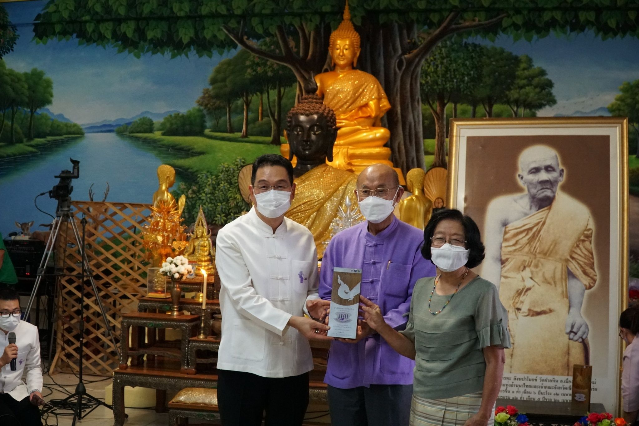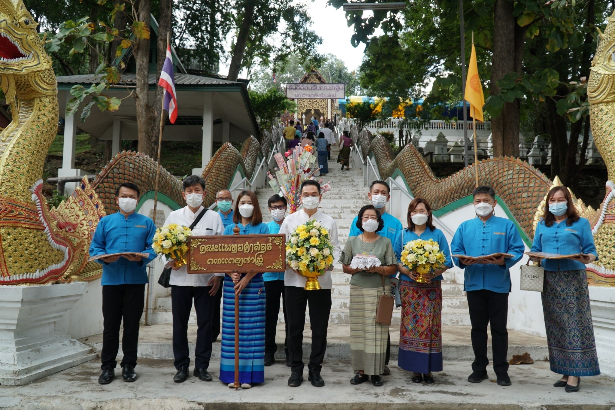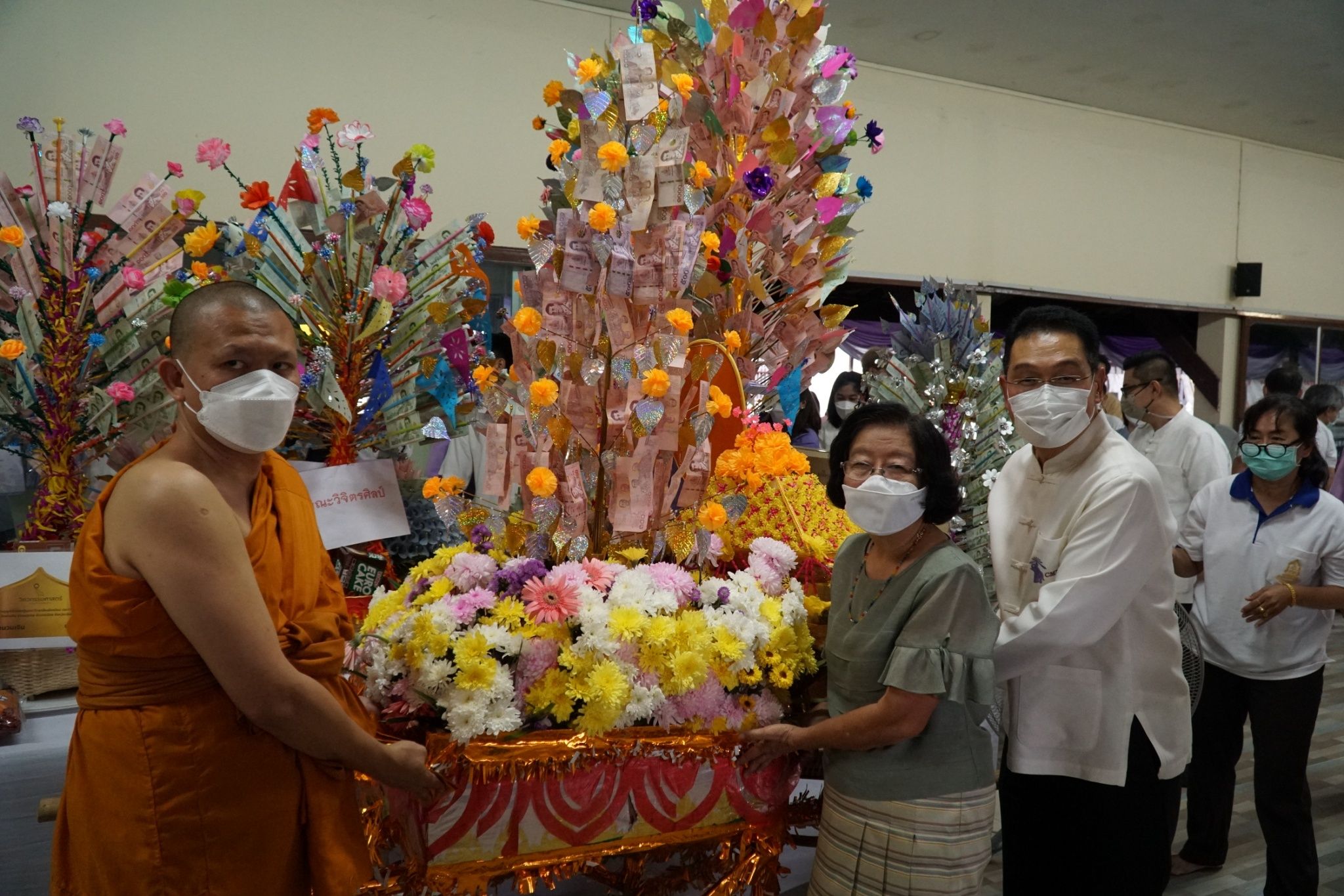 ศ. (เชี่ยวชาญพิเศษ) นพ.บรรณกิจ โลจนาภิวัฒน์ คณบดี ,รศ.นพ.ณัฐพงศ์ โฆษชุณหนันท์ รองคณบดี ,รศ.พญ.ยุพา สุมิตสวรรค์ ที่ปรึกษาผู้ทรงคุณวุฒิ คณะแพทยศาสตร์ มช. พร้อมคณะผู้บริหาร หัวหน้าฝ่าย หัวหน้างาน และบุคลากร คณะแพทยศาสตร์ มช. ร่วมพิธีทำบุญทอดกฐินมหาวิทยาลัยเชียงใหม่ ประจำปี 2565
