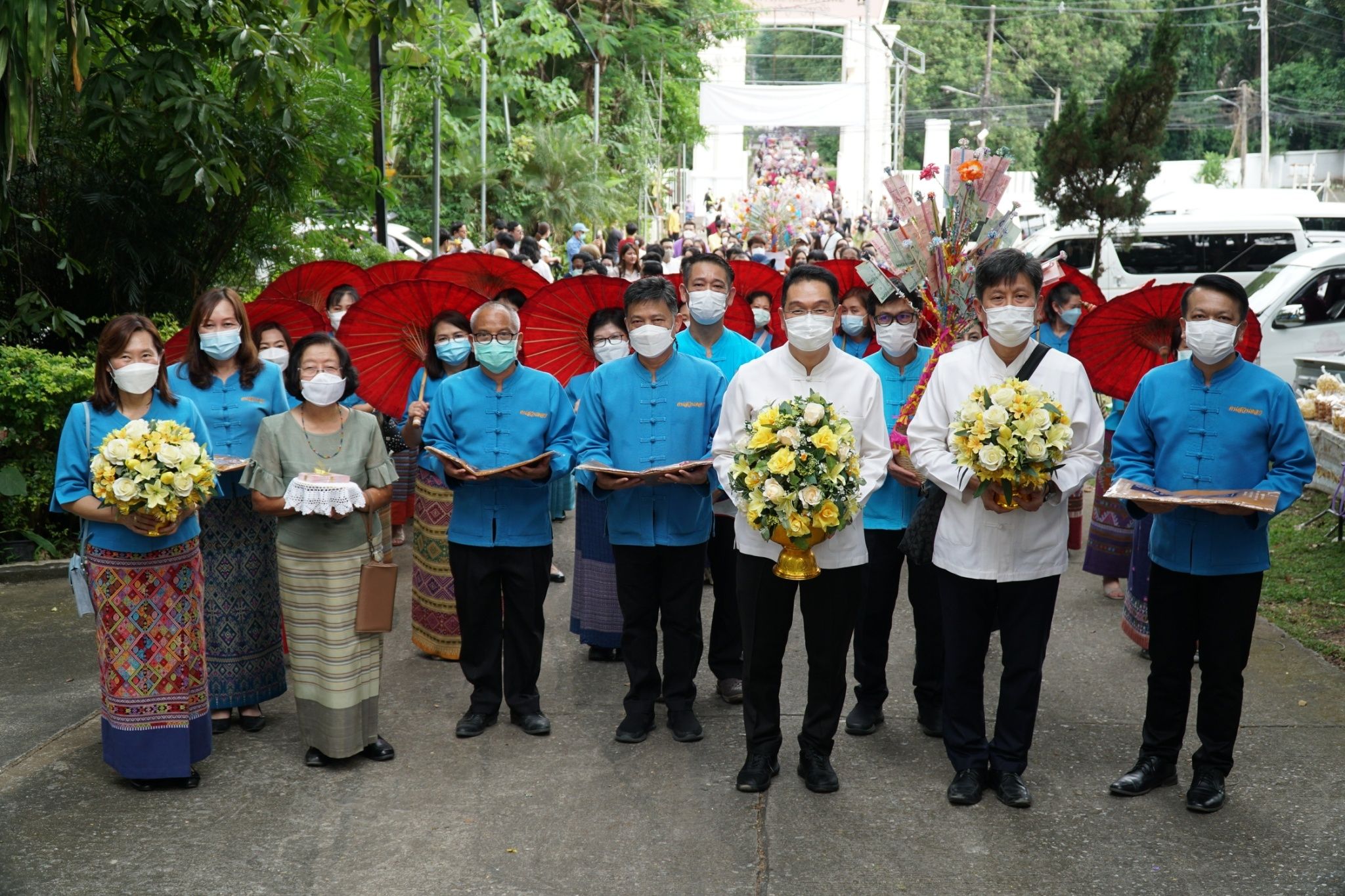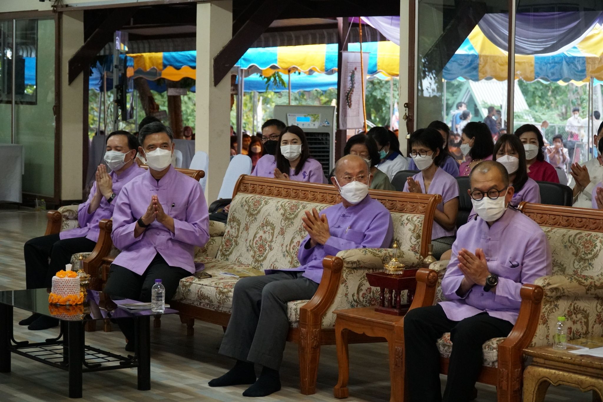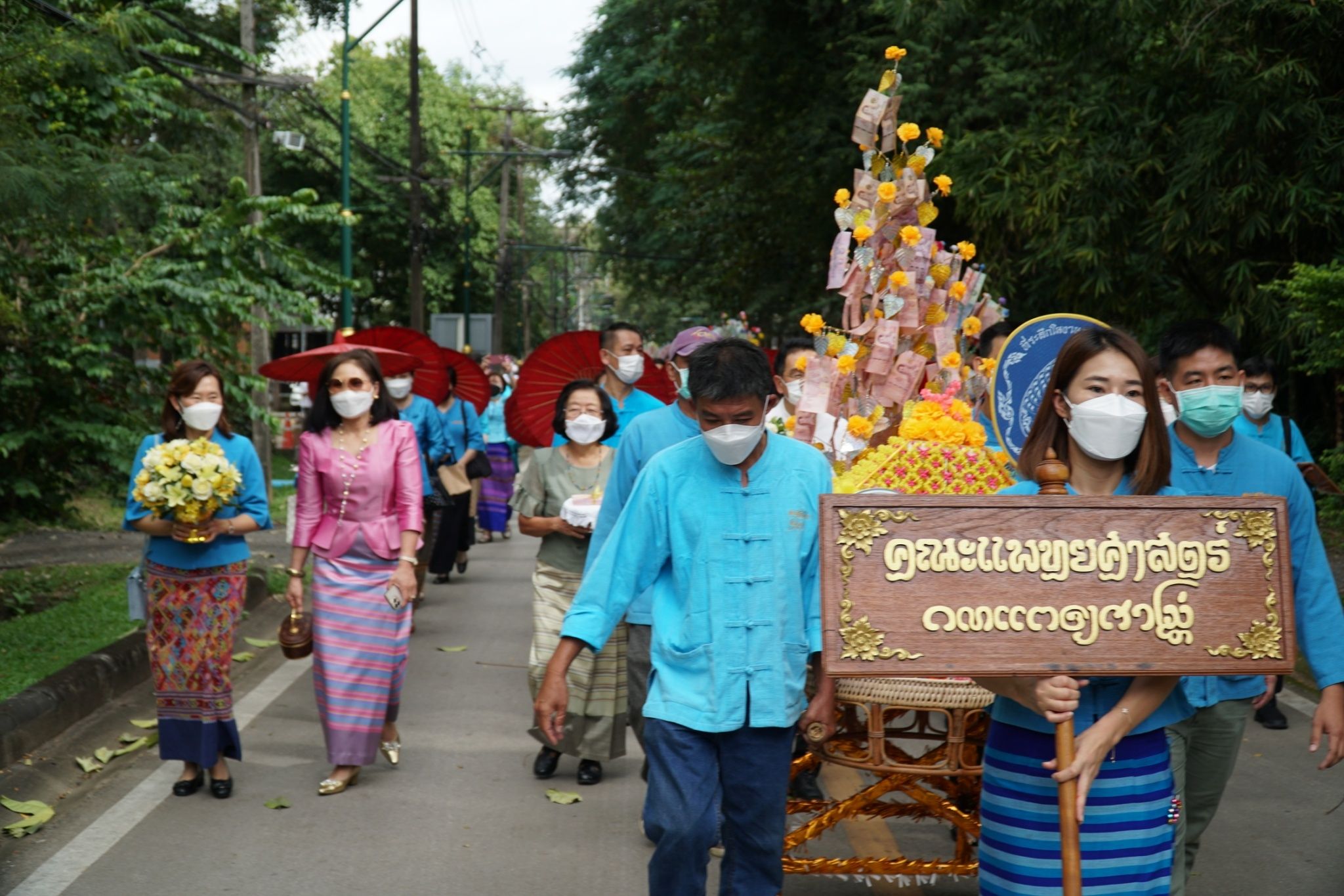 ศ. (เชี่ยวชาญพิเศษ) นพ.บรรณกิจ โลจนาภิวัฒน์ คณบดี ,รศ.นพ.ณัฐพงศ์ โฆษชุณหนันท์ รองคณบดี ,รศ.พญ.ยุพา สุมิตสวรรค์ ที่ปรึกษาผู้ทรงคุณวุฒิ คณะแพทยศาสตร์ มช. พร้อมคณะผู้บริหาร หัวหน้าฝ่าย หัวหน้างาน และบุคลากร คณะแพทยศาสตร์ มช. ร่วมพิธีทำบุญทอดกฐินมหาวิทยาลัยเชียงใหม่ ประจำปี 2565