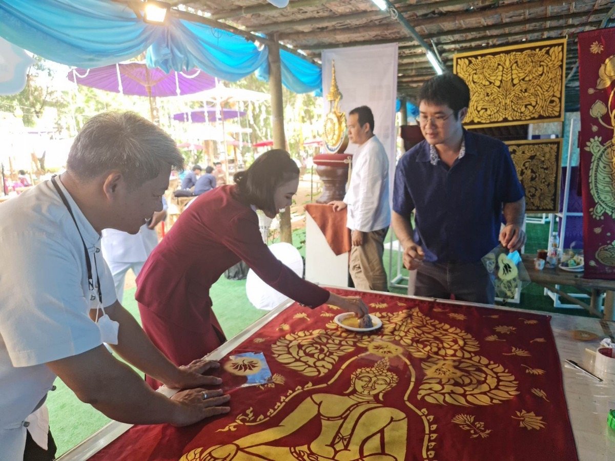ทั้งนี้ มหาวิทยาลัยเทคโนโลยีราชมงคลล้านนา ได้นำผลงานการสนองงานโครงการพระราชดำริของพระเจ้าวรวงศ์เธอ พระองค์เจ้าสิริภาจุฑาภรณ์ จัดแสดงในพิธีถวายพระจุลกฐิน ผ่านการจัดแสดงนิทรรรศการ ระหว่างวันที่ 27-29 ตุลาคม 2565 ซึ่งจัดแสดงภาพพระพุทธประวัติ ตอนประสูติ ตรัสรู้ และปรินิพพาน และการสาธิตการใช้เทคนิคลายคำน้ำแต้ม ปิดทองคำเปลว และสีอะคริลิกบนผ้าใบ โดย รศ.ลิปกร มาแก้ว, ผศ.วิทยา พลวิฑูรย์, อ.เนติ พิเคราะห์ และนักศึกษาหลักสูตรทัศนศิลป์ (ศิลปะไทย) คณะศิลปกรรมและสถาปัตยกรรมศาสตร์ เพื่อให้ผู้สนใจได้เข้าชมและร่วมกิจกรรม