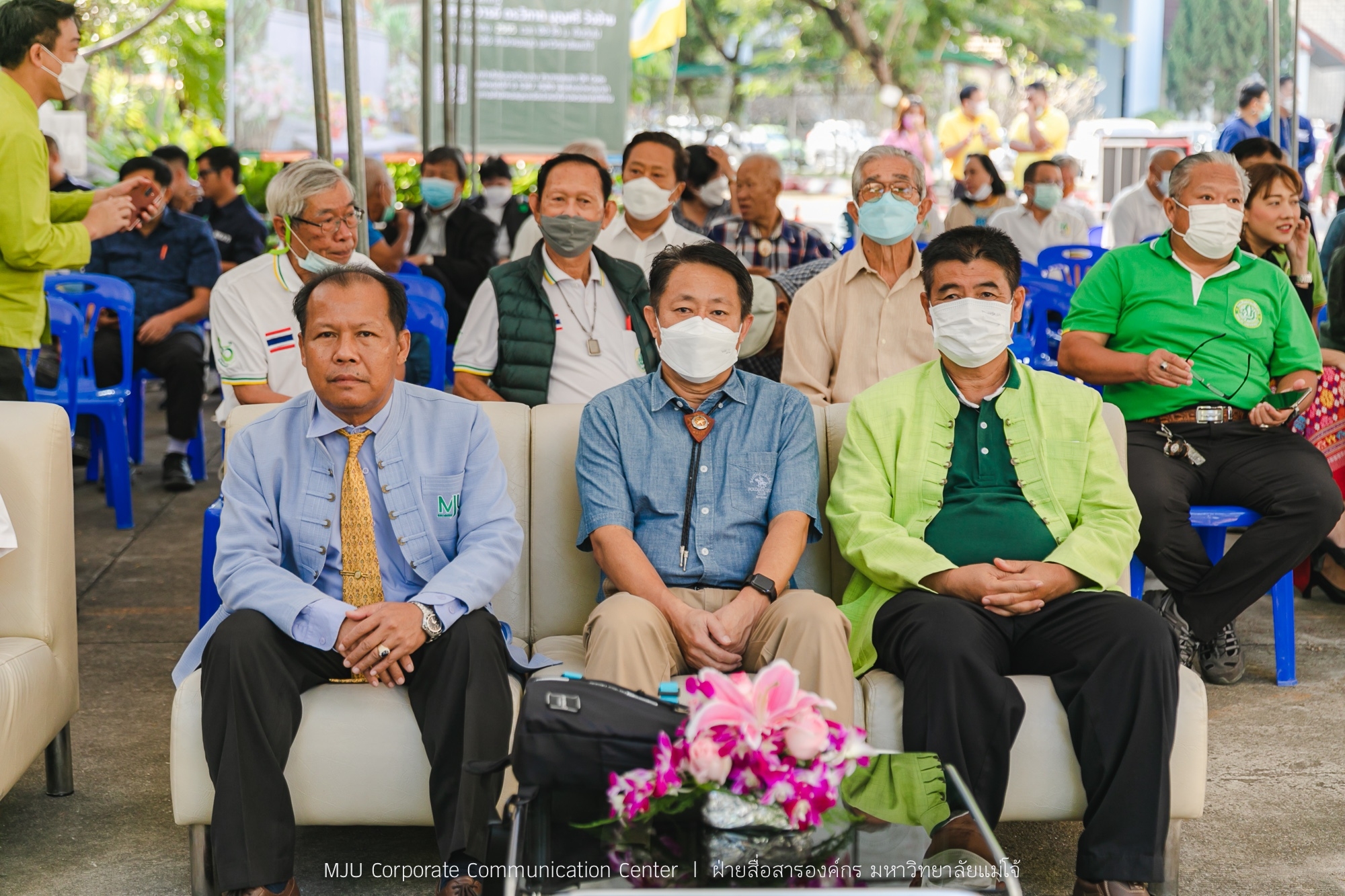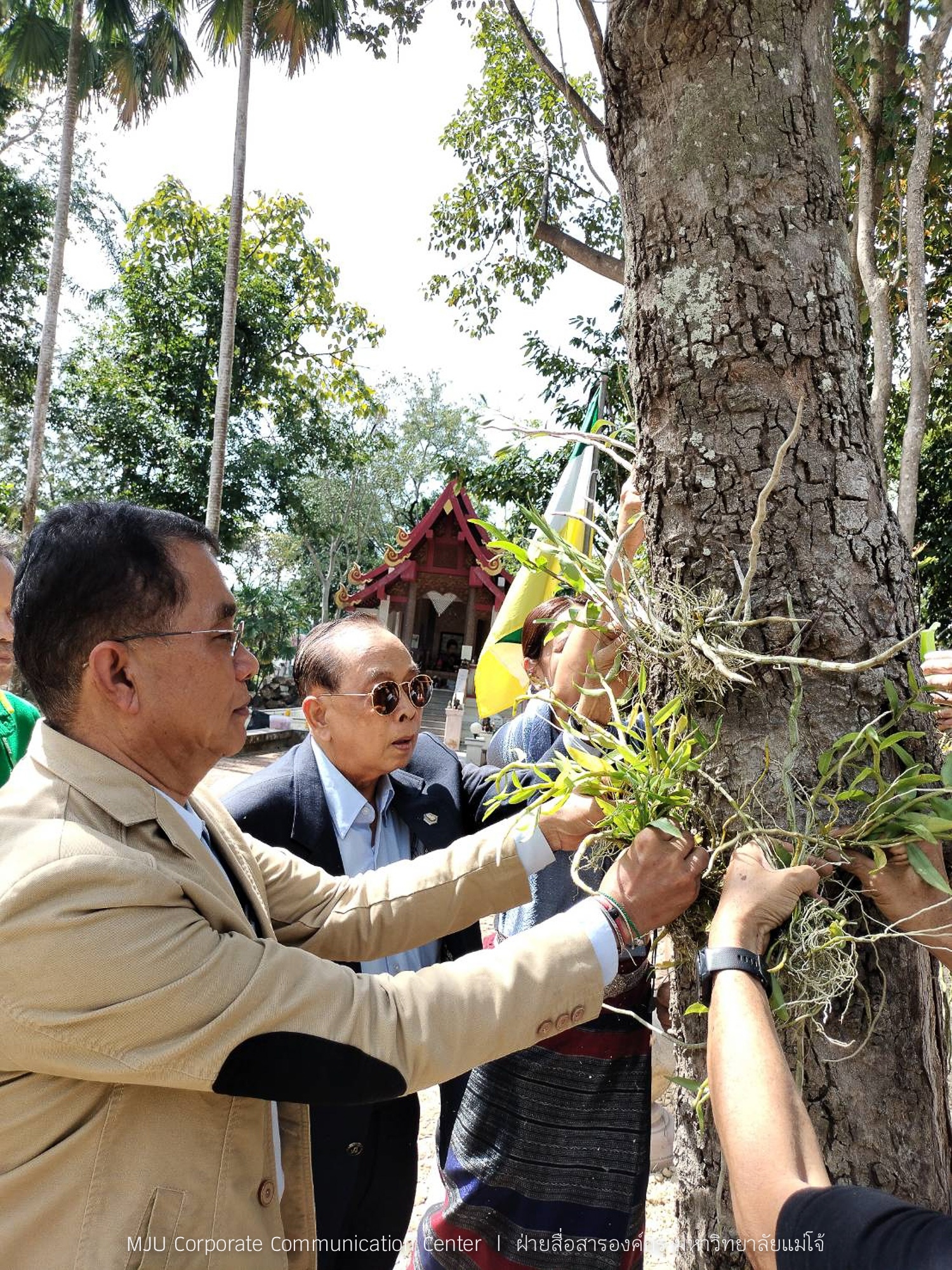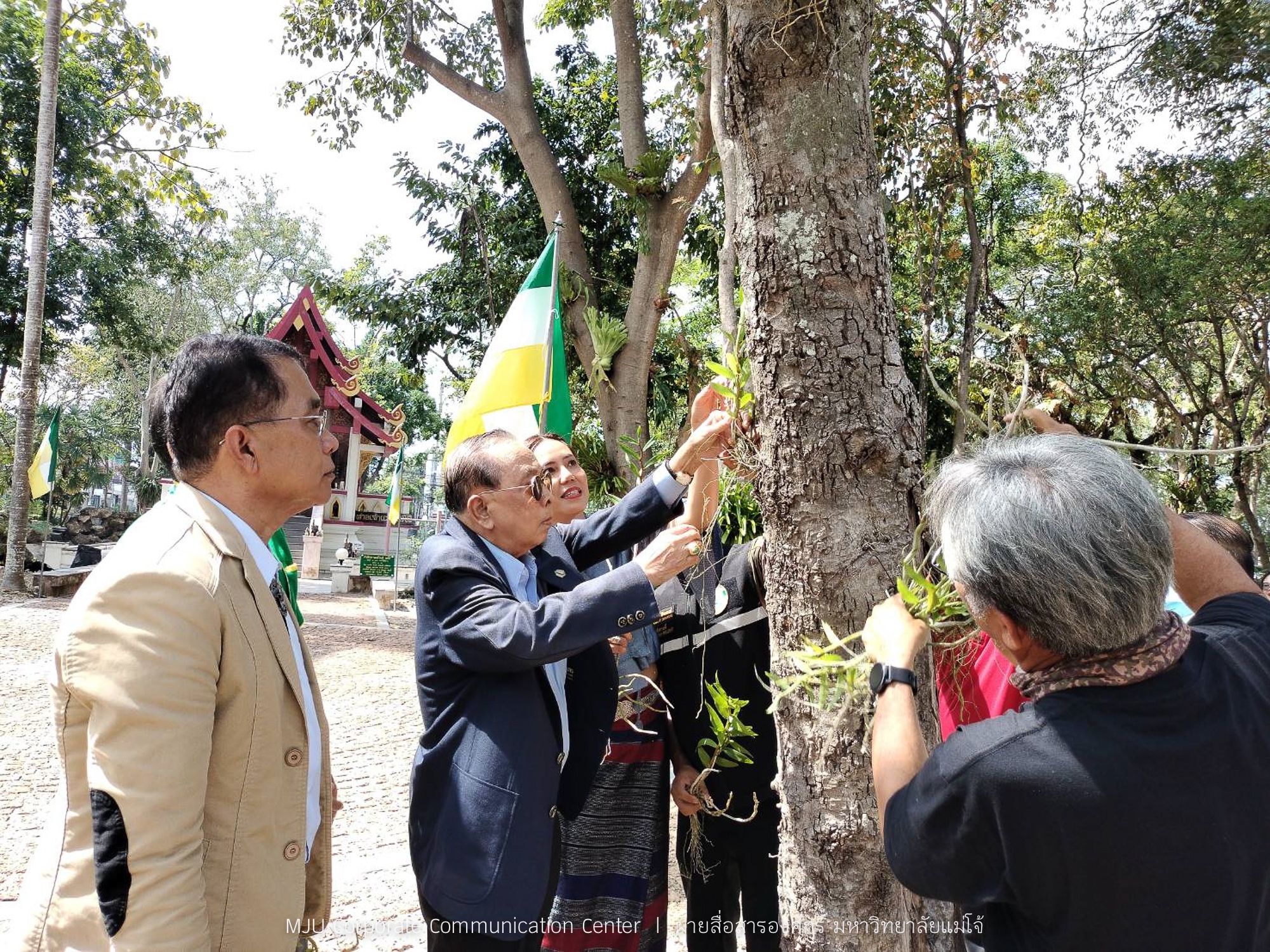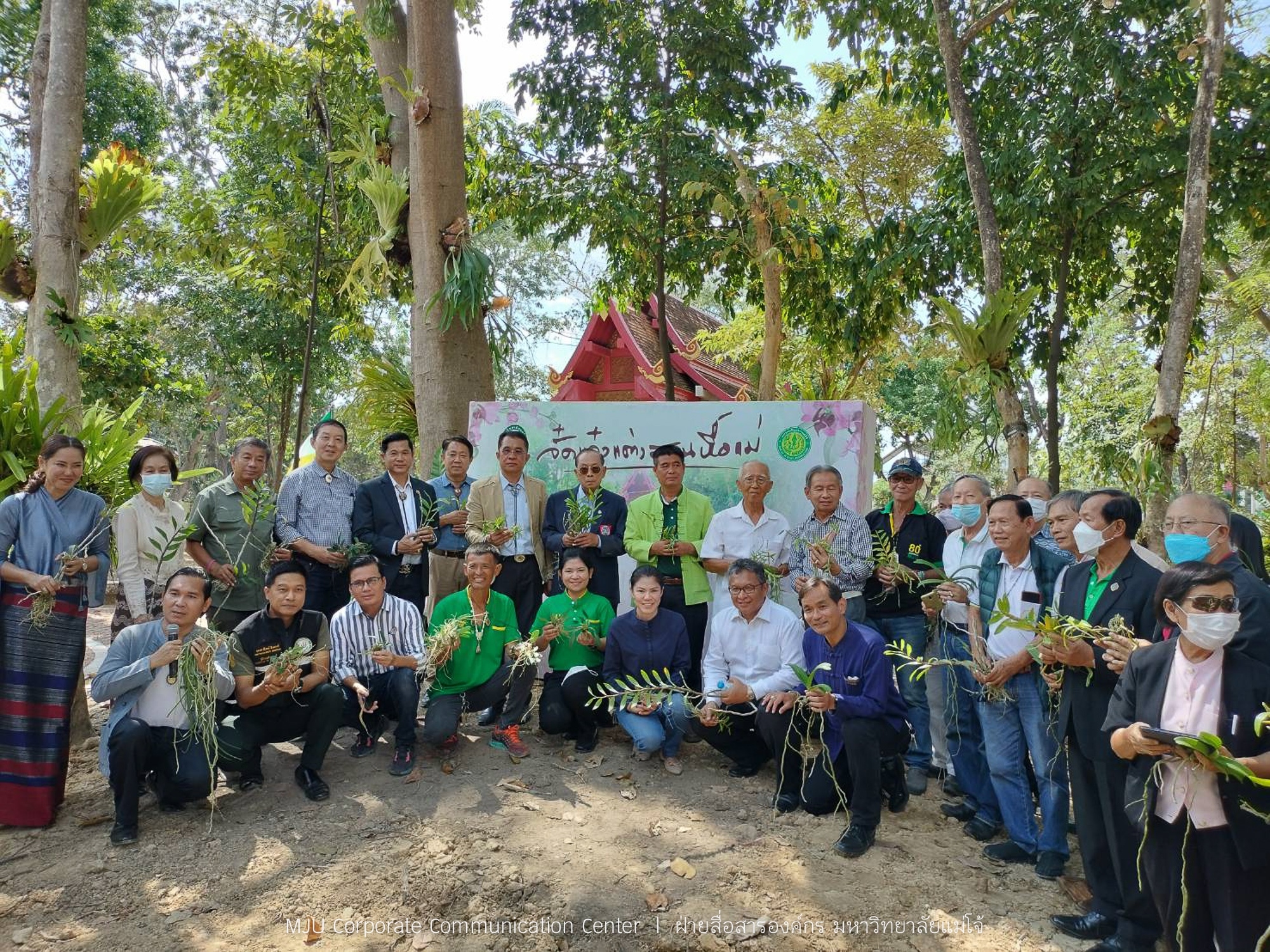 จากนั้น ดร.อำนวย ยศสุข นายกสภามหาวิทยาลัยแม่โจ้ เป็นประธานในกิจกรรมปลูกกล้วยไม้ไทยสายใยลูกแม่โจ้ โครงการจั๋ดแจ๋งแต่งสวนหื้อแม่ โดยมี ผู้ช่วยศาสตราจารย์พาวิน มะโนชัย รองอธิการบดีมหาวิทยาลัยแม่โจ้ ประธานคณะกรรมการโครงการปรับปรุงภูมิทัศน์ฯ กล่าวรายงาน พร้อมด้วย คณะกรรมการดำเนินงาน สมาคมศิษย์เก่า คณาจารย์ และศิษย์เก่าเข้าร่วมกิจกรรม ณ บริเวณศาลเจ้าแม่ แม่โจ้