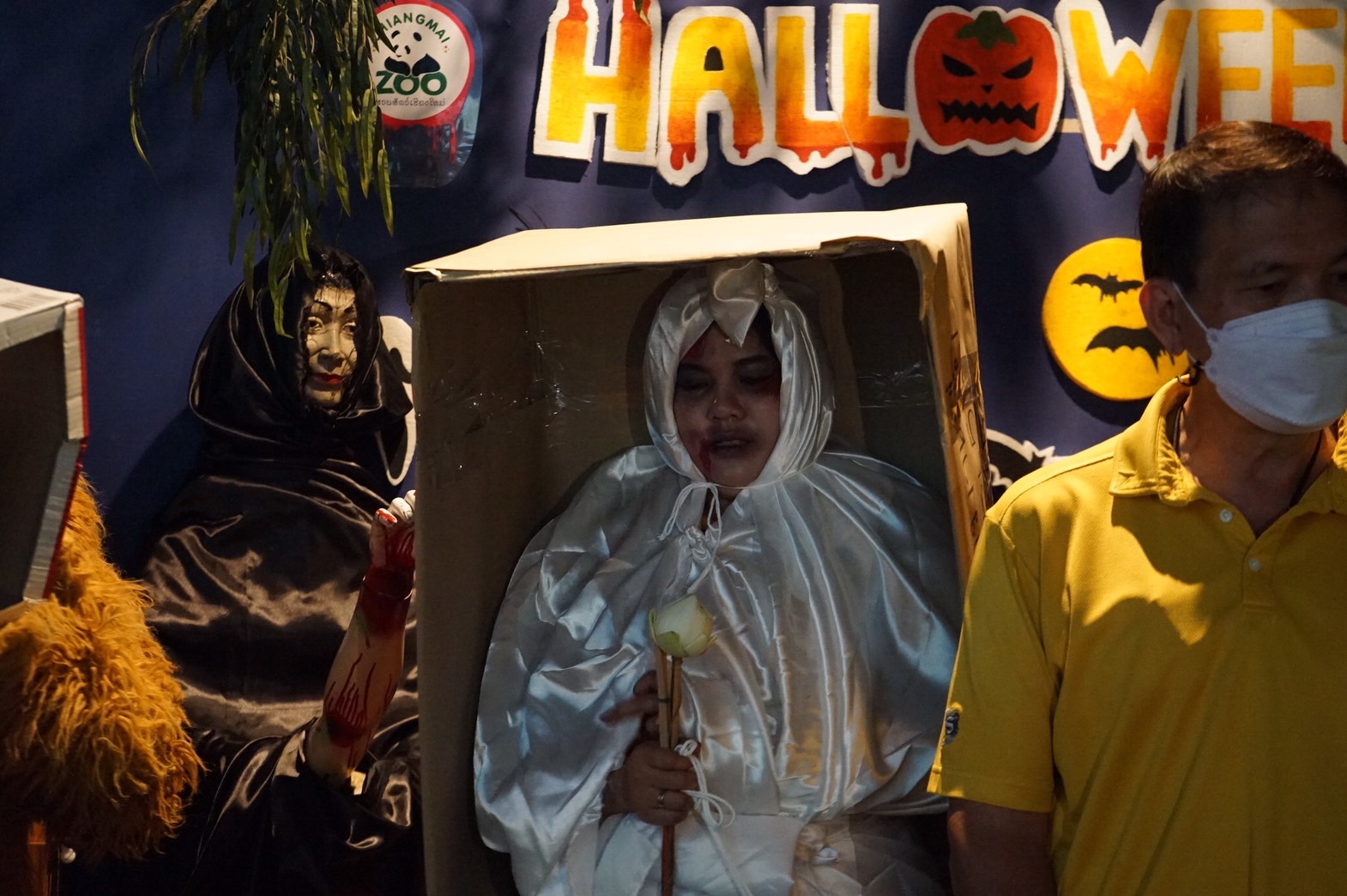วันนี้ 31 ตุลาคม 2565 เวลา 13.30 น. นายวุฒิชัย ม่วงมัน ผู้อำนวยการสวนสัตว์เชียงใหม่ เผยว่า สวนสัตว์เชียงใหม่ ได้จัดกิจกรรมพิเศษขึ้นต้อนรับวันฮาโลวีน เพื่อรองรับนักท่องเที่ยวที่เข้ามาเที่ยวชมในวันนี้ โดยนักท่องเที่ยวสามารถเข้าร่วมกิจกรรมพิเศษได้ ณ บริเวณซุ้มกิจกรรม ภายในเชียงใหม่ ซู อควาเรียม ซึ่งได้มีการจัดตกแต่งบรรยากาศวันฮาโลวีน พร้อมถ่ายภาพกับม้าแคระเชตแลนด์ 1 คู่แต่งตัวน่ารักๆ เข้ากับบรรยากาศวันฮาโลวีน อีกทั้งมีบริการให้นักท่องเที่ยวเพ้นท์หน้าธีมฮาโลวีนฟรี ถ่ายรูปโพสต์เฟซบุ๊ก เปิดเป็นสาธารณะ ติดแฮชแท็ก #ฮาโลวีนที่อควาเรียม ท่านใดมียอดไลค์และข้อความโดนใจมากที่สุดจะได้รับของรางวัลสุดพิเศษจากทางเชียงใหม่ ซู อควาเรียมด้วย