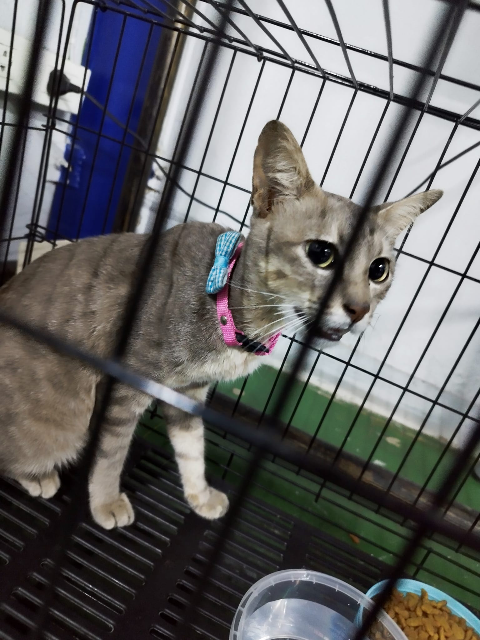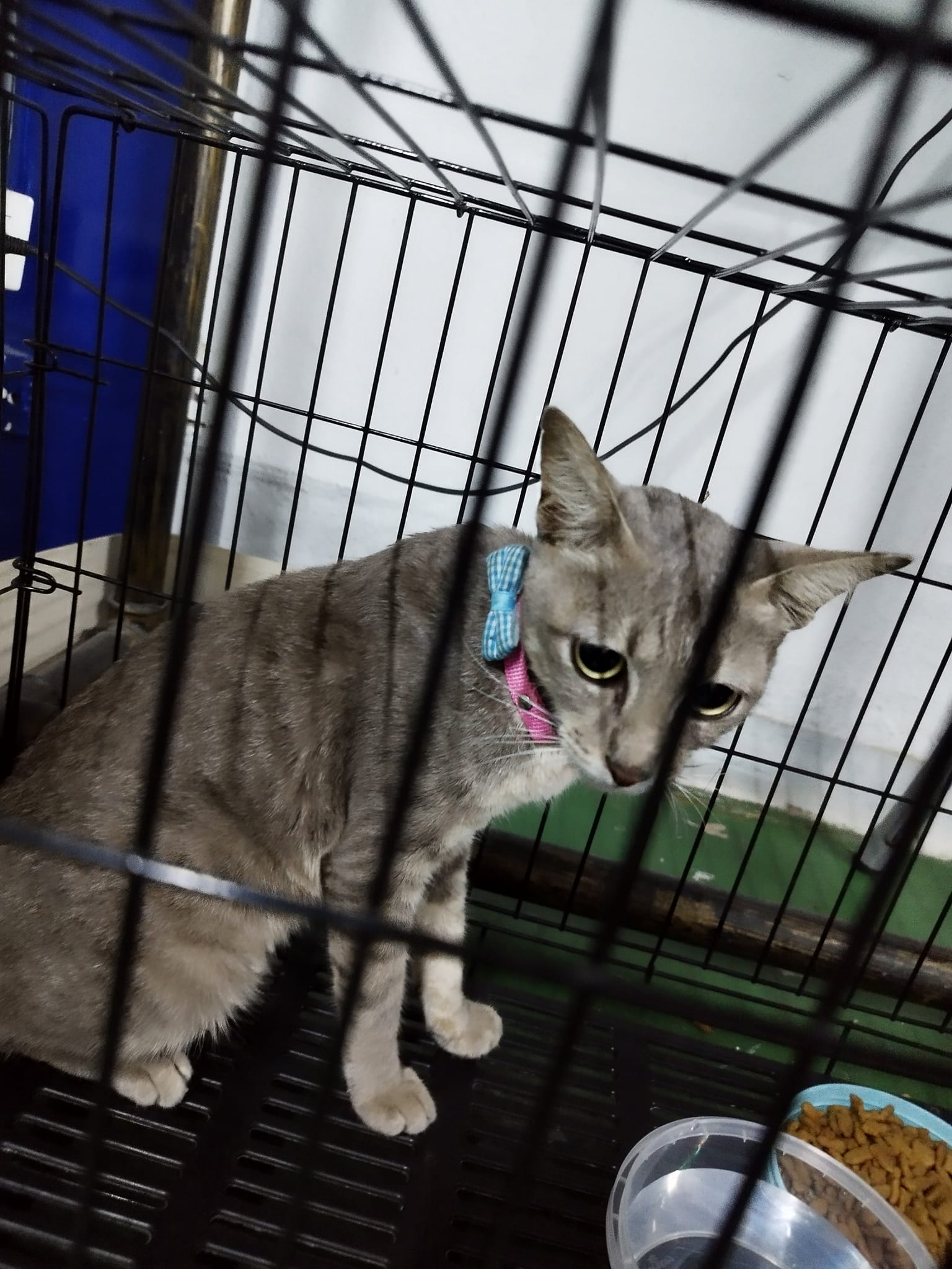 น้องเป็นเพศเมีย มีปลอกคอสีฟ้าชมพูตามภาพ