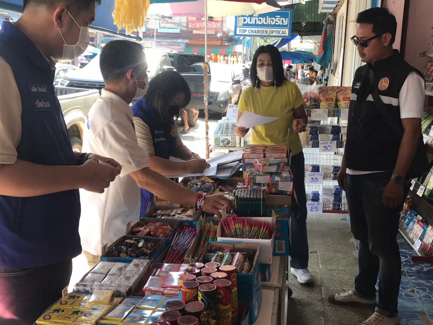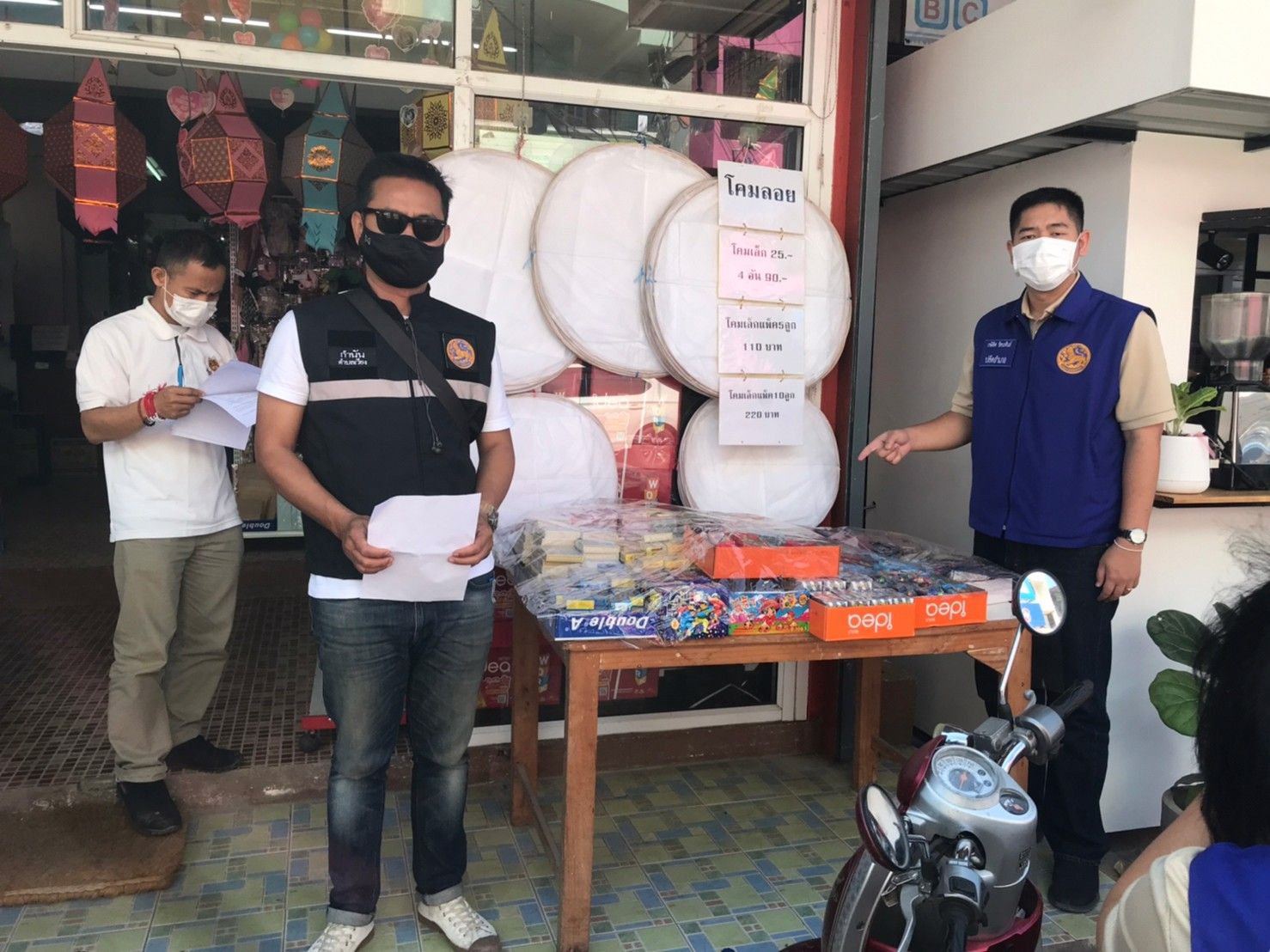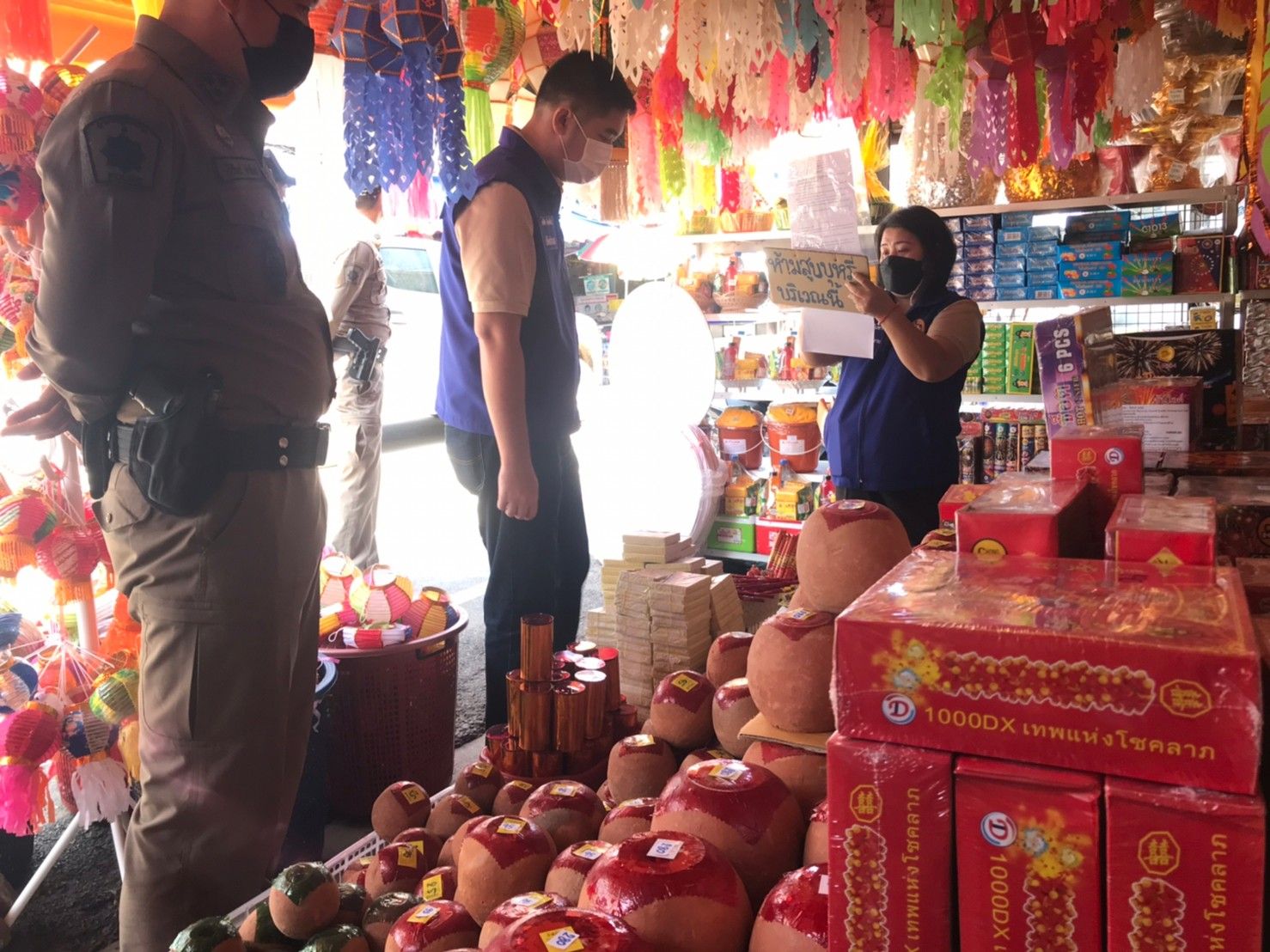 พร้าว ตรวจร้านขายดอกไม้เพลิง กำชับปฏิบัติตามกฎหมาย ประกาศจังหวัดเชียงใหม่ ควบคุมการปล่อยโคมลอย จุดพลุ