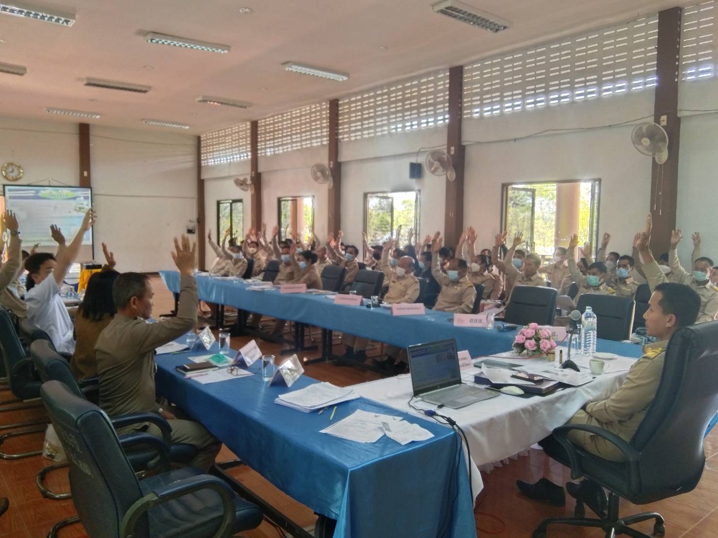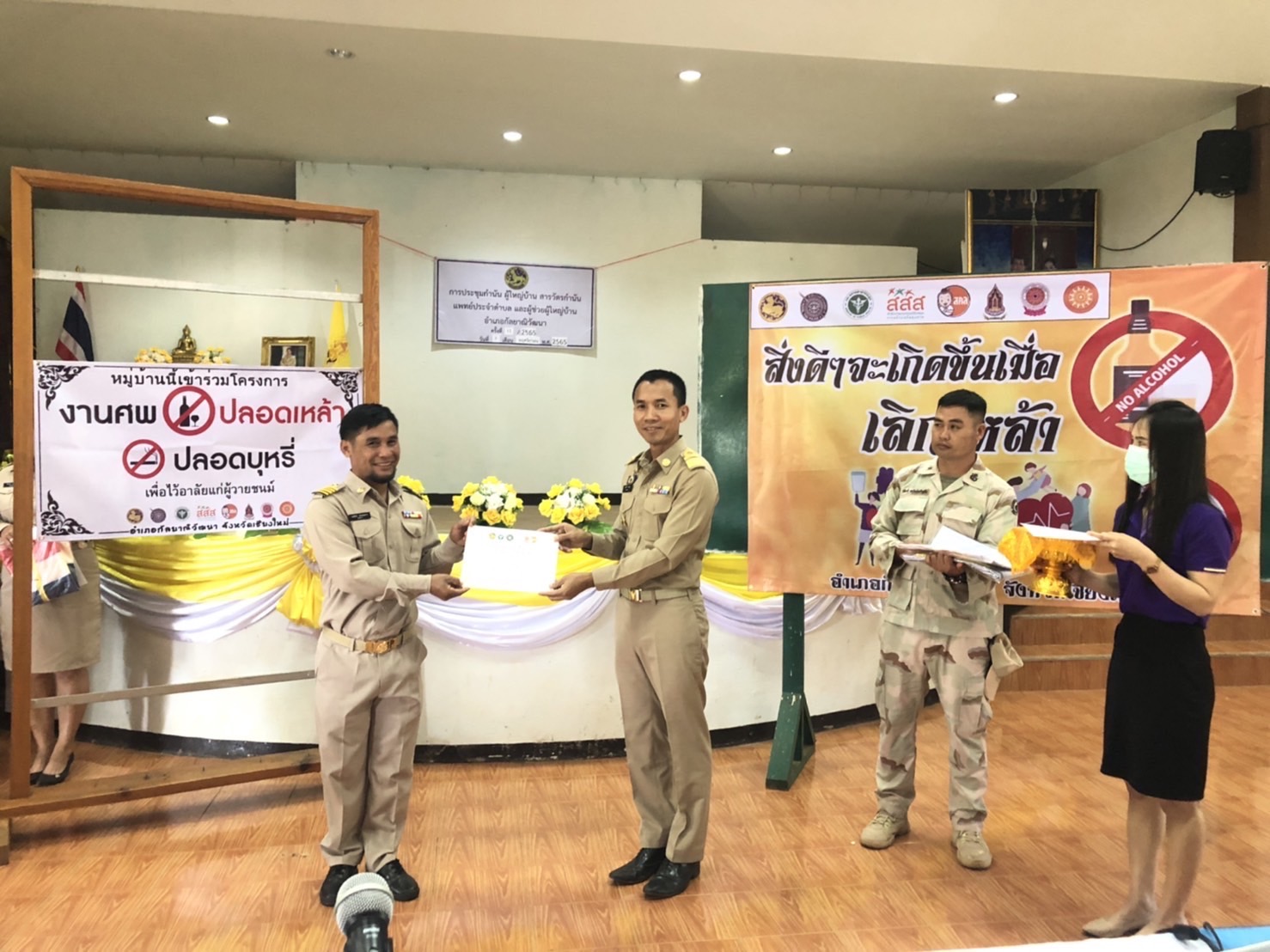 ปัจจุบัน มีผู้นำท้องที่เข้าร่วม เช่น กำนัน ผู้ใหญ่บ้าน ประธานสภาองค์การบริหารส่วนท้องถิ่น และสมาชิกสภาองค์กรปกครองส่วนท้องถิ่น “สมัครใจเลิกเหล้า อย่างเด็ดขาด“ เป็นต้นแบบและบุคคลตัวอย่างที่ดีให้แก่ประชาชนในพื้นที่ เพื่อนำไปสู่ขับเคลื่อนยุทธศาสตร์ อำเภอสร้างสุขภาวะ ป้องกันนักดื่มหน้าใหม่ ลดปัจจัยเสี่ยงในพื้นที่ต่อไป (2) มอบใบประกาศนียบัตร ให้แก่ ผู้นำต้นแบบ บุคคลตัวอย่าง “เลิกเหล้า” และหน่วยงานราชการ และหมู่บ้านที่สนับสนุนกิจกรรมรณรงค์ประชาสัมพันธ์ให้งดเหล้าเข้าพรรษา เพื่อเชิดชู ยกย่องคนต้นแบบ โดยผลการดำเนินงานที่ผ่านมา องค์ภาคีเครือข่ายในพื้นที่ทุกภาคส่วน ได้ร่วมมือกันอย่างเข้มแข็ง และประชาชนในพื้นที่ให้ความสนใจ และเข้าร่วมกิจกรรมเกือบร้อยเปอร์เซ็นต์ (3) บันทึกข้อตกลงความร่วมมือ (MOU) ร่วมกันระหว่าง นายอำเภอ กับ กำนัน ผู้ใหญ่บ้าน ทุกหมู่บ้าน เพื่อขับเคลื่อนและขยายผลกิจกรรมโครงการระดับหมู่บ้าน