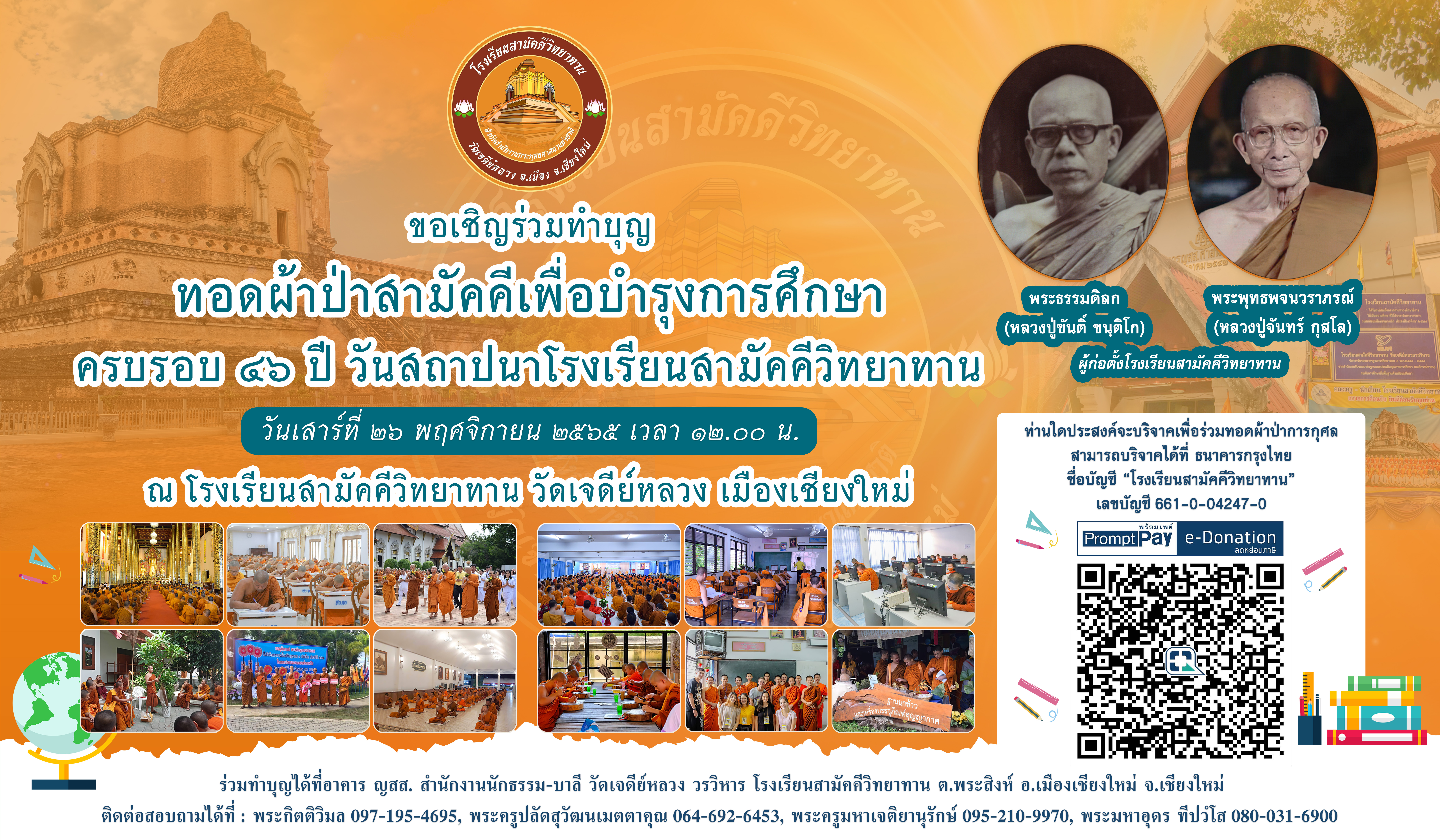 24 พฤศจิกายน 2565 วันคล้ายวันสถาปนาโรงเรียนสามัคคีวิทยาทาน ครบรอบ 46 ปี