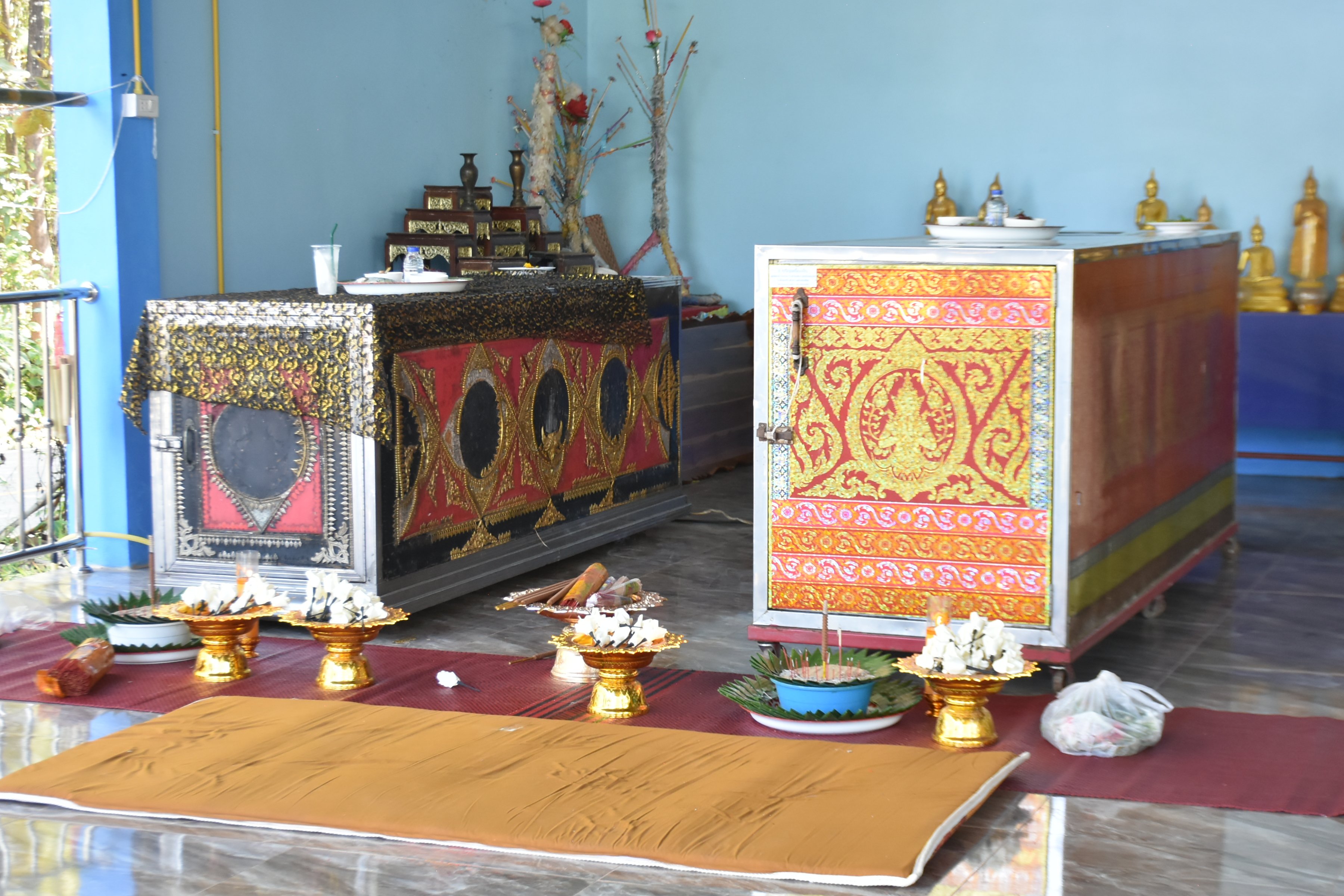 พบว่าชาวบ้านได้นำศพของนายธนกร กุลสิริปราการ และนายกิตติพงษ์ เจริญเมือง ไปบำเพ็ญพิธีทางศาสนาที่วัดหล่ายพัฒนา ม.3 ต.อ่างทอง อ.เชียงคำ จ.พะเยา ซึ่งเป็นที่อยู่อาศัยตามทะเบียนบ้าน จากการสอบถามนายเพลิน เวียงคำ ผญบ.บ้านหล่ายพัฒนา ทราบว่า นายธนกรผู้ตายเป็นอดีตเจ้าอาวาสนักพัฒนาของวัดหล่ายพัฒนา ฉายาตอนบวชคือ “พระธนกร ธรรมปาโล” บวชมานาน 17 พรรษา มีลูกศิษย์และผู้ศรัทธาทั้งในประเทศและต่างประเทศ เคยสร้างสิ่งก่อสร้างหลายอย่างให้กับทางวัดและชุมชน ก่อนจะสึกออกมาได้ประมาณปีกว่า