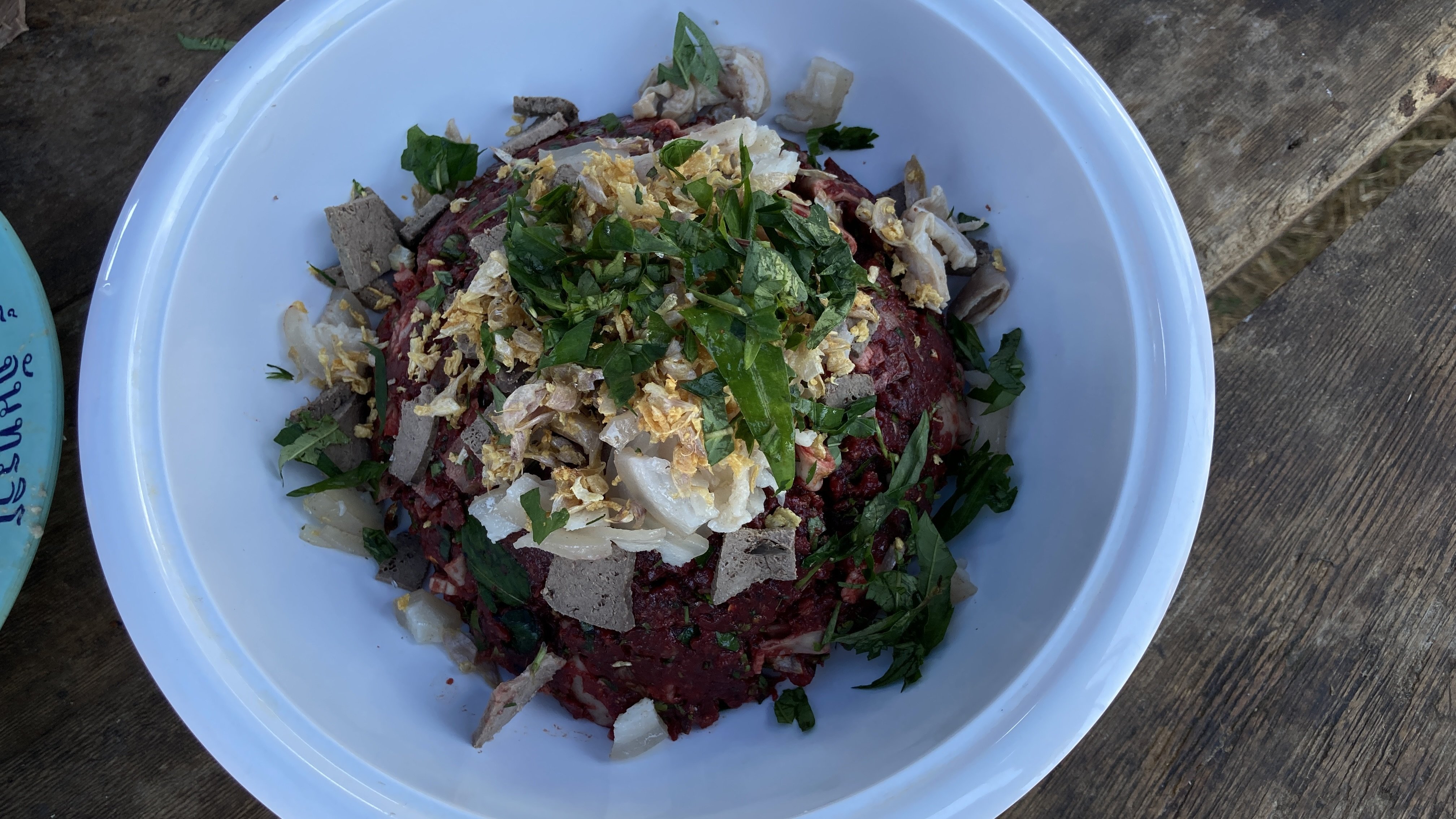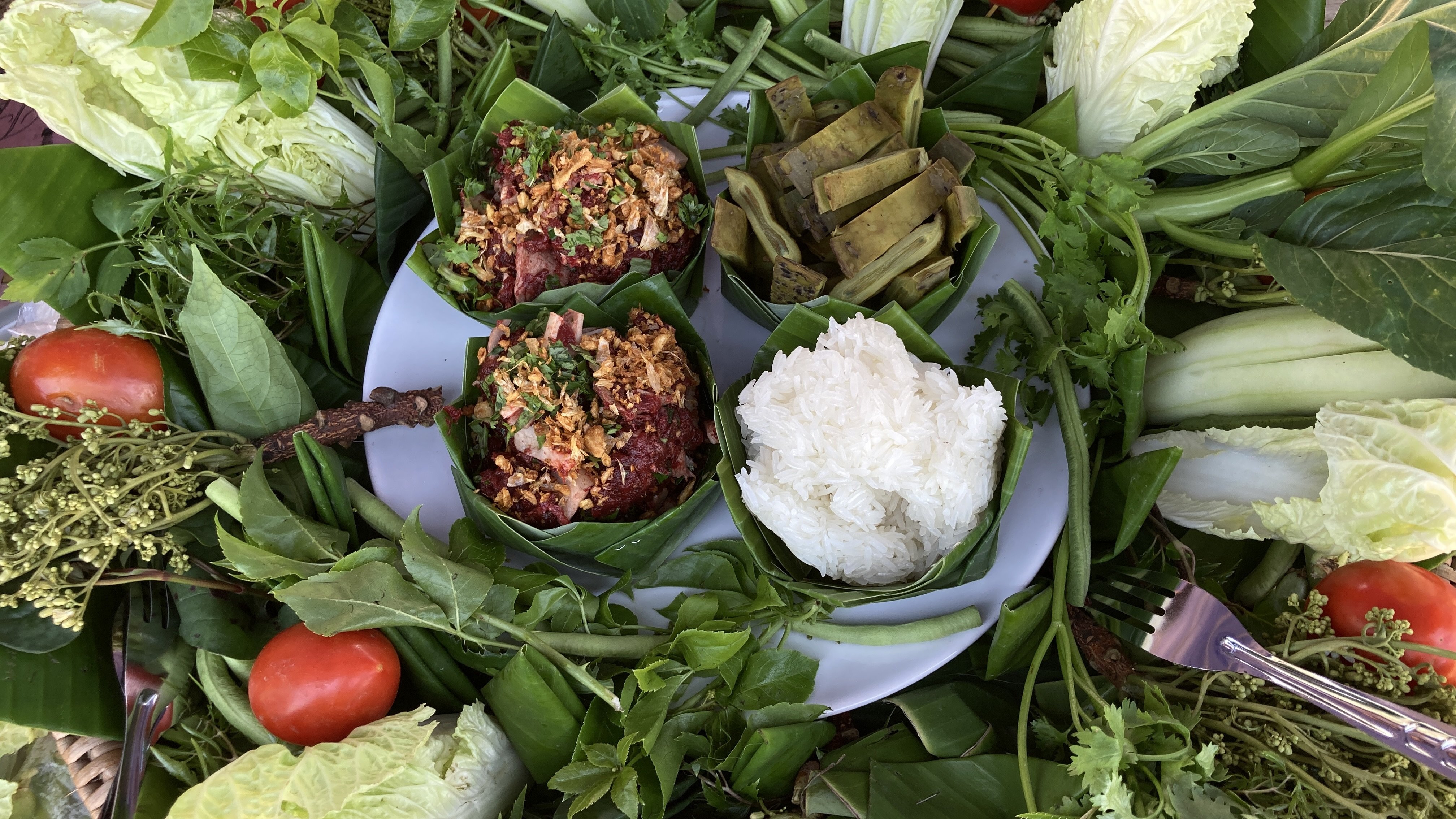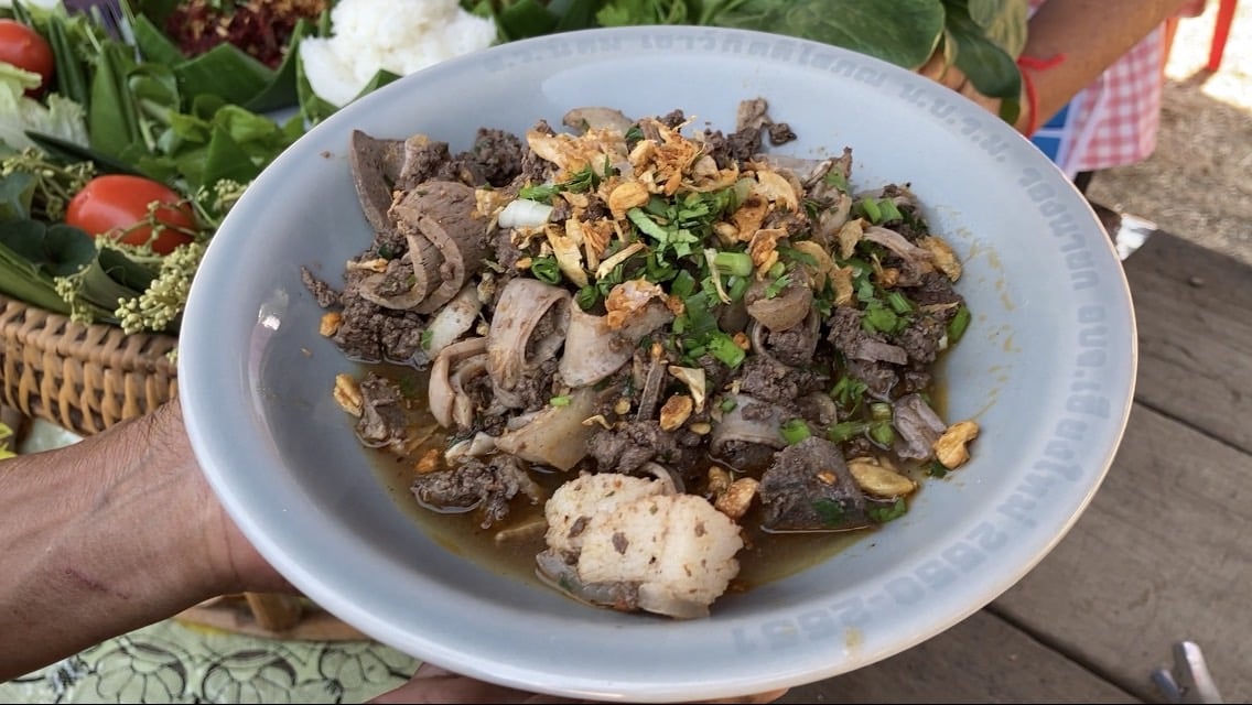 การลาบจะต้องละเอียด ใส่เลือดก้อนให้เนื้อมีสีสันน่าทาน และเครื่องในต้องต้มสุก ส่วนเครื่องเทศลาบนั้นจะเป็นสูตรใครสูตรมัน ทำมาก่อน หลักๆ ก็จะมี พริกแห้งคั่ว ตระไคร้ ข่า ตำแล้วคั่ว เครื่องเทศจะมี ดีปลี ดอกจันทร์ ยี่หร่า พลิกไทดำ กระวาน มะแหลบ มะแข่วน เมล็ดผักชี ที่นำมาคั่วให้หอมแล้วตำโขลกละเอียดหรือจะปั่นก็ได้ กะปิอย่างดีนำมาย่างไฟให้สุกนำมาผสมน้ำต้มเครื่องใน นำพลิกลาบที่โขลกละเอียดแล้วมาผสม ปรุงรส นำลาบลงคลุก เครื่องในต้มหั่นลงผสม แล้วผักสมุนไพรที่มีกลิ่นหอม ผักไผ่ ผักหอมด่วนหรือสาระแหน่ ผักชี ต้นหอม ซอยพอละเอียดลงผสม พร้อมเสริฟ การอนุรักษ์อาหารประเภทลาบตามความเชื่อจะมีโชคมีลาภนั้นยังคงทำรับประทานกันแทบทุกครัวเรือนทั้งหญิงชายก็จะทำกินกัน ไม่มีสูญหาย และมีสมุนไพรเครื่องเทศช่วยในการรักษาและฟื้นฟูร่างกาย ผักที่เก็บมาเป็นเครื่องเคียงหรือผักกับลาบส่วนใหญ่จะเป็นพืชสมุนไพร ลิ้นฟ้า ผักไผ่ ดีฟาน ยอดโกศล ผักคาวตอง สาระแหน่ มะเขือ ถั่วฝักยาว มะเขือเทศ ดอกสะเดา ผักชีฟันเลื่อย เป็นพืชสมุนไพรมีสรรพคุณในการสร้างภูมิคุ้มกันให้กับร่างกายเป็นยาประเภทร้อน รักษาภายใน และเป็นยากระตุ้นทางเพศอีกด้วย หารับประทานกันได้ในภาคเหนือ