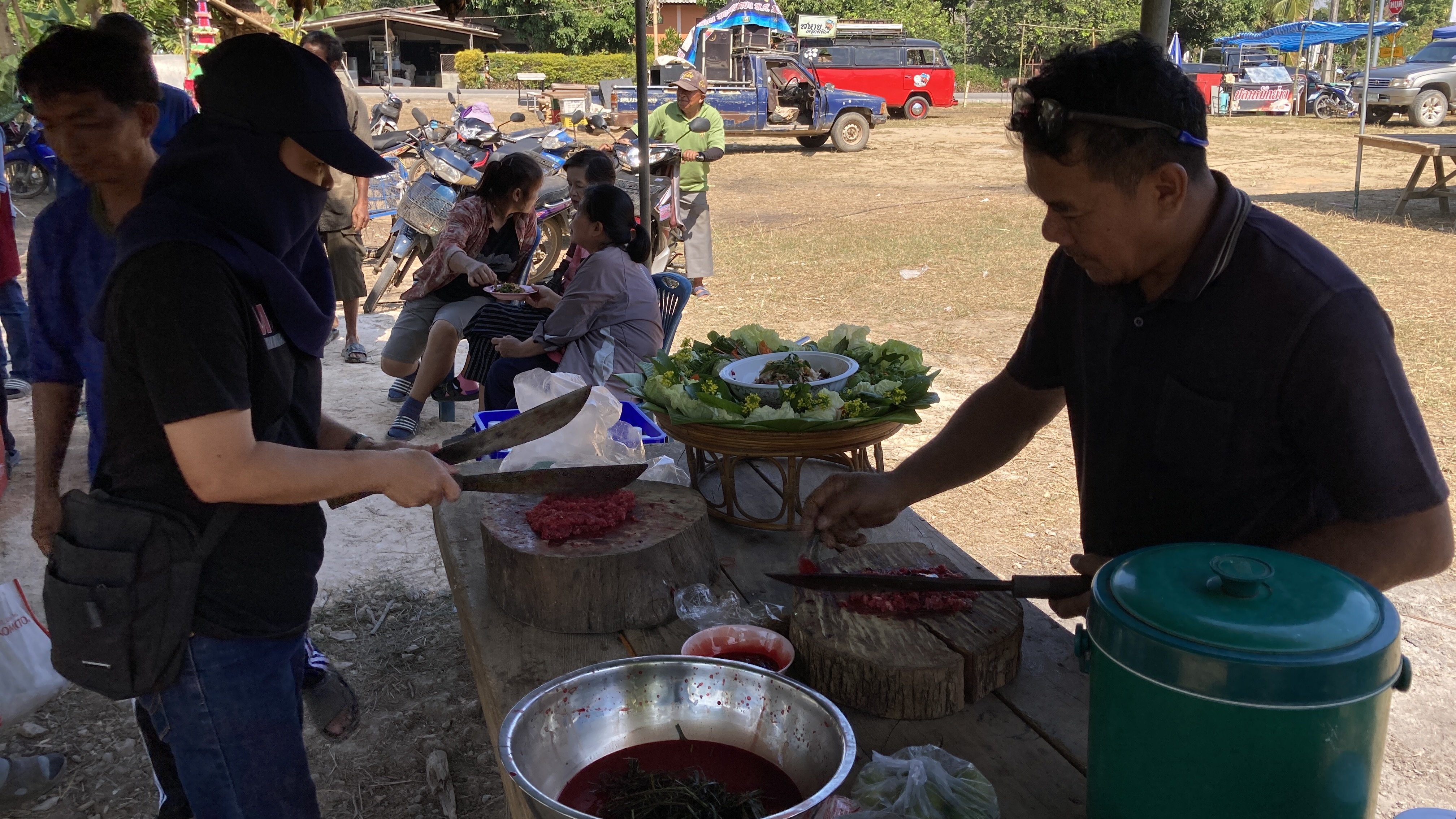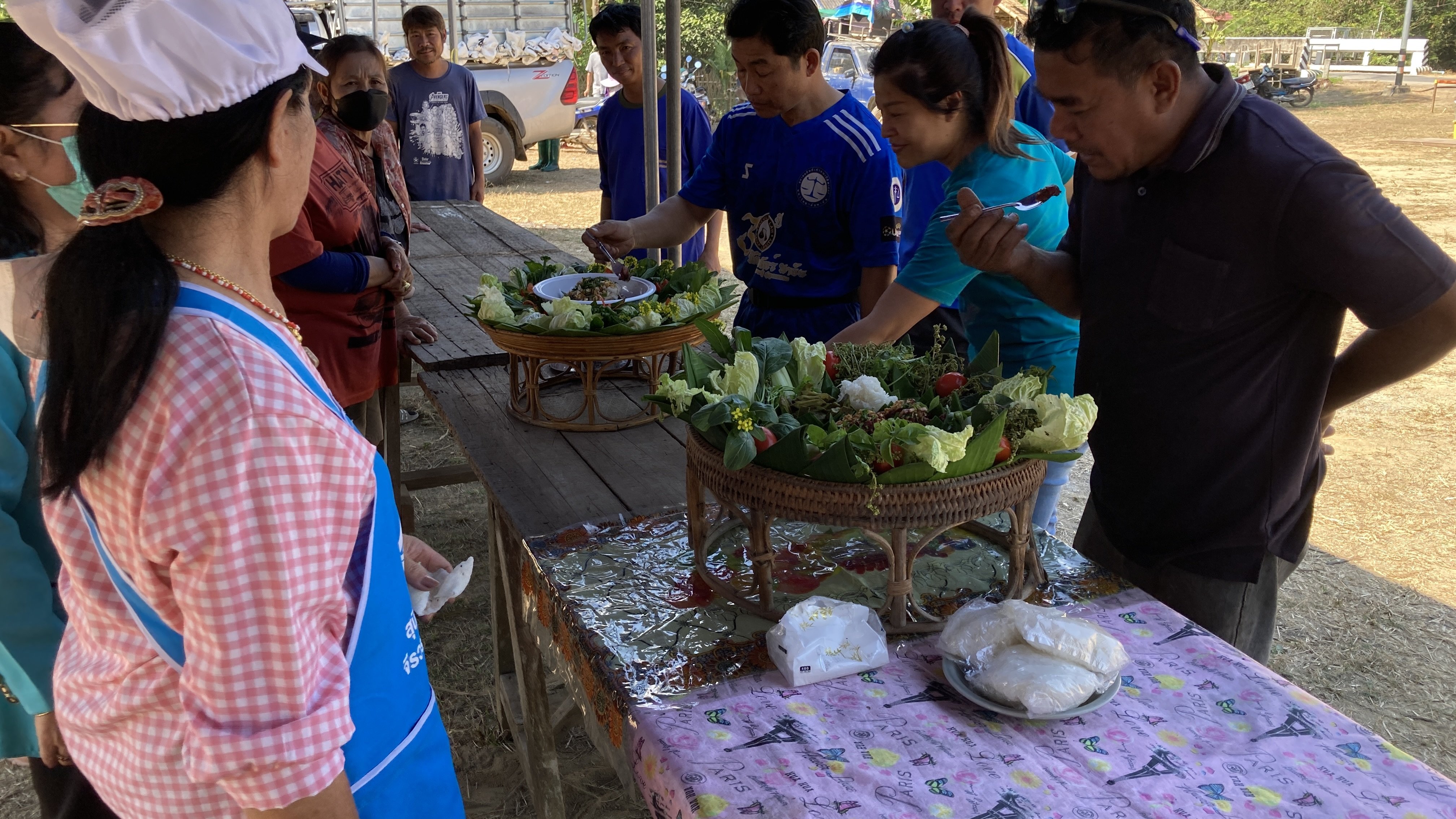 ในวันนี้จะเริ่มต้นเทศกาลประเพณีขอขมาแม่น้ำหรือประเพณีลอยกระทงขอขมาเจ้าแม่แห่งสายน้ำที่เคยใช้และทำอะไรหลายอย่างทั้งดีและไม่ดีพอถึงประเพณีเดือนยี่เป็งก็จะมาลอยกระทงขอขมาแม่น้ำกัน ทางชาวบ้านก็ได้จัดแข่งกันทำลาบว่าหมู่บ้านไหนอร่อยกว่ากัน มีทีมหมู่บ้านเข้ามาสมัครเกือบ 10 หมู่บ้านแต่พอมาเห็นมือยำลาบหรือคนทำลาบก็ขอบายหลายหมู่บ้านเพราะถ้าลงแข่งก็จะแพ้ จึงเหลือ 2 หมู่บ้านที่เข้าทำการแข่งขันกัน บ้านสบมาวหมู่ที่ 10 ตำบลสันทราย กับหมู่ 9 ตำบลเวียง อำเภอฝาง จังหวัดเชียงใหม่
