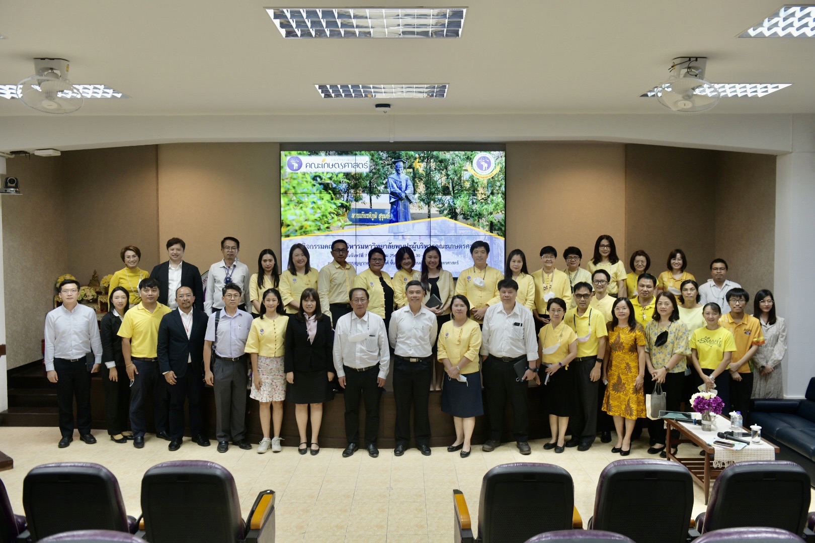 โดยมี ผศ.ดร.ดรุณี นาพรหม คณบดีคณะเกษตรศาสตร์ และคณะผู้บริหาร หัวหน้าภาค เลขานุการคณะ หัวหน้างาน ร่วมรับฟังและแลกเปลี่ยนข้อคิดเห็น ณ ห้องประชุมบุญญวาส ลำเพาพงศ์ คณะเกษตรศาสตร์ ฯเมื่อวันจันทร์ที่ 7 พฤศจิกายน พ.ศ.2565