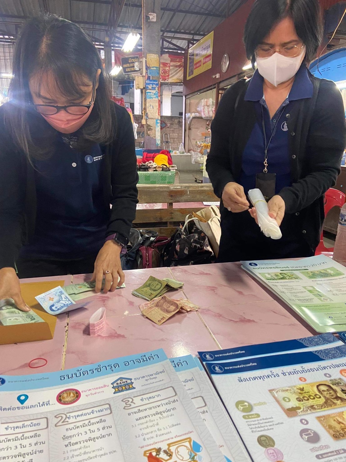 พร้อมเชิญชวนประชาขนที่มีธนบัตรเก่า ชำรุด ฉีกขาด ได้นำมาแลกเปลี่ยนเป็นธนบัตรเพื่อใช้หมุนเวียนต่อไป ซึ่งได้รับความสนใจจากประชาชน และพ่อค้าแม่ค้าในพื้นที่จำนวนมาก ทั้งนี้ได้ขอขอบคุณ คุณกัลยา เป็งใย เจ้าของตลาดเช้าข่วงเปา ที่เอื้อเฟื้อสถานที่ ขอบคุณน้องโบว์ ผู้เสียหายที่ได้รับธนบัตรปลอม โดยไม่นำไปใช้ต่อ และส่งมอบคืนธนบัตรปลอมให้ธนาคารฯ เพื่อทำลายต่อไป