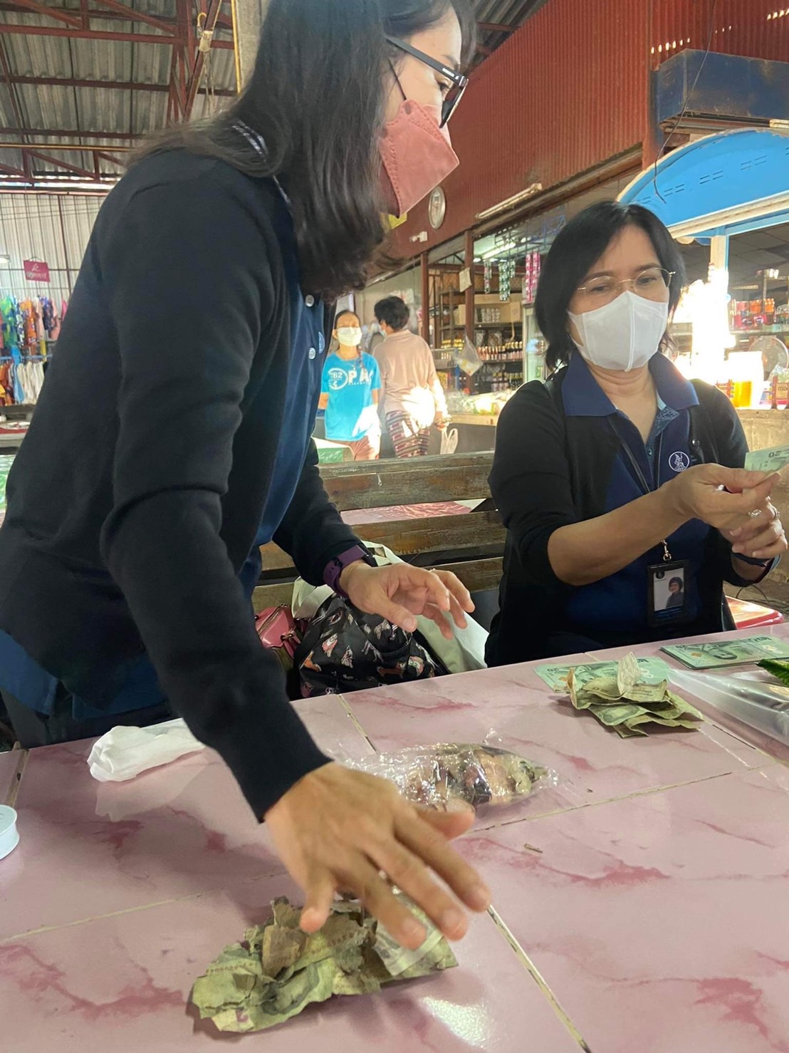 เมื่อวันที่ 8 พ.ย.65 เวลาประมาณ 07.00 น. เจ้าหน้าที่ธนาคารแห่งประเทศไทย สาขาเชียงใหม่ ได้ลงพื้นที่ ตลาดเช้าข่วงเปา อ.จอมทอง จ.เชียงใหม่ หลังจากที่ได้พบธนบัตรปลอม ราคา 100 บาท จำนวน 1 ฉบับ ได้นำมาใช้จ่ายในตลาดเมื่อวันที่ 31 ต.ค.65 ที่ผ่านมา พร้อมให้คำแนะนำวิธีการดูและแยกธนบัตรจริงและปลอม เพื่อไม่ให้กระจายสู่ท้องตลาดต่อไป ทั้งนี้ทางธนาคารได้นำโปสเตอร์ แผ่นพับวิธีการสังเกตธนบัตรให้กับประชาชนที่สนใจ