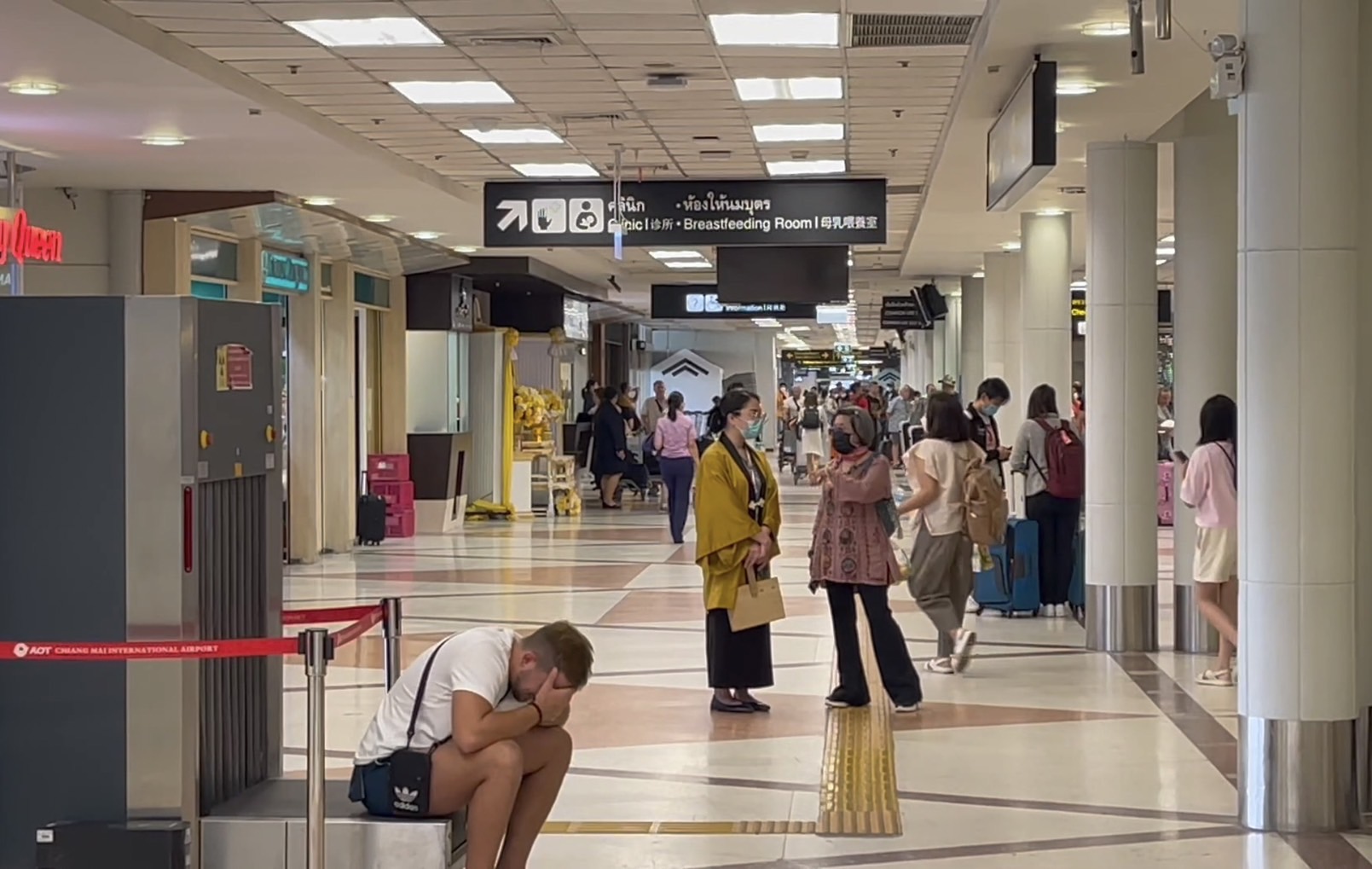 บรรยากาศการเดินทางที่ท่าอากาศยานเชียงใหม่ มีประชาชนและนักท่องเที่ยวจำนวนมาก เดินทางเข้าใช้บริการ และเตรียมเดินทางเข้ามาในจังหวัดเชียงใหม่ เพื่อเตรียมร่วมงานเทศกาลยี่เป็งในช่วงค่ำคืนนี้