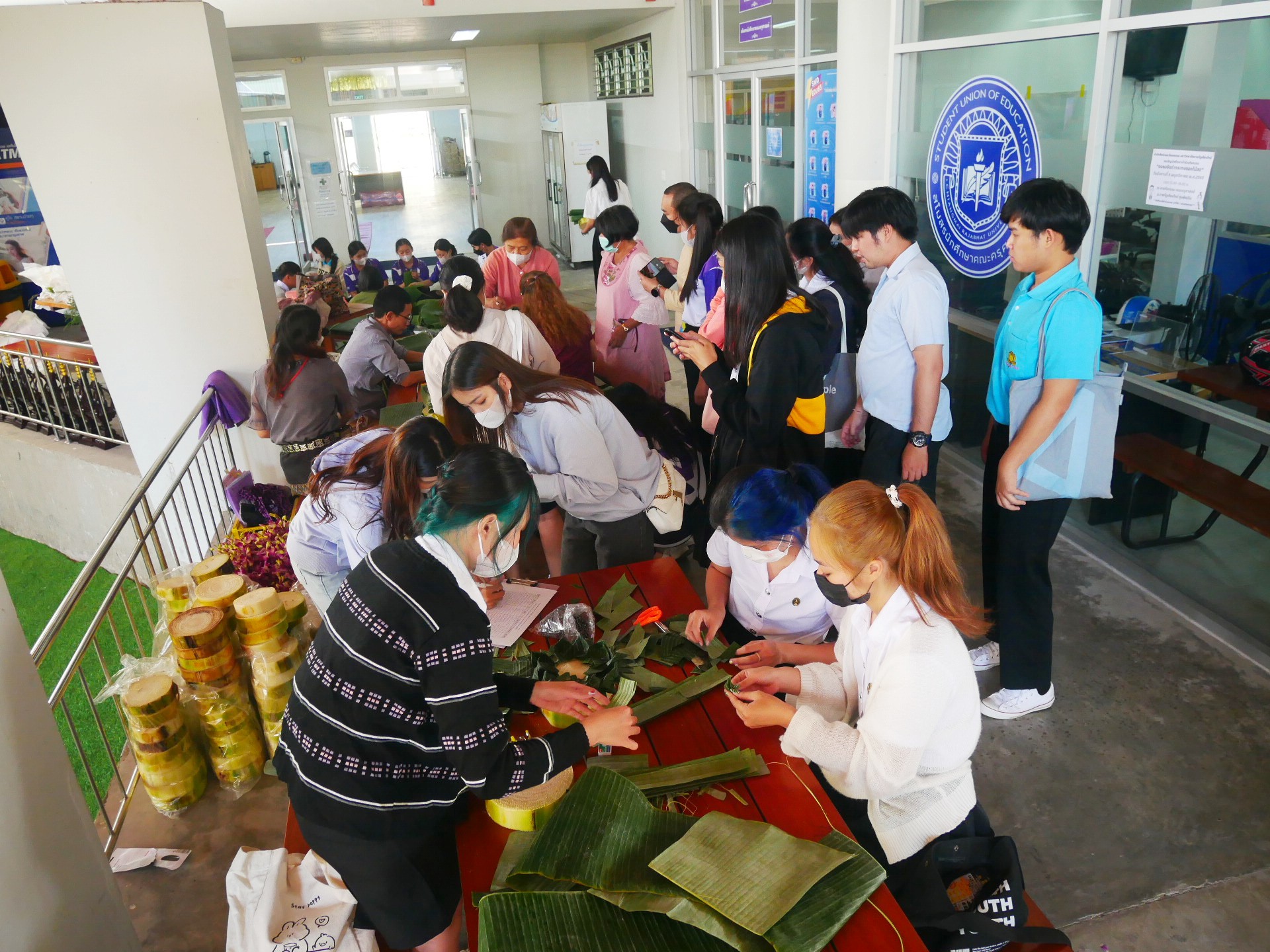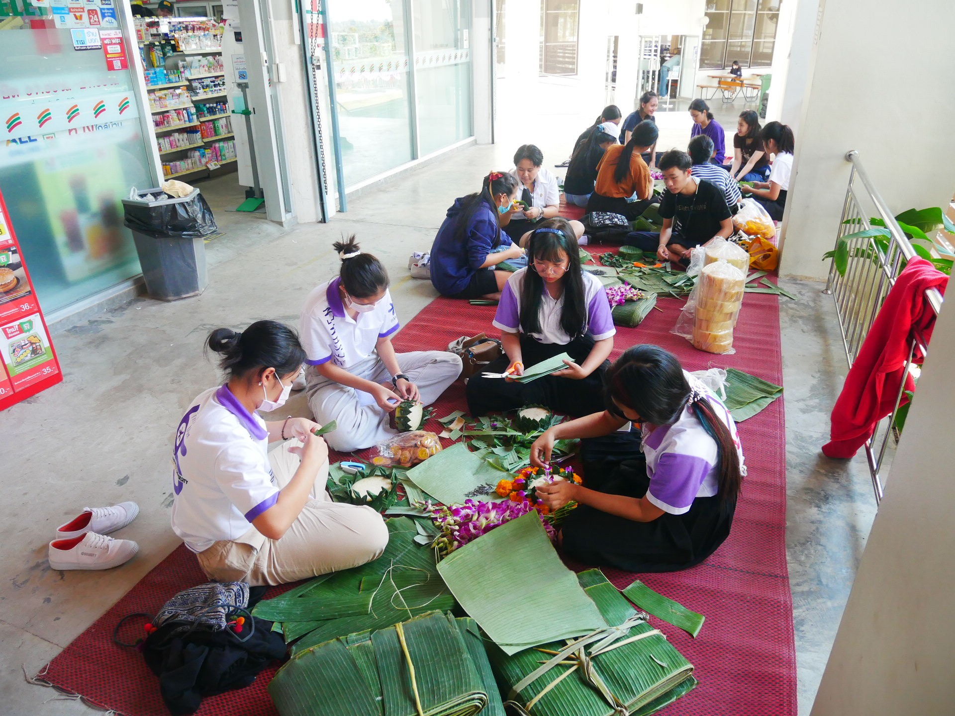 เวลา 13.00 น. กิจกรรม อบรมจัดทำกระทงดอกไม้สด และ อบรมจัดทำเครื่องสักการะล้านนา กิจกรรมที่ได้รับความสนใจจากนักศึกษาเป็นจำนวนมาก การทำกระทงใบตองสด มีทีมงานสอนแนะนำทำกระทง ใช้หยวกกล้วย ใบตอง ดอกไม้ วัสดุจากธรรมชาติที่ย่อยสลายได้ นักศึกษาได้เรียนรู้ สร้างสรรค์ รูปแบบให้ได้กระทงสวยๆ พร้อมนำกลับไปลอยในพื้นของตนเอง บริเวณลานกิจกรรม คณะครุศาสตร์
