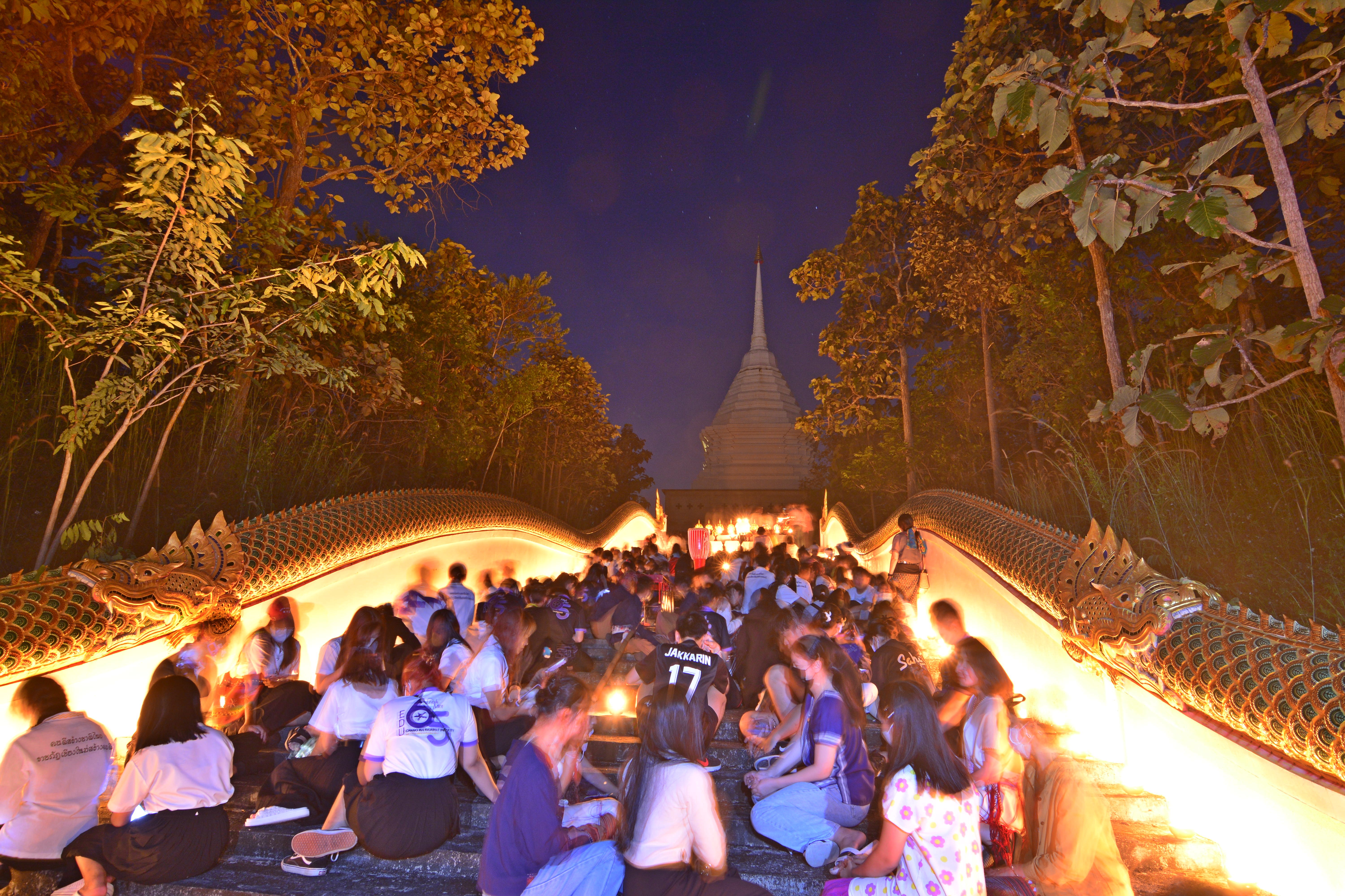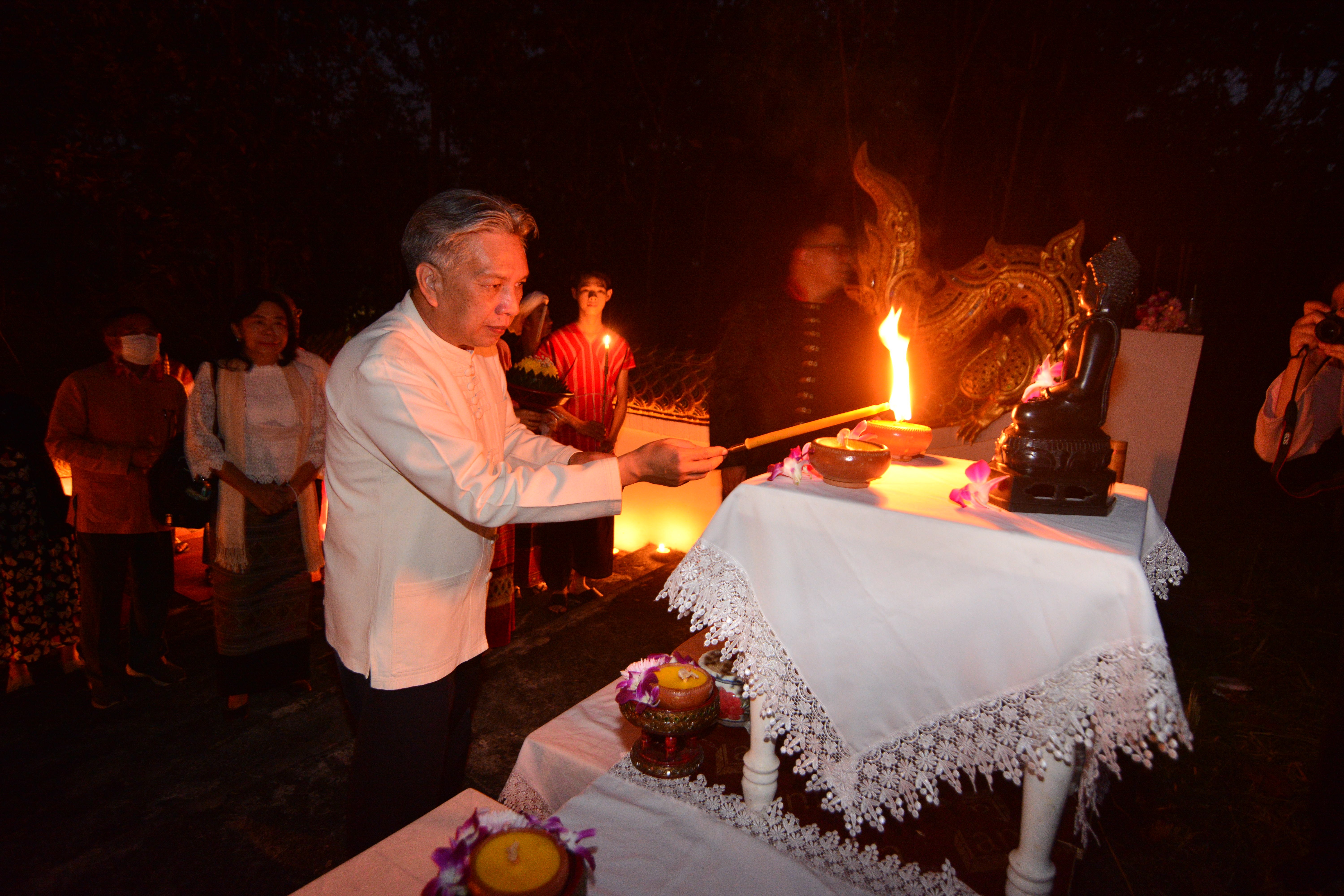 โดยมี รศ.ดร.ชาตรี มณีโกศล รักษาราชการแทนอธิการบดี มหาวิทยาลัยราชภัฏเชียงใหม่ เป็นในพิธีประธาน เริ่มขบวนแห่เครื่องสักการะล้านนา ฆ้อง กลอง ช่างฟ้อน นกกิ่งกะหร่า เคลื่อนขบวนพร้อม คณาจารย์ ผู้บริหาร นักศึกษา ขึ้นสู่บันไดพญานากจุดประทีปถวายบูชาองค์พระมหาเจดีย์ เป็นพุทบูชร่วมประกอบพิธี การฟ้อนผางประทีบ ชมจันทรุปราคาเต็มดวง เป็นปรากฏการณ์ที่ดวงจันทร์ทั้งดวงผ่านเข้าไปในเงามืดของโลก นอกจากนี้ ยังเกิดปรากฏการณ์ดวงจันทร์บังดาวยูเรนัสในเวลาเดียวกันอีกด้วย ณ มหาวิทยาลัยราชภัฏเชียงใหม่ ศูนย์แม่ริม ตำบลขี้เหล็ก อำเภอแม่ริม จังหวัดเชียงใหม่
