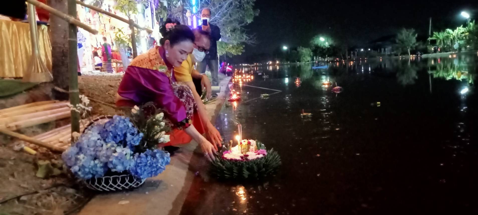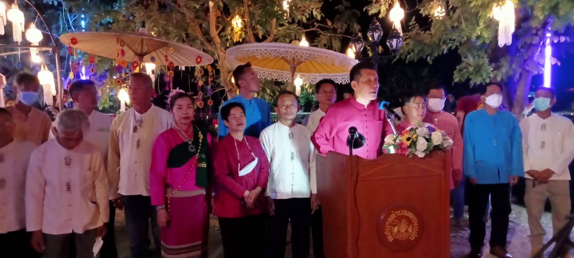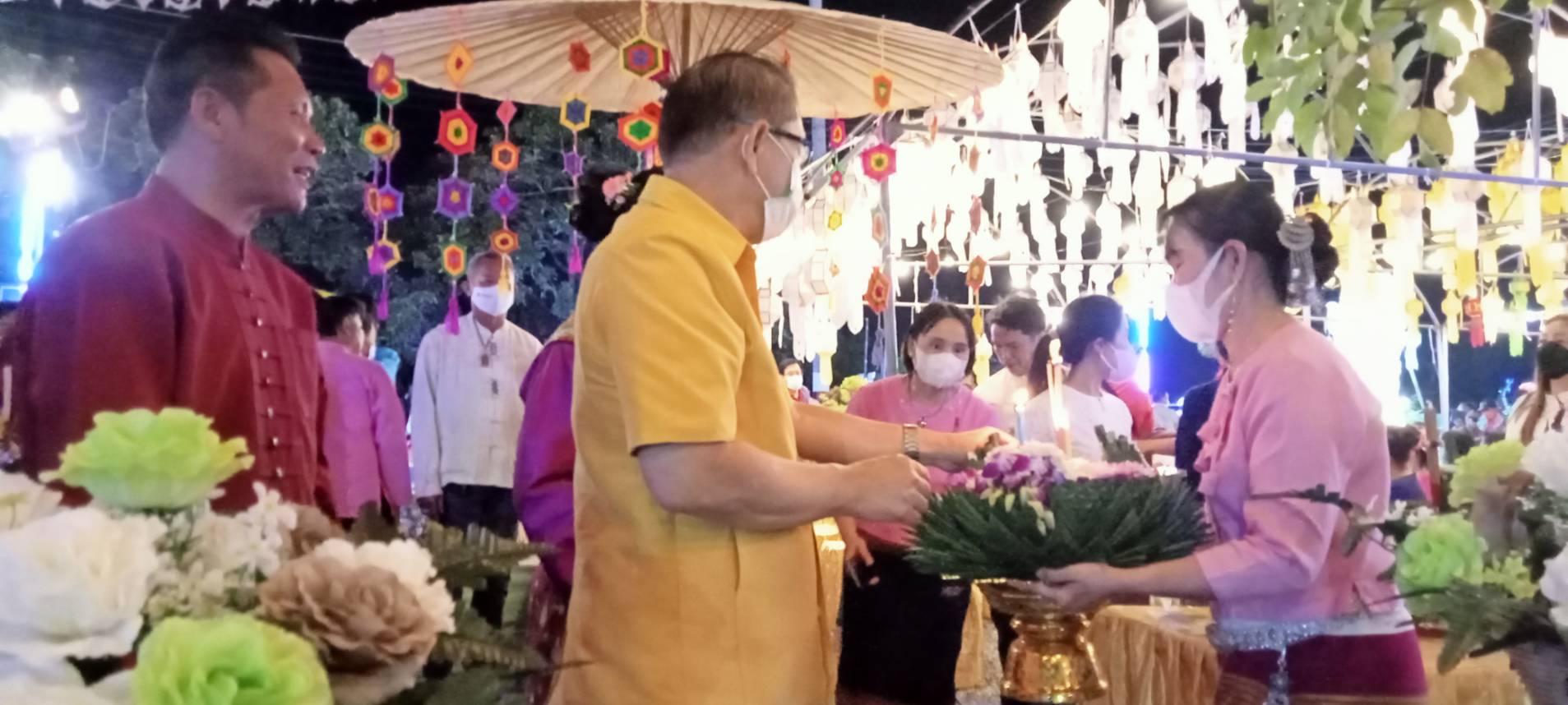 เมื่อช่วงค่ำวันที่ 8 พ.ย. 65 ที่ลานกิจกรรมแก้มลิง ต.หนองแฝก อ.สารภี จ.เชียงใหม่ ได้จัดงานสืบสานประเพณียี่เป็ง โดยมีนายเลอยศ พุทธชิโนรสสกุล นายอำเภอสารภี เป็นประธานเปิดงาน พร้อมด้วยนายอนุชา แสงสว่าง นายกเทศมนตรีตำบลหนองแฝก พร้อมทีมบริหาร สท. กำนัน ผู้ใหญ่บ้าน กลุ่มสตรีแม่บ้าน กลุ่มหนุ่มสาว และประชาชนหลั่งไหลมาร่วมกันนับพันคน