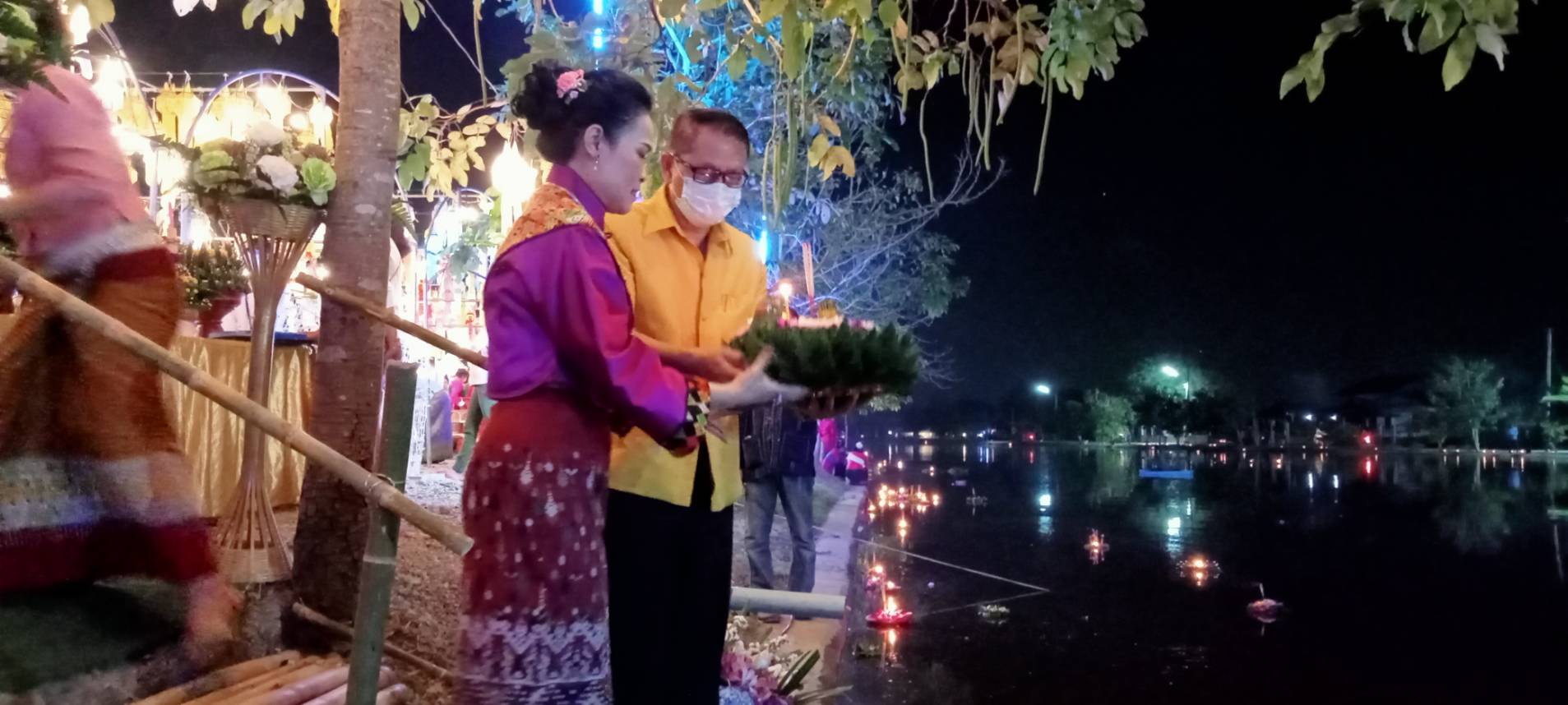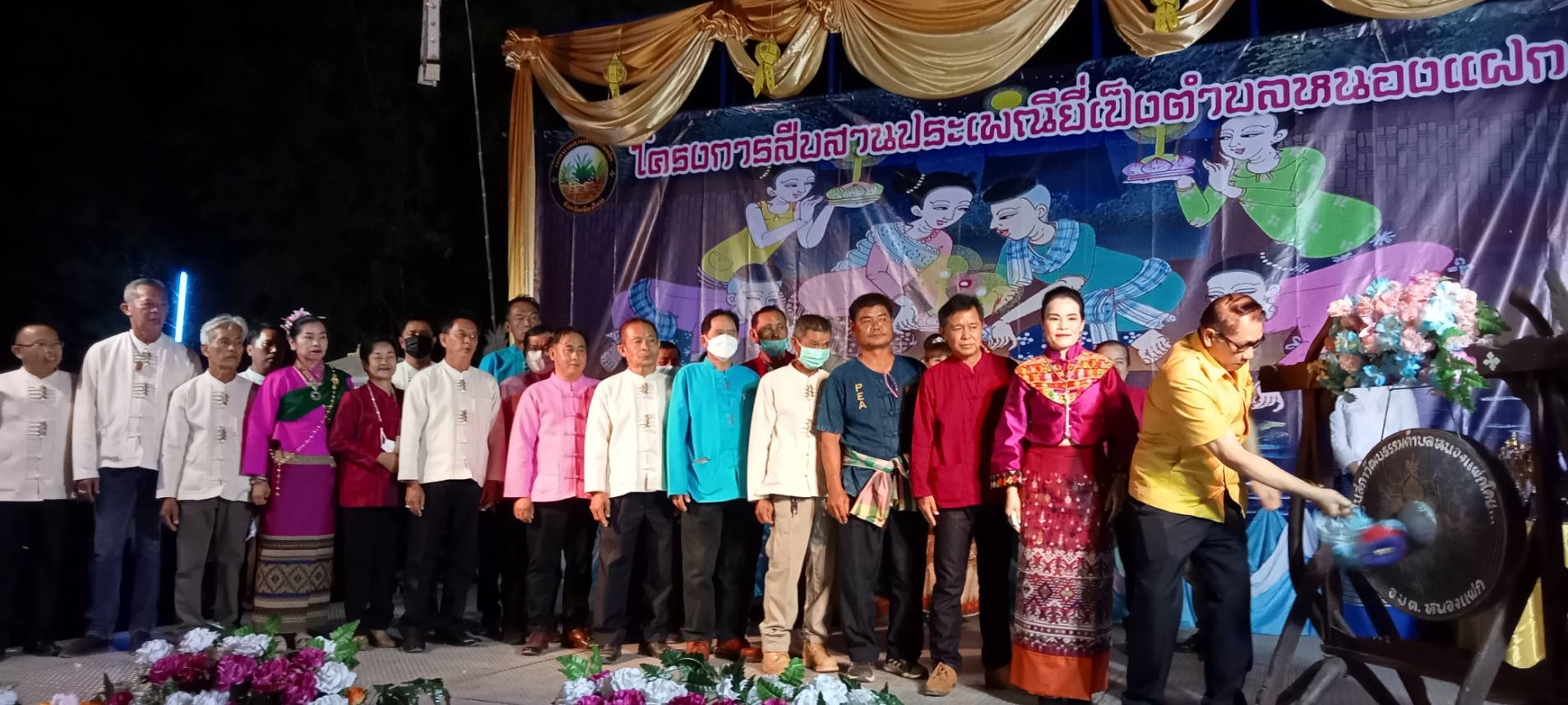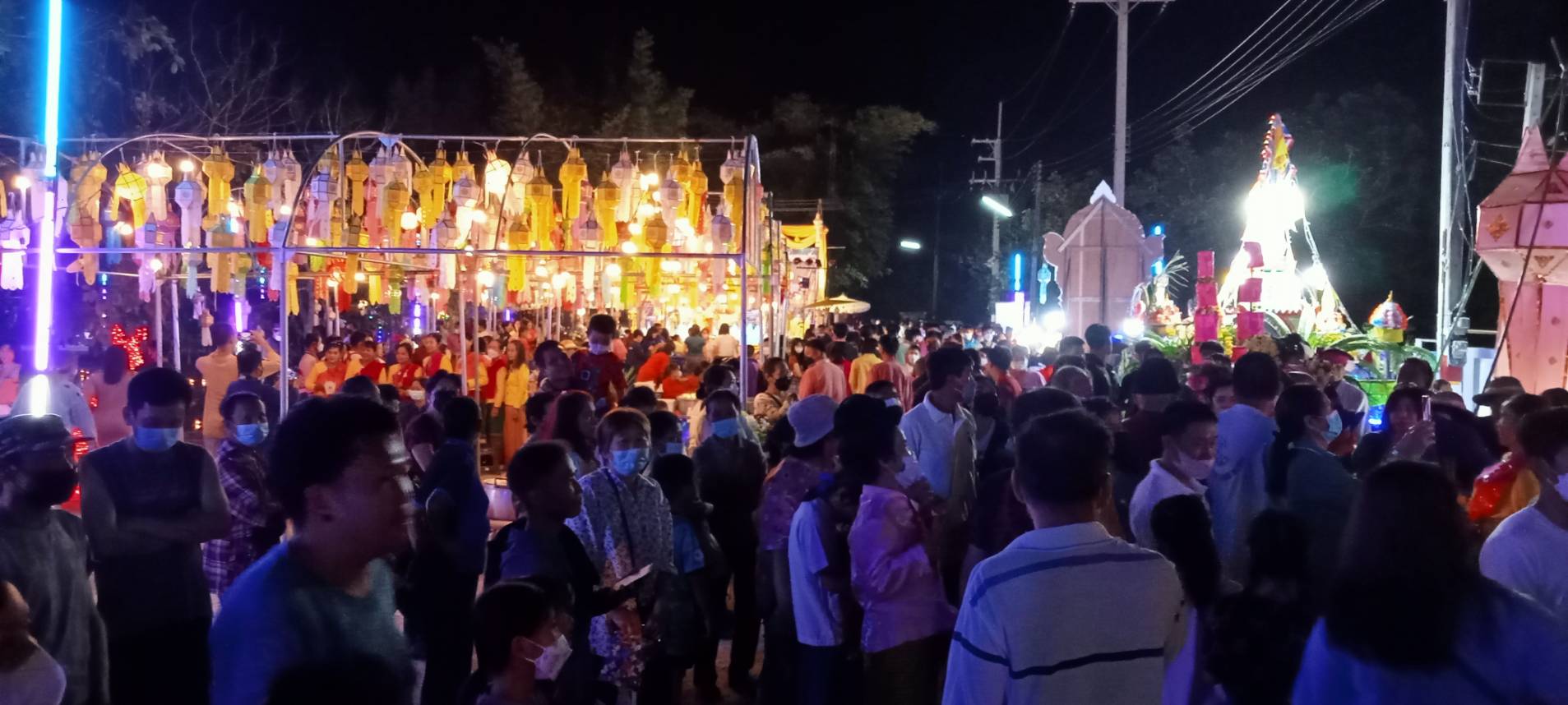 เมื่อช่วงค่ำวันที่ 8 พ.ย. 65 ที่ลานกิจกรรมแก้มลิง ต.หนองแฝก อ.สารภี จ.เชียงใหม่ ได้จัดงานสืบสานประเพณียี่เป็ง โดยมีนายเลอยศ พุทธชิโนรสสกุล นายอำเภอสารภี เป็นประธานเปิดงาน พร้อมด้วยนายอนุชา แสงสว่าง นายกเทศมนตรีตำบลหนองแฝก พร้อมทีมบริหาร สท. กำนัน ผู้ใหญ่บ้าน กลุ่มสตรีแม่บ้าน กลุ่มหนุ่มสาว และประชาชนหลั่งไหลมาร่วมกันนับพันคน
