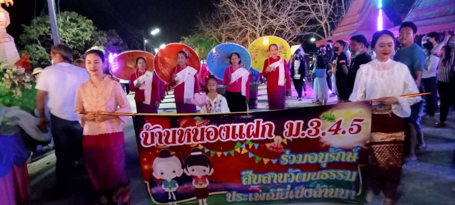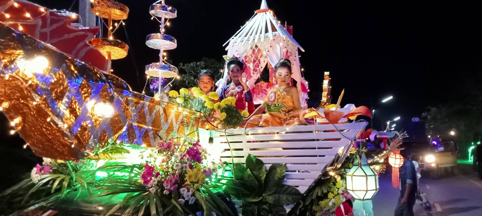 โดยมีขบวนแห่กระทงใหญ่พร้อมหนูน้อยนพมาศ ตกแต่งสวยงามพร้อมกับริ้วขบวนกลุ่มแม่บ้าน พ่อบ้าน กลุ่มสตรี หนุ่มสาว แต่งกายชุดพื้นเมือง แห่ตุง กระทง ตามแบบประเพณีล้านนา ท่ามกลางแสงสีเสียง สวยงดงาม