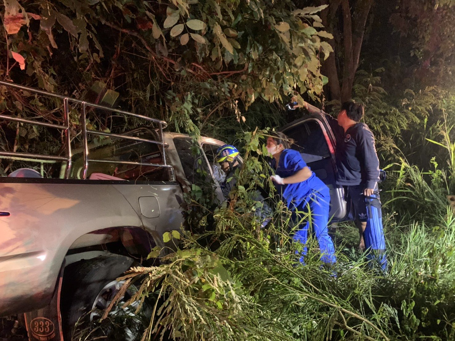 เมื่อเวลา 19.40 น. วันที่ 10 พ.ย.65 ทาง นายอินสอน อินถาอ้าย ผู้ใหญ่บ้าน “บ้านป่าไผ่แช่ช้าง” หมู่ที่ 8 ต.แช่ช้าง อ.สันกำแพง จ.เชียงใหม่ รับแจ้งว่ามีรถกระบะตกลงข้างทาง จึงรุดไปช่วยเหลือทันที ในที่เหตุเกิด เป็นถนนสายแม่ออน-ดอนจั่น หมู่ 1 ต.แช่ช้าง อ.สันกำแพง พอไปถึงที่เกิดเหตุพบมีคนขับรถเป็นชาย 1 รายวัยกลางคน ติดอยู่ด้านหน้ารถคนขับดังกล่าวอาการสาหัส ส่วนรถเป็นรถกระบะตอนเดียวมีโครงเหล็กด้านหลัง เป็นรถกระบะโตโยต้า สีเทา ทะเบียน ผข xxxx เชียงใหม่