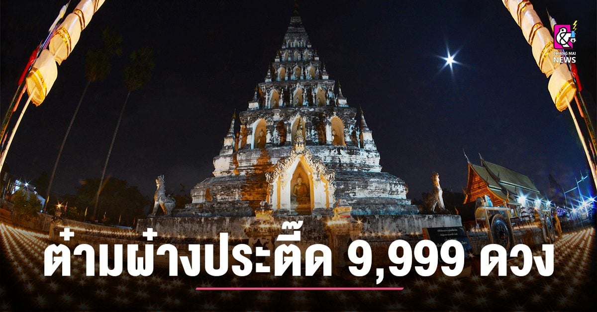 วัดเจดีย์เหลี่ยม จัดพิธี ต๋ามผ๋างประตี๊ด 9,999 ดวง บูชากู่คำหลวง อย่างงดงามอลังการยิ่งใหญ่