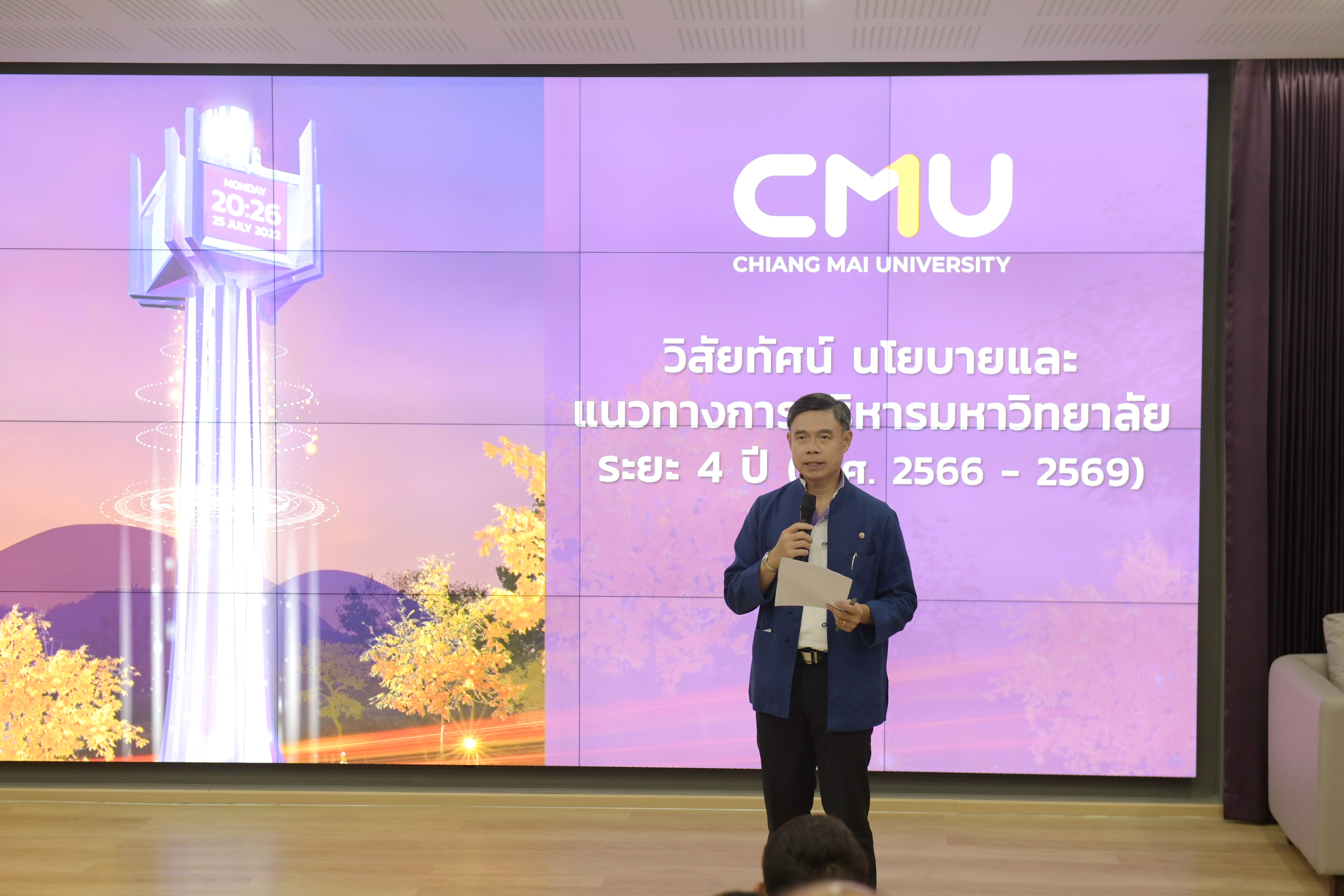 ศ.ดร.นพ.พงษ์รักษ์ ศรีบัณฑิตมงคล อธิการบดีมหาวิทยาลัยเชียงใหม่ พร้อมด้วยคณะผู้บริหาร พบปะผู้บริหารคณะมนุษยศาสตร์ ส่วนงานวิชาการภายในมหาวิทยาลัยเชียงใหม่ พร้อมนำเสนอวิสัยทัศน์ นโยบาย และแนวทางการบริหารงานมหาวิทยาลัยเชียงใหม่ ระยะ 4 ปี (พ.ศ.2566-2569) และแลกเปลี่ยนข้อคิดเห็นเชิงนโยบาย โดยมี ผศ.ดร.ระวี จันทร์ส่อง คณบดีคณะมนุษยศาสตร์และคณะผู้บริหาร หัวหน้าภาค เลขานุการคณะ หัวหน้างาน ร่วมรับฟังและแลกเปลี่ยนข้อคิดเห็น ณ ห้องประชุม HB5100 คณะมนุษยศาสตร์ เมื่อวันศุกร์ที่ 11 พฤศจิกายน 2565