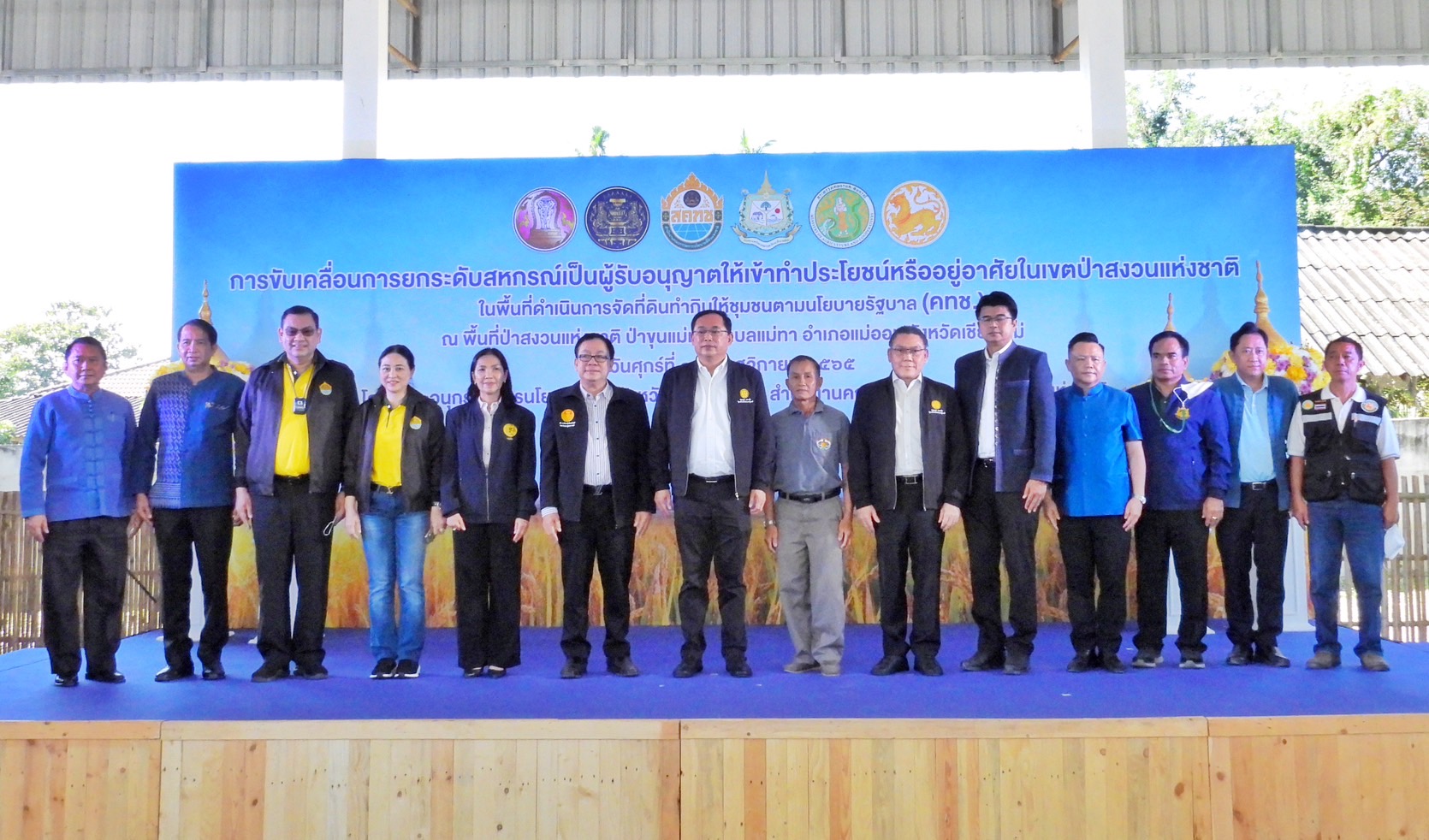 ความเป็นมา และผลการดำเนินงานการจัดที่ดินทำกินให้ชุมชนตามนโยบายรัฐบาล หรือ คทช. นั้นพื้นที่ป่าสงวนแห่งชาติ ป่าขุนแม่ทา ท้องที่ตำบลแม่ทา อำเภอแม่ออน จังหวัดเชียงใหม่ มีเนื้อที่ 7,282 ไร่ 1 งาน 23 ตารางวา ได้รับอนุญาตจากกรมป่าไม้แล้วตามหนังสืออนุญาต เล่มที่ 111 ฉบับที่ 02 ลงวันที่ 2 เมษายน 2558 มีราษฎร์ที่ได้รับอนุญาตให้เข้าทำประโยชน์หรืออยู่อาศัยภายในเขตป่าสงวนแห่งชาติ จำนวน 1,374 ราย รวม 2,693 แปลง พร้อมทั้งได้รับสมุดประจำตัวแล้ว จำนวน 2,086 เล่ม รวมถึงได้รับการส่งเสริมและพัฒนาอาชีพแล้วทั้ง 6 ด้าน และมีการจัดตั้งสหกรณ์การเกษตรยั่งยืนแม่ทา จำกัด เพื่อดำเนินธุรกิจสหกรณ์และในส่วนที่เกี่ยวข้อง