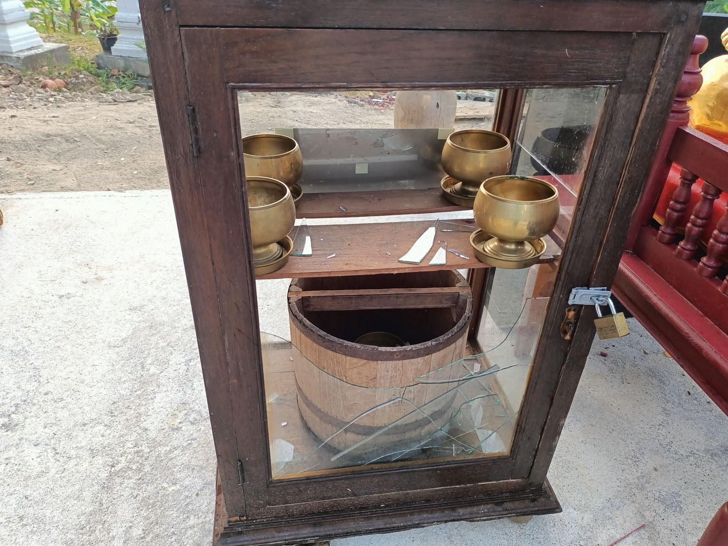 วัดร้างกำลังบูรณะปฏิสังขรณ์ ถูกทุบตู้รับบริจาคและขโมยเงินบริจาค ที่วัดบ้านถ้ำ อ.เชียงดาว จ.เชียงใหม่