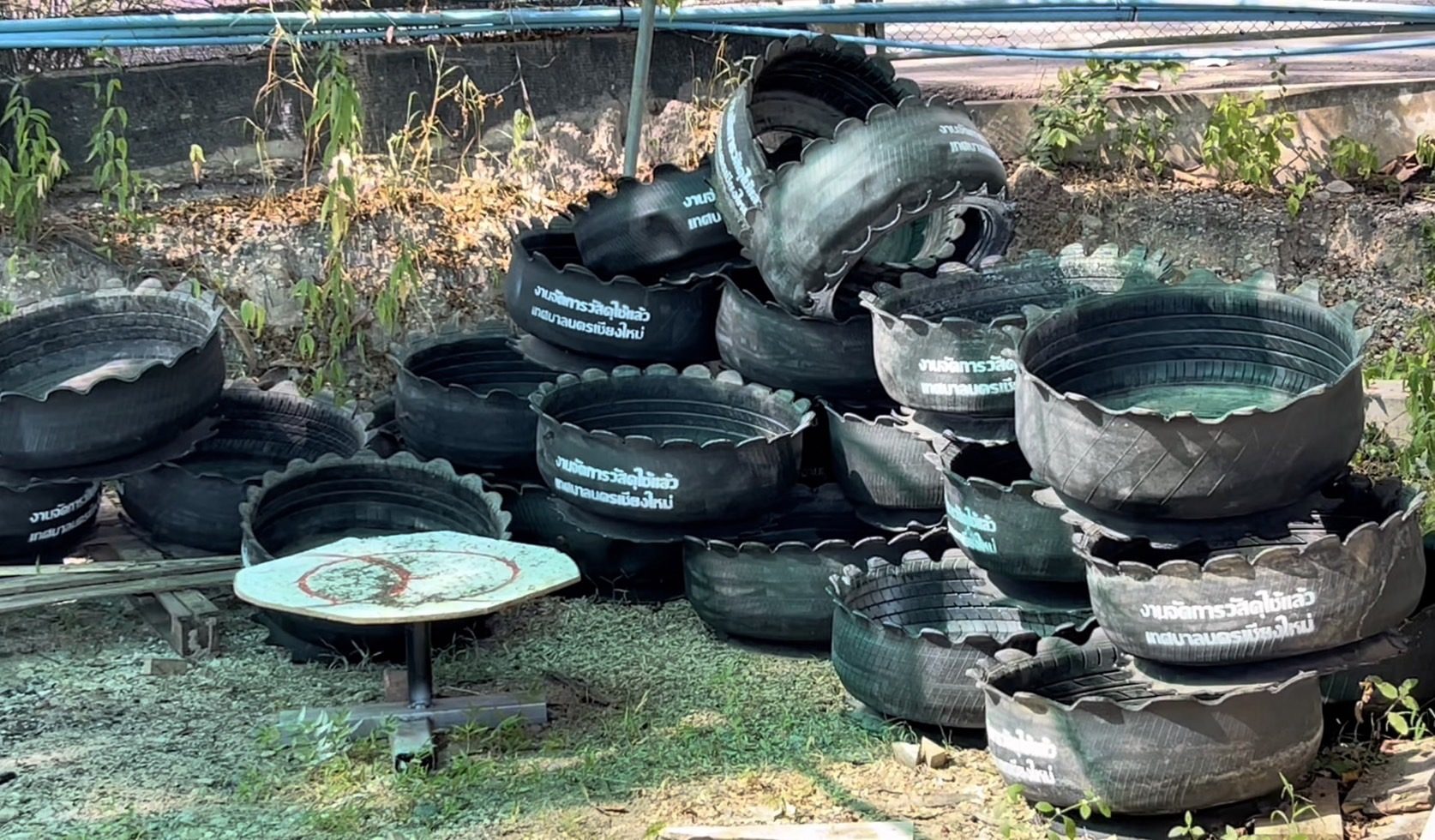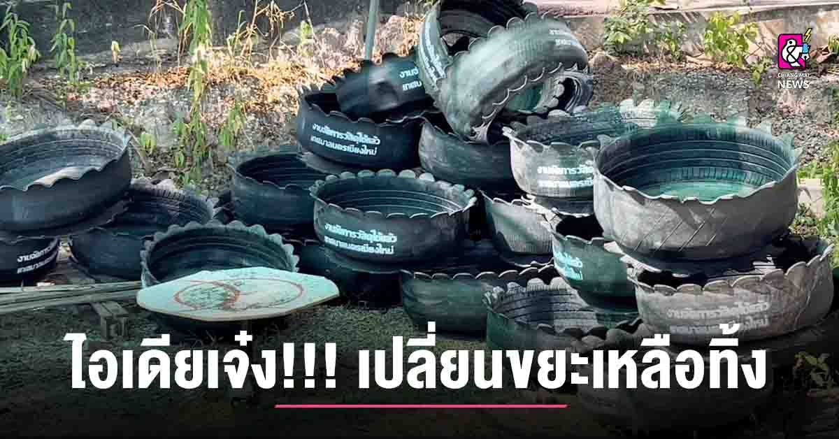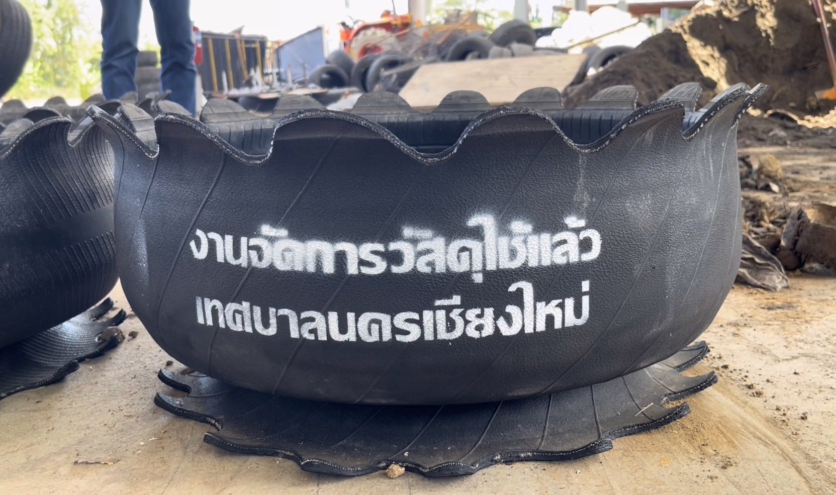 วันที่ 23 พ.ค.65 รายงานข่าวแจ้งว่า คนงานของสำนักการช่าง เทศบาลนครเชียงใหม่ กำลังขะมักเขม้นกับการตัดขอบยางรถยนต์เก่า ที่มีสะสมไว้จำนวนมากจากการเก็บขยะและมีผู้นำมามอบให้ โดยใช้เครื่องมือเลื่อยไฟฟ้าตัดลัดเลาะบริเวณขอบยางให้เป็นลวดลายโค้งไปมาสลับกัน ก่อนที่จะดึงแยกชิ้นออกจากกัน และนำยางไปกลับด้านด้วยเครื่องมืออีกครั้ง จากนั้นนำชิ้นส่วนทั้งสองมาประกอบติดกัน ใช้เวลาเพียงไม่กี่นาที จนกลายเป็นกระถางปลูกต้นไม้ ที่ผลิตมาจากยางรถยนต์เก่า ที่เป็นวัสดุเหลือทิ้งไร้ประโยชน์ สามารถกลับมาเป็นวัสดุที่ใช้ประโยชน์ได้ดี