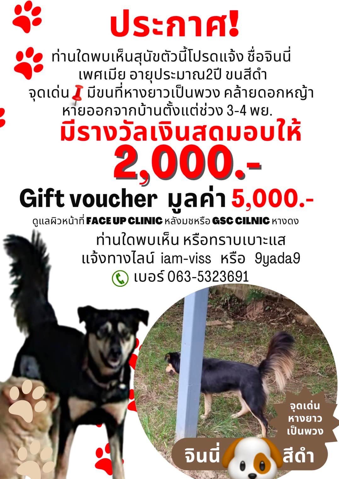 ตามหาน้องจินนี่ สุนัขเพศเมียสีดำ อายุ 2 ปี