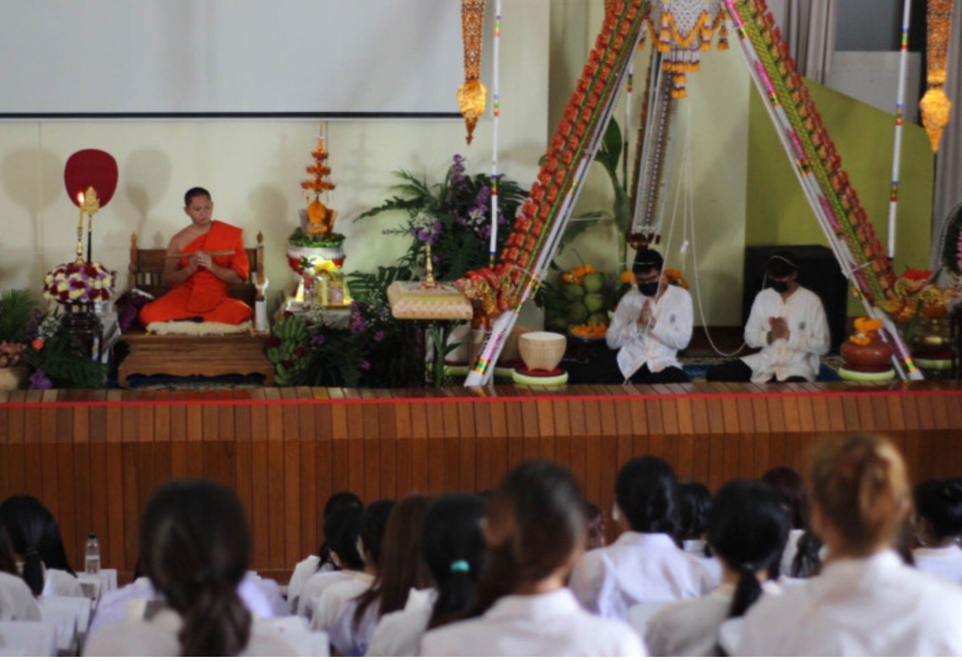 เมื่อวันที่ 26 พฤศจิกายน 2565 ผู้ช่วยศาสตราจารย์ ดร.ชไมมน ศรีสุรักษ์ รองคณบดี คณะครุศาสตร์ มหาวิทยาลัยราชภัฏเชียงใหม่ ให้เกียรติเป็นประธานจุดธูปเทียนบูชาพระรัตนตรัย จุดผางประทีปส่องธรรม และกล่าวเปิดกิจกรรมตั้งธัมม์หลวง (เทศน์มหาชาติ) ร่วมใจสายใยสามัคคี ประเพณีครุศาสตร์ ในโครงการ “เทศน์ร่วมใจ สานใจสายใยผูกพัน” เพื่อสร้างความตระหนักถึงคุณค่าและความสำคัญของประเพณีเทศน์มหาชาติ อนุรักษ์สืบสานประเพณีอันดีงาม และส่งเสริมกิจกรรม 1 ครูดี 1 ศิลปวัฒนธรรม ให้แก่นักศึกษาคณะครุศาสตร์ ซึ่งจัดโครงการอย่างต่อเนื่องโดยสโมสรนักศึกษาคณะครุศาสตร์ ร่วมกับคณะครุศาสตร์ มหาวิทยาลัยราชภัฏเชียงใหม่