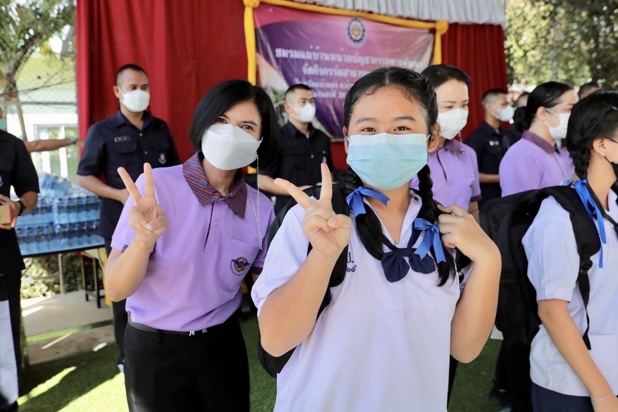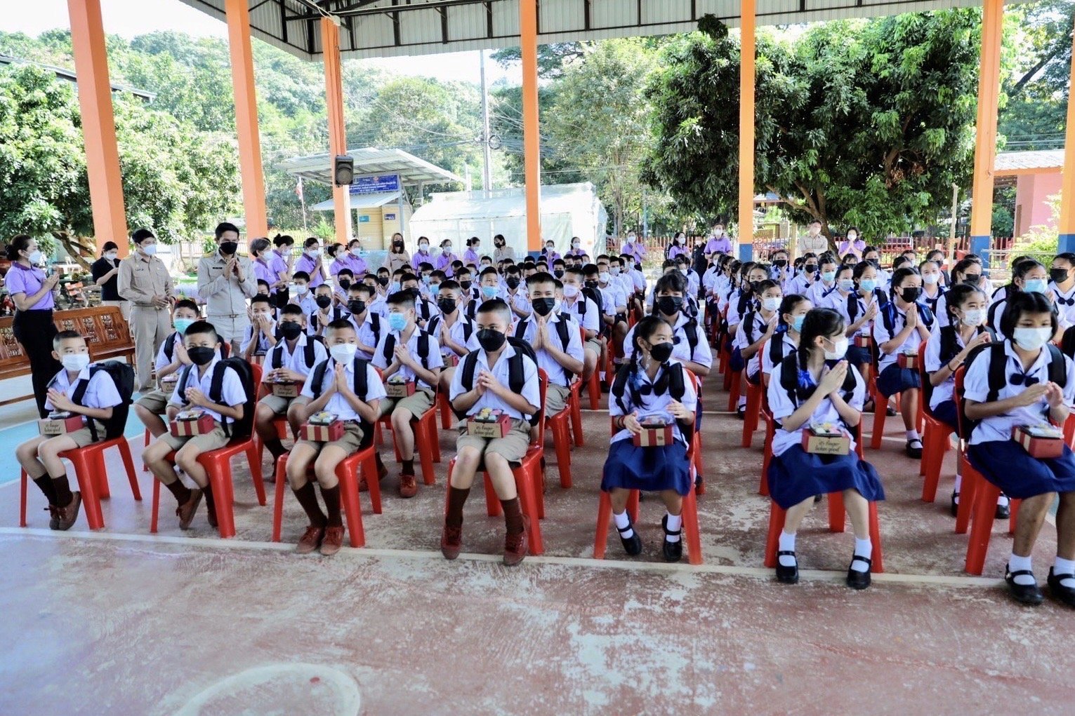 – น้ำดื่มสะอาด บก.ทท. จำนวน 500 ขวด ตลอดจนมอบอาหารกลางวัน (ไก่ทอด KFC ชุด BOX Set 2 จำนวน 210 ชุด) ให้กับนักเรียน พร้อมทั้งพบปะพูดคุยกับน้องๆ นักเรียน