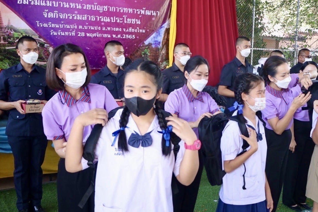 ชมรมแม่บ้าน นทพ. จัดกิจกรรมสาธารณประโยชน์ มอบผ้าห่มกันหนาว บก.ทท. ให้กับนักเรียน พื้นที่ จ.เชียงใหม่