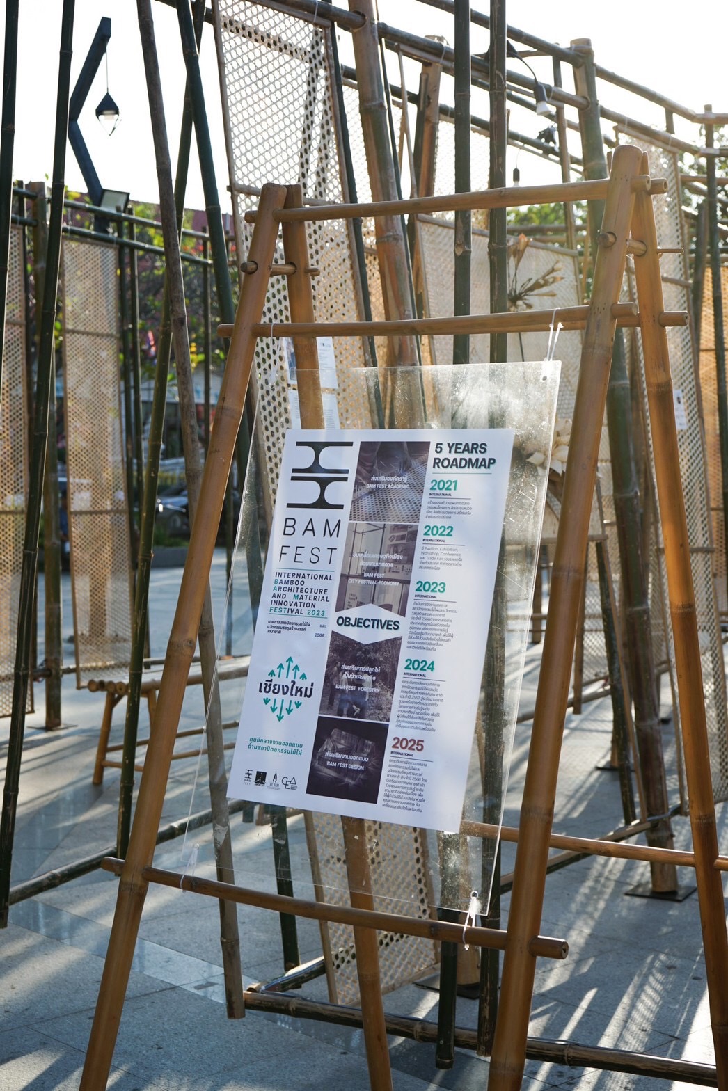 ดร.จุฑา ธาราไชย ผู้อำนวยการสำนักส่งเสริมการจัดประชุมและนิทรรศการ ภาคเหนือ เปิดเผยว่า สำนักงานส่งเสริมการจัดประชุมและนิทรรศการ (องค์การมหาชน) – ทีเส็บ หรือ สสปน. ได้ให้การสนับสนุนคณะสถาปัตยกรรมศาสตร์ มหาวิทยาลัยเชียงใหม่ ในการดำเนินโครงการเทศกาลสถาปัตยกรรมไม้ไผ่และวัสดุสร้างสรรค์นานาชาติ (International Bamboo Architect and Material Innovation Festival – BAM Fest) ระยะ 5 ปี เริ่มตั้งแต่การศึกษาแนวทางร่วมกับผู้มีส่วนได้ส่วนเสียด้วยการจัดกิจกรรมประชุมเครือข่ายเชื่อมโยงต้นน้ำ กลางน้ำ และปลายน้ำ เพื่อวางแผนเสนอแนวทางในการสร้างงานเทศกาลที่ก่อให้เกิดผลลัพธ์ทางเศรษฐกิจ กระจายรายได้แก่ทุกภาคส่วน มาตั้งแต่ปี 2564 โดยตั้งเป้าหมายปลายทางอยู่ที่การสร้างให้ BAM Fest เป็นงานเทศกาลของท้องถิ่นที่พัฒนาสู่ระดับชาติและระดับนานาชาติ ส่งเสริมการท่องเที่ยว ขับเคลื่อนเศรษฐกิจด้วยงานเทศกาล ให้เชียงใหม่เป็นจุดหมายปลายทางของการท่องเที่ยวเชิงสร้างสรรค์ในอนาคต