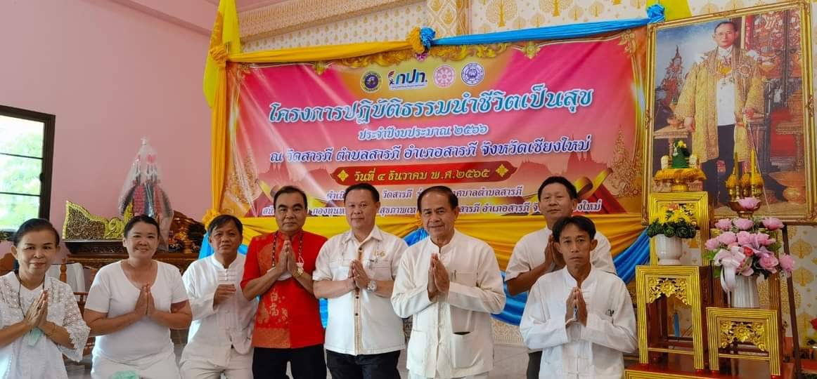 เช้าวันนี้ (4 ธันวาคม 2565) เวลา 08.00 น. ผู้บริหารเทศบาลตำบลสารภี นำโดย นายวรเดช เต็มดี นายกเทศมนตรีฯ พร้อมด้วยสมาชิกสภาเทศบาลฯ นำโดย นายชูชัย ใบแสง รองประธานสภาเทศบาลฯ ได้เข้าร่วมพิธีเปิด “โครงการอบรมปฏิบัติธรรมนำชีวิตเป็นสุข” ณ ศาลา ปฏิบัติธรรม “สัทธา นิวิฐพินิจธรรมานุสรน์” วัดสารภี หมู่ที่ 2 ตำบลสารภี จัดโดย วัดสารภีร่วมกับเทศบาลตำบลสารภี ได้รับการสนับสนุนงบประมาณจากกองทุนหลักประกันสุขภาพ เทศบาลตำบลสารภี วัตถุประสงค์เพื่อสร้างความเป็นปึกแผ่น หนักแน่นของศรัทธาประชาชนที่ยังมีความรัก ความห่วงแหนต่อพระพุทธศาสนา พร้อมที่จะประพฤติปฏิบัติตามหลักของบุญกิริยาวัตถุ 3 คือ ทาน ศีล ภาวนา พัฒนาให้เกิดศีล สมาธิ ปัญญาตามหลักไตรสิกขา และเป็นพุทธบริษัท 4 ที่เปี่ยมล้นด้วยความรู้ทั้งคดีโลกและคดีธรรม และในโอกาสน้อมประพฤติปฏิบัติธรรมถวายเป็นพระราชกุศล เนื่องในวันคล้ายวันพระราชสมภพ พระบาทสมเด็จพระบรมชนกาธิเบศร มหาภูมิพลอดุลยเดชมหาราช บรมนาถบพิตร วันชาติ และวันพ่อแห่งชาติวันที่ 5 ธันวาคม พุทธศักราช 2565 ด้วย