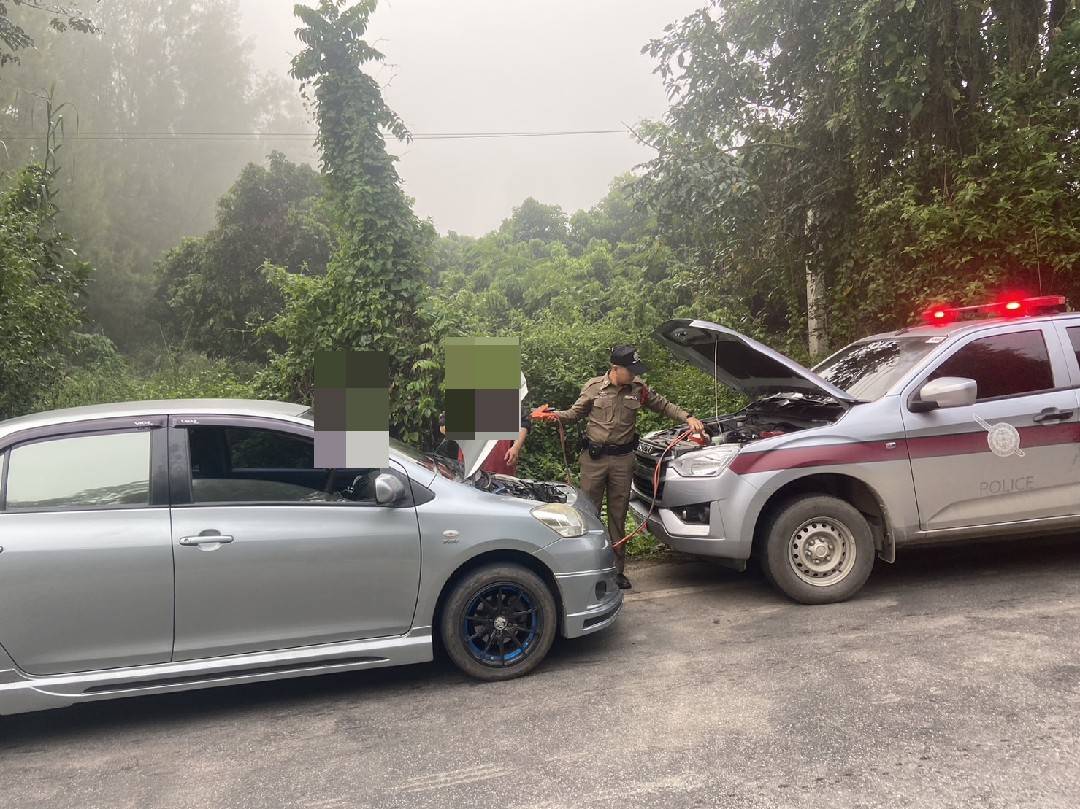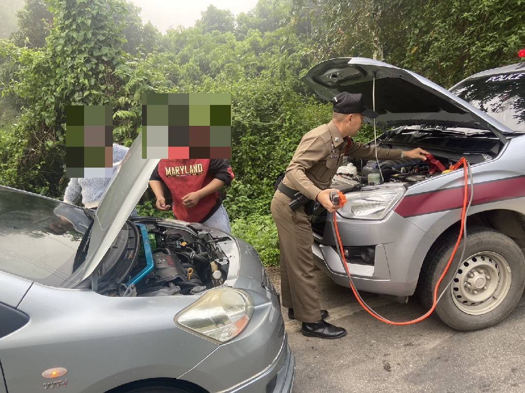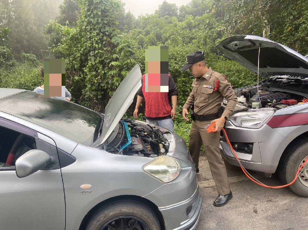 สภ.โหล่งขอด จ.เชียงใหม่ ช่วยเหลือ รถยนต์ประชาชนขัดข้องแบตเตอรี่หมด