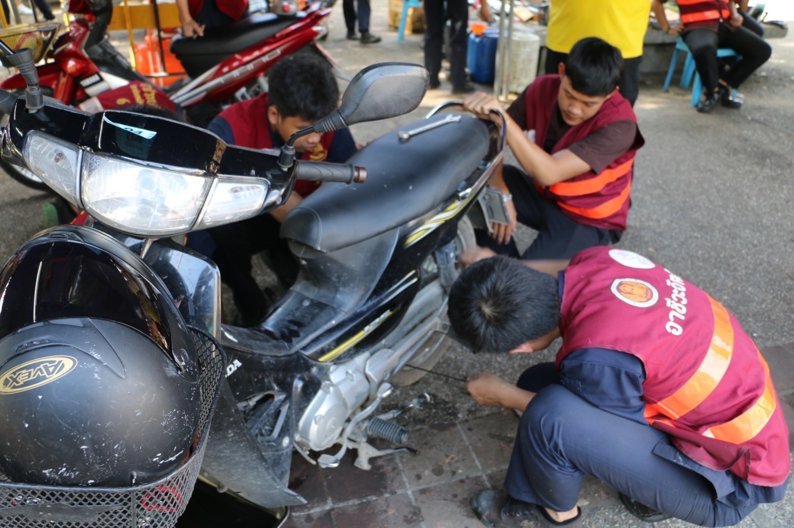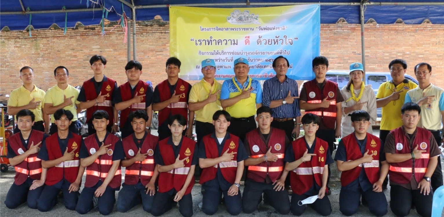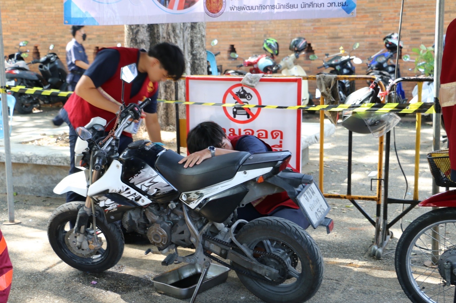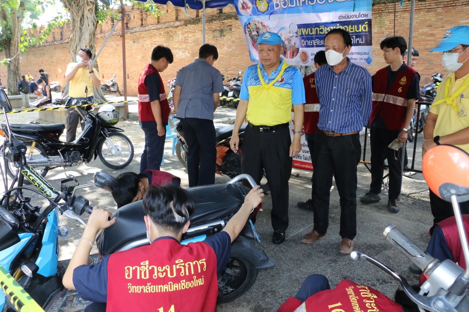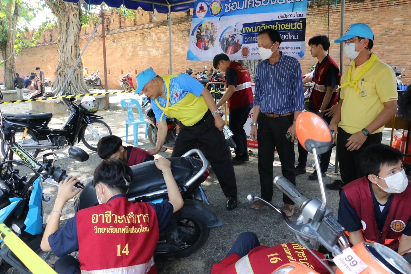 วันที่ 4 ธันวาคม 2565 นายวัชรพงศ์ ฝั้นติ๊บ ผู้อำนวยการวิทยาลัยเทคนิคเชียงใหม่ ประธานกรรมการอาชีวศึกษาจังหวัดเชียงใหม่ พร้อมทั้ง รองผู้อำนวยการ นายบุญรัตน์ สว่างแจ้ง ได้เข้าร่วมและลงพื้นที่ตรวจเยี่ยมการจัดกิจกรรมของงานโครงการพิเศษ และ แผนกวิชาช่างยนต์ วิทยาลัยเทคนิคเชียงใหม่ ในกิจกรรมจิตอาสาพัฒนาชุมชน เนื่องในโอกาสคล้ายวันพระราชสมภพของ สมเด็จพระบรมชนกาธิเบศรฯ “วันพ่อแห่งชาติ” 5 ธันวาคม 2565 ระหว่างวันที่ 3-5 ธันวาคม 2565 โดยมีการสอบถามถึงจำนวนผู้ใช้บริการ และให้กำลังครูและนักเรียน นักศึกษาที่ศูนย์อำนวยการเพื่อให้บริการชุมชนในการเปลี่ยนถ่ายน้ำมันเครื่องรถจักรยานยนต์ และตรวจเช็คสภาพรถจักรยานยนต์ ณ ลานข่วงประตูท่าแพ จังหวัดเชียงใหม่