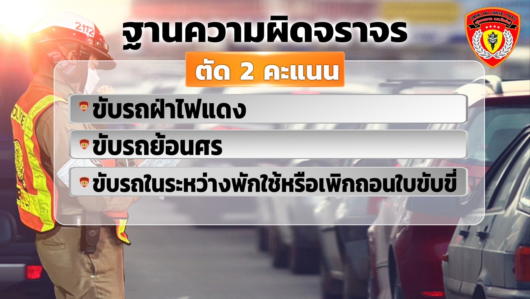 - ตัด 2 คะแนน เช่น ฝ่าฝืนสัญญาณไฟจราจร (ฝ่าไฟแดง)