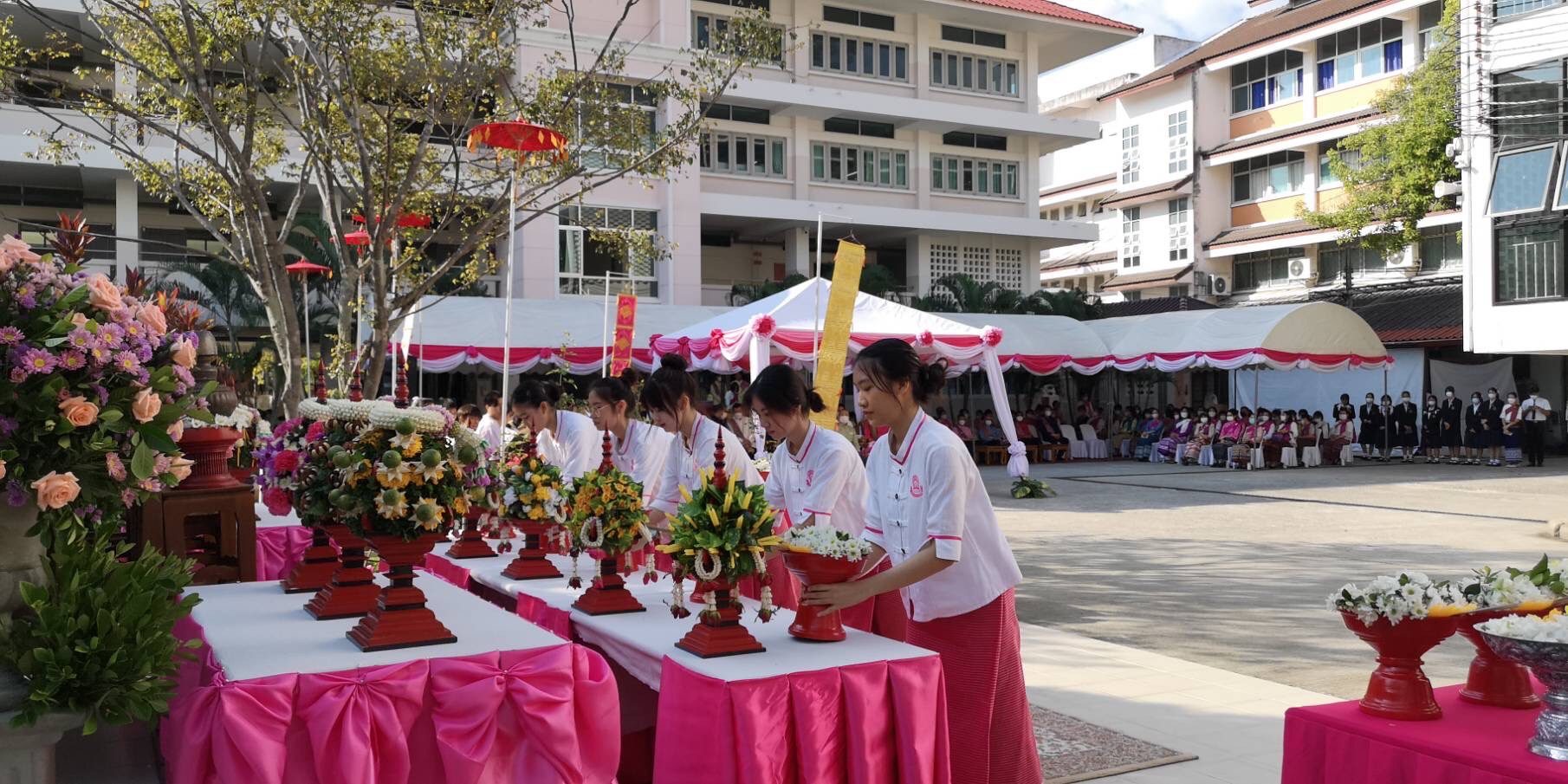 พลเอก หม่อมเจ้า เฉลิมศึก ยุคล ประธานในพิธี ทรงจุดธูปเทียน เครื่องทองน้อย ทรงวางพวงมาลัย ขันหมากเมือง น้ำต้น สำรับคาว-หวาน เครื่องสักการะล้านนาชุดใหญ่ ผู้บริหารโรงเรียน ถวายพวงมาลัย เครื่องสักการะ หมากสุ่ม หมากเบ็ง ต้นดอก ต้นผึ้ง ต้นเทียน ภาคีเครือข่ายฯ ถวายขันดอกเมือง ผู้แทนคณะครูเกษียณอายุราชการ ประจำปี พ.ศ. 2566 ถวายมาลัยดอกไม้หอม ประธานสภานักเรียนและประธานคณะสี ถวายมาลัยดอกไม้หอม ประธานในพิธี มีดำรัสถวายสดุดีพระคุณูปการเจ้าดารารัศมี พระราชชายา เนื่องในวันเจ้าดารารัศมีรำลึก การแสดงฟ้อนถวายสักการะ ในท้ายพิธี พลเอก หม่อมเจ้าเฉลิมศึก ยุคล ฉายรูปร่วมกับคณะผู้บริหารโรงเรียน ภาคีเครือข่ายฯ ผู้แทนคณะครูเกษียณอายุราชการ นักแสดงฟ้อนถวายสักการะ เฝ้ารับประทานพระกรุณา