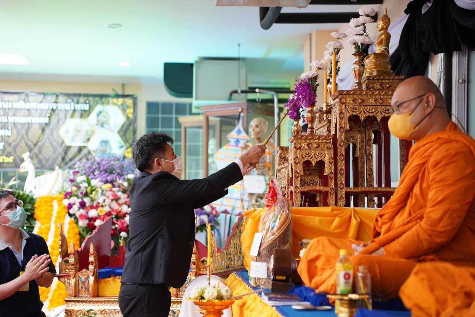 รศ.นพ.ณัฐพงศ์ โฆษชุณหนันท์ รองคณบดีคณะแพทยศาสตร์ มช. เป็นประธานในพิธีทำบุญอุทิศส่วนกุศลฯ อาจารย์ใหญ่ ประจำปี 2565 คณะแพทยศาสตร์ มช. โดยมี ผศ.นพ.นเรนทร์ โชติรสนิรมิต ผู้อำนวยการโรงพยาบาลมหาราชนครเชียงใหม่ , ผศ.ดร.อริสา บอนเนซซ์ และรศ.ดร.พญ.จิราภรณ์ โกรานา รองคณบดีฯ , ศ.(เชี่ยวชาญพิเศษ) พญ.ผาสุก มหรรฆานุเคราะห์ หัวหน้าภาควิชากายวิภาคศาสตร์ พร้อมคณาจารย์ นักศึกษา คณะแพทยศาสตร์ มช. เข้าร่วมพิธี ในส่วนญาติของอาจารย์ใหญ่ ร่วมชมการถ่ายทอดสดพิธีจากทางบ้าน และส่วนหนึ่งรับชมผ่านการถ่ายทอดฯ จากห้องประชุมชั้น 2 อาคารเรียนและปฏิบัติการ 50 ปี คณะแพทยศาสตร์ มช. เมื่อวันที่ 9 ธันวาคม 2565 ณ ภาควิชากายวิภาคศาสตร์ คณะแพทยศาสตร์ มช.