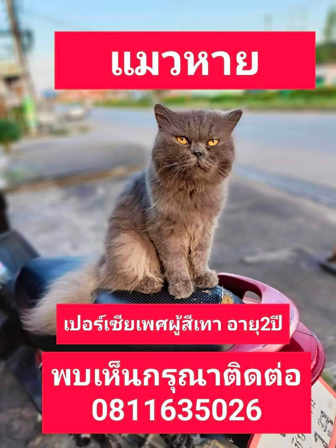 แมวเปอร์เซีย เพศผู้ สีเทาเข้ม อายุ 2 ปี ใส่ปลอกคอสีเงิน