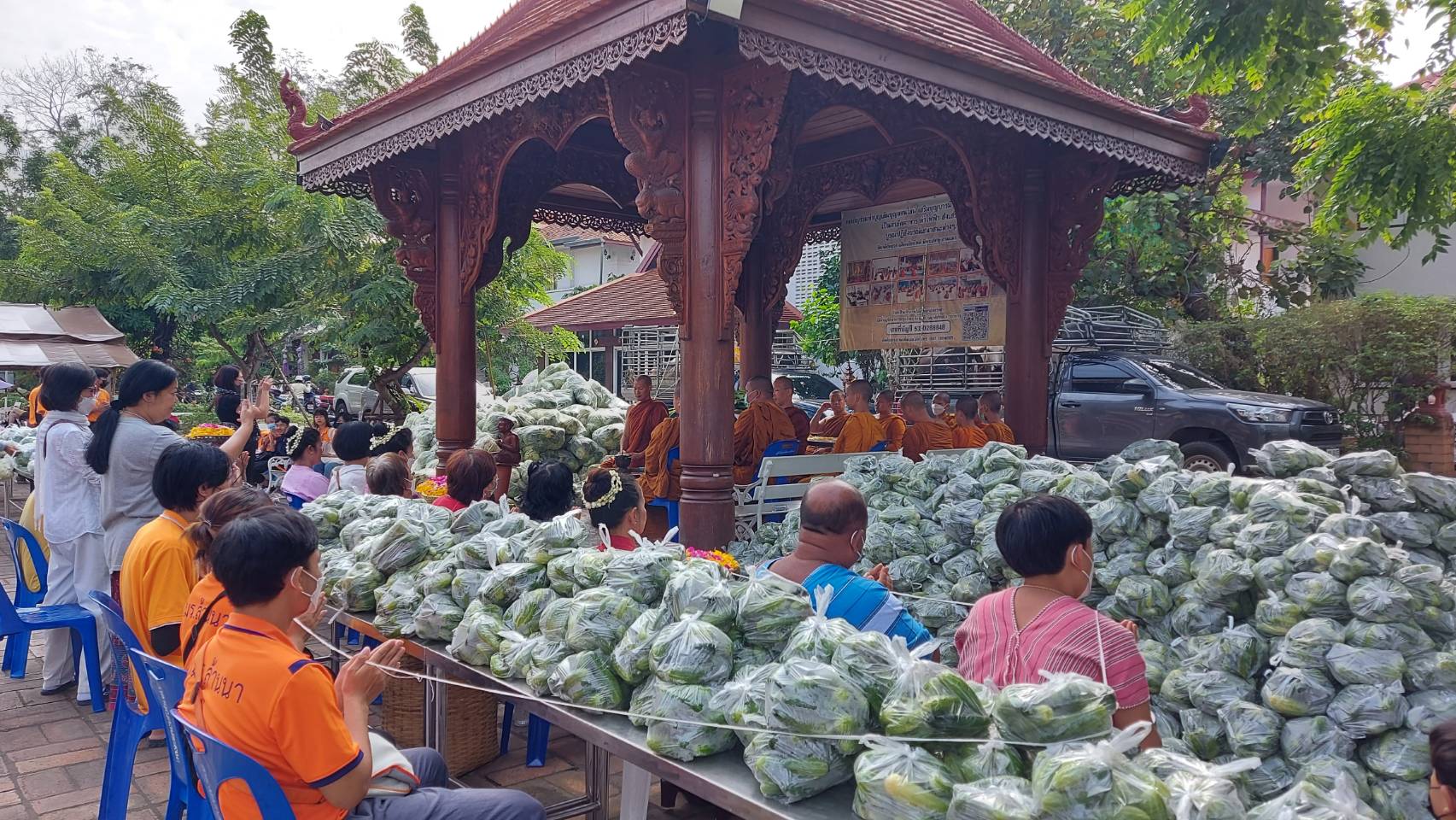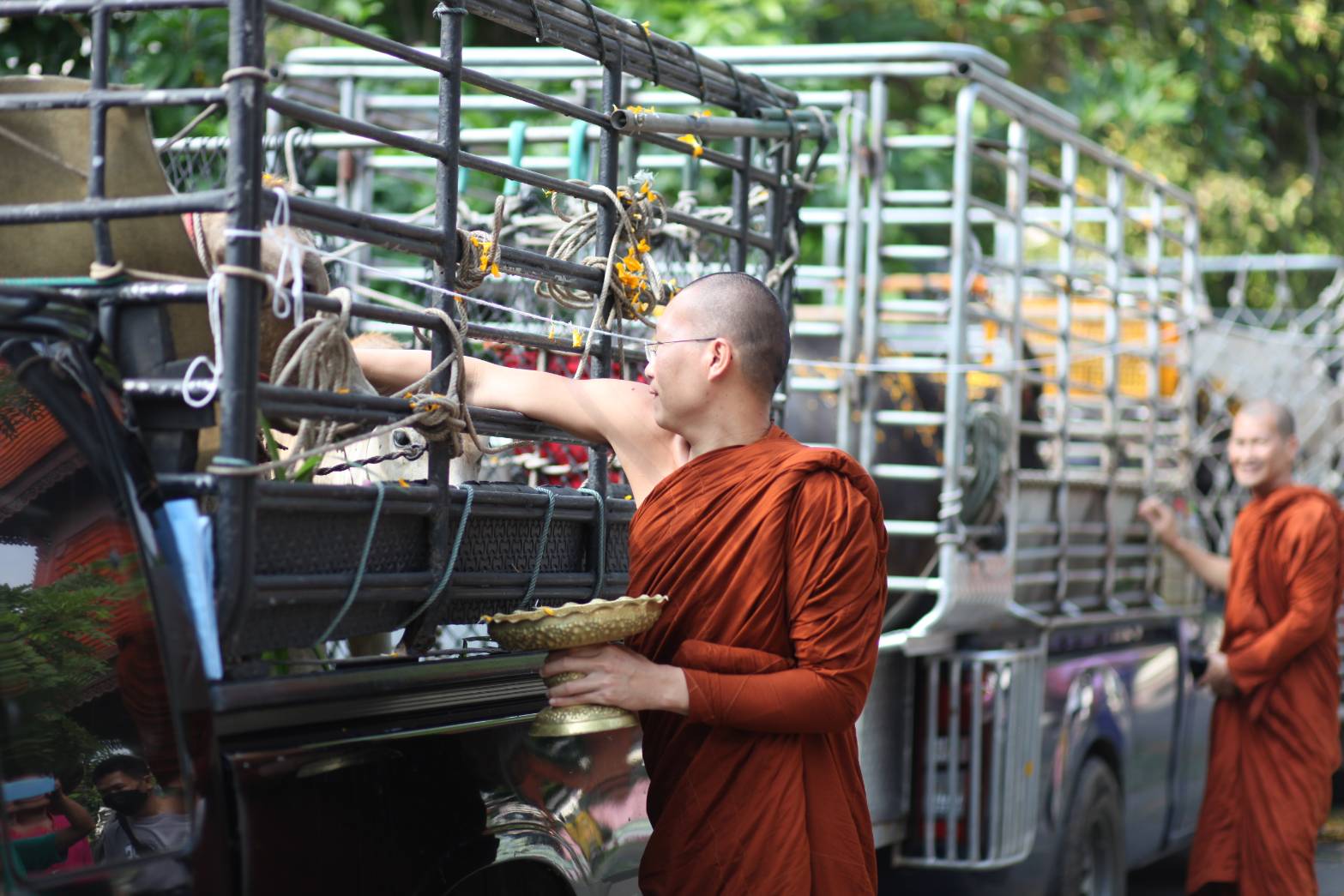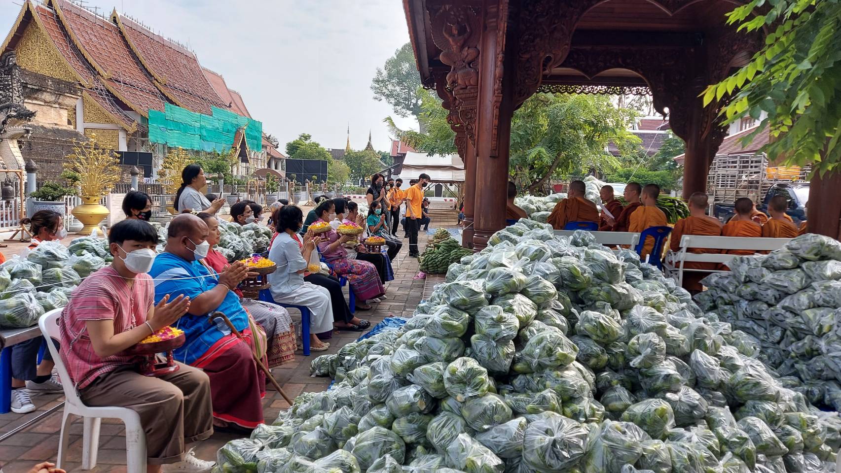 พระครูอ๊อด วัดเจดีย์หลวงเชียงใหม่ แจกผัก 30 ตัน ทำบุญวันเกิด ถวายสังฆทาน 9 ชุด และ ถวายสามเณร ไถ่ชีวิตวัวควาย 11 ตัว