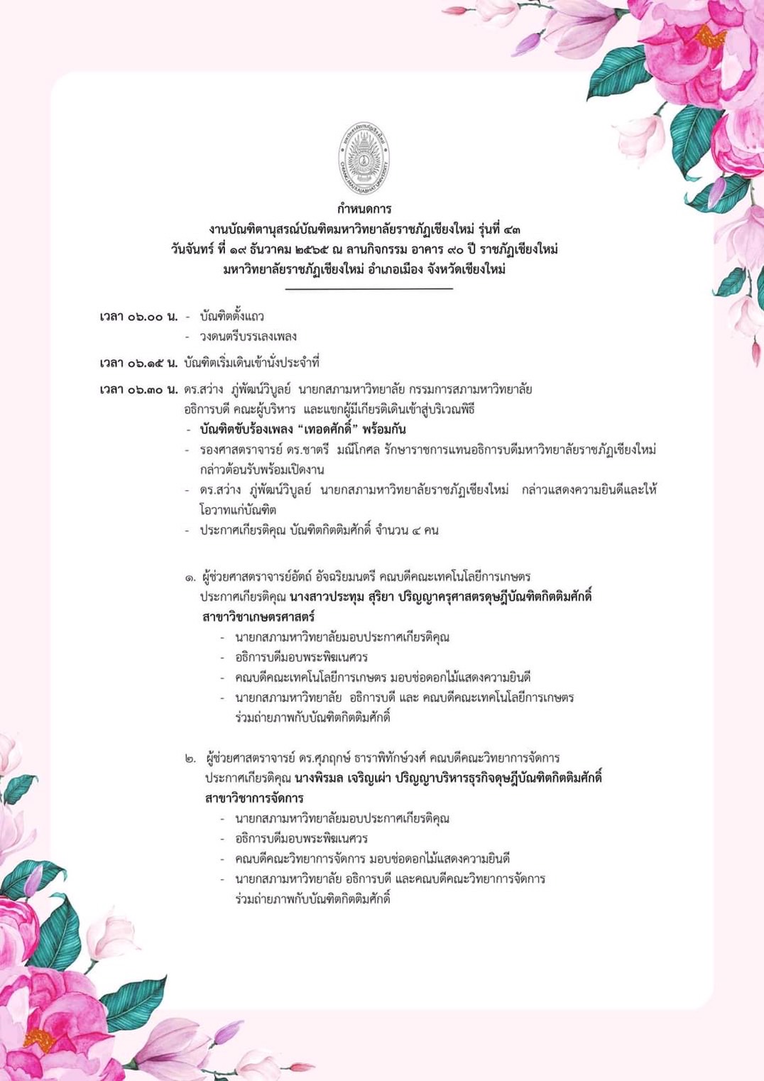 มหาวิทยาลัยราชภัฏเชียงใหม่ จัดงาน ”บัณฑิตานุสรณ์” เพื่อแสดงความยินดีแก่บัณฑิต รุ่นที่ 43