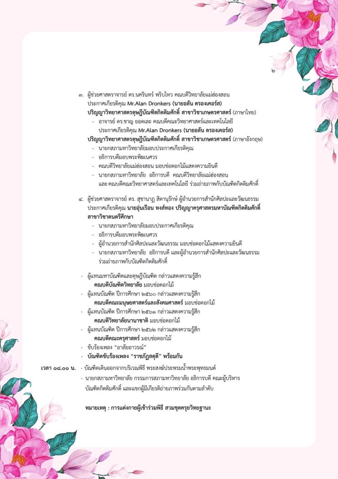 พร้อมกันนี้ขอเชิญร่วมแสดงความยินดีกับผู้สำเร็จการศึกษามหาวิทยาลัยราชภัฏเชียงใหม่และ สามารถติดตามข้อมูลข่าวสารเพิ่มเติมได้ที่ Facebook Fanpage : พิธีพระราชทานปริญญาบัตร มหาวิทยาลัยราชภัฏเชียงใหม่