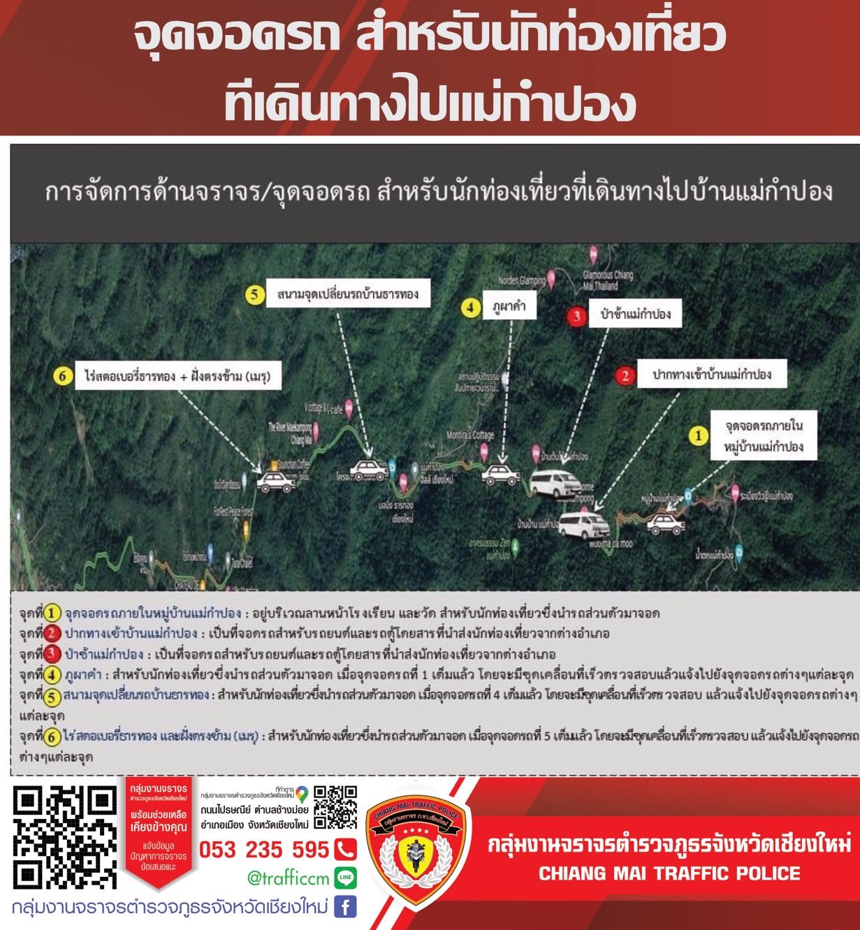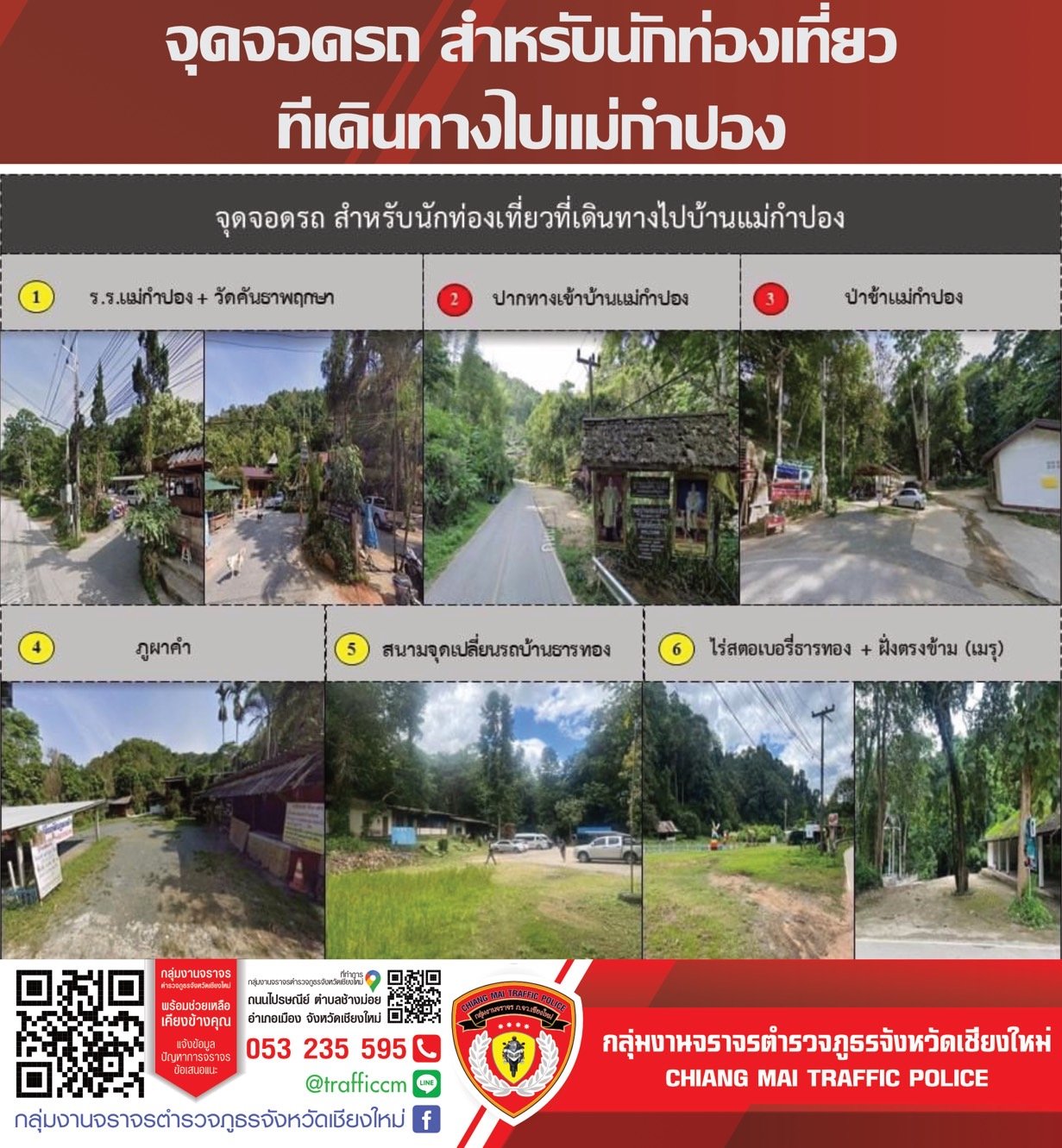 จราจรเชียงใหม่ รับการประสานจากสภ.แม่ออน ประชาสัมพันธ์ การจัดการด้านการจราจร/จุดจอดรถ สำหรับนักท่องเที่ยวที่เดินทางไปบ้านแม่กำปอง
