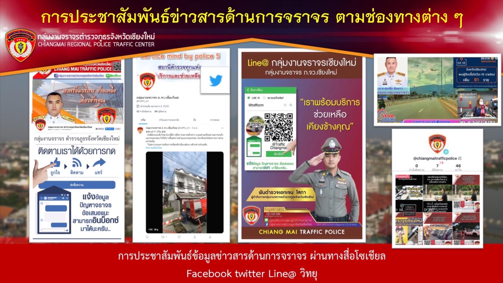 ติดตามข่าวสารสภาพการจราจรจากเพจกลุ่มงานจราจร ภ.จ.เชียงใหม่ และแอปพลิเคชั่นไลน์ @Trafficcm หรือสอบถามข้อมูลเพิ่มเติม ขอความช่วยเหลือได้ที่ศูนย์วิทยุจราจร กลุ่มงานจราจรตํารวจ ภ.จ.เชียงใหม่ โทร 053-235595 จึงแจ้งประชาสัมพันธ์มาเพื่อทราบโดยทั่วกัน