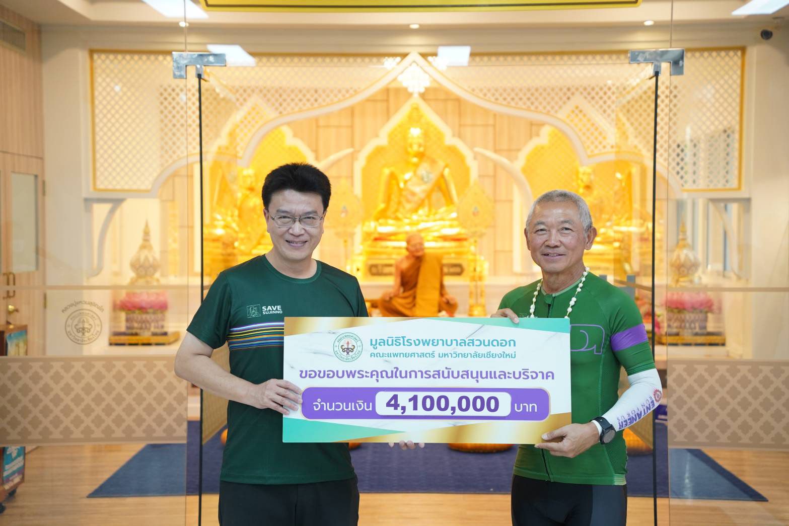โดยมีเงินสนับสนุน เพื่อจัดซื้อครุภัณฑ์ทางการแพทย์ อาคารสุจิณโณ โรงพยาบาลมหาราชนครเชียงใหม่ มอบเงินบริจาคโดยคุณสมยศ วงษ์ทองสาลี ประธานคณะกรรมการ ปั่นเพื่อน้อง กรุงเทพฯ-มช.ครั้งที่ 5 รวมทั้งสิ้นจำนวน 4,100,000 บาท เมื่อวันที่ 24 ธันวาคม 2565 ณ บริเวณชั้น 1 อาคารสุจิณโณ โรงพยาบาลมหาราชนครเชียงใหม่ คณะแพทยศาสตร์ มช.