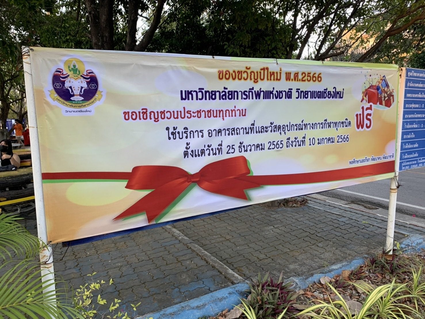 อธิการบดี มหาวิทยาลัยการกีฬา แห่งชาติ ไฟเขียวให้ มกช.เชียงใหม่ เปิดบริการประชาชนในจังหวัดเชียงใหม่ มาใช้ สระว่ายน้ำ ของ มกช.เชียงใหม่ ฟรี ระหว่างวันที่ 25 ธันวาคม 2565 ถึง 10 มกราคม 2566