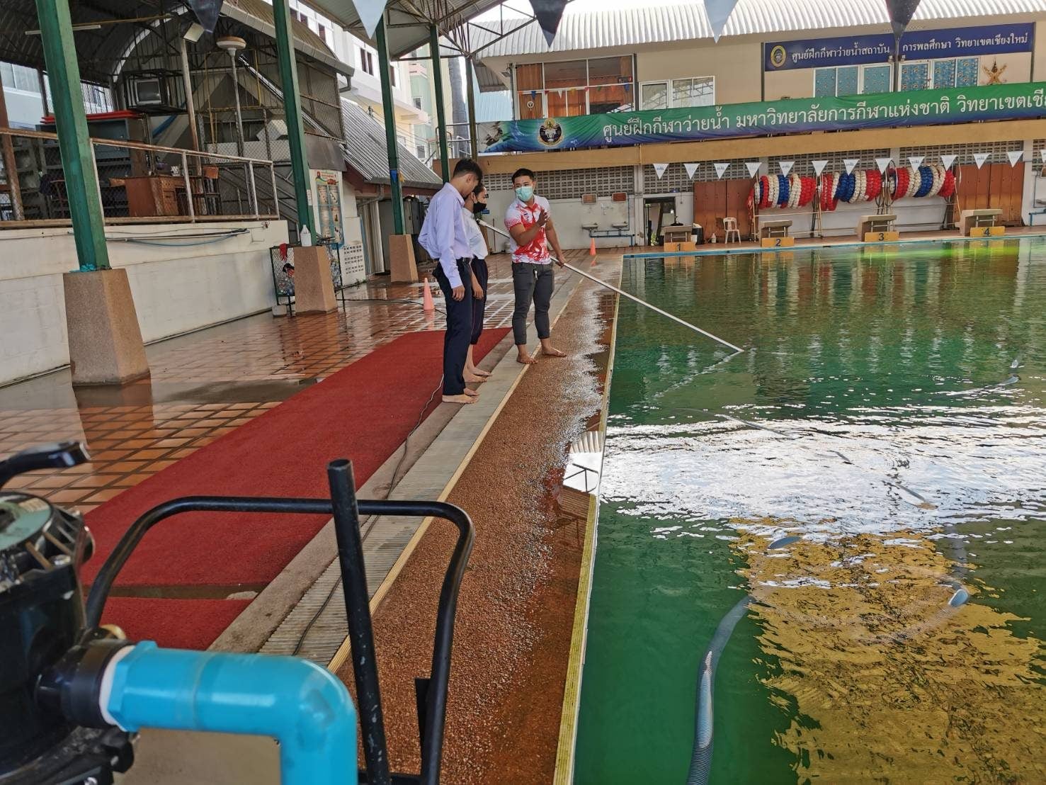 ภายในการดูแลของ ดร.จารุวัฒน์ สัตยานุรักษ์ รองอธิการบดีมหาวิทยาลัยการกีฬาแห่งชาติ วิทยาเขตเชียงใหม่วิทยาเขตแห่งรอยยิ้มและความสุข โดยมอบหมายให้ อาจารย์ที่ดูแลสระว่ายน้ำเตรียมความพร้อมอย่างเต็มที่ในการต้อนรับประชาชน ในเชียงใหม่ ที่จะมาใช้บริการสระว่ายน้ำ โดยมี บุคลากรที่เชี่ยวชาญคอยดูแลตลอดเวลา